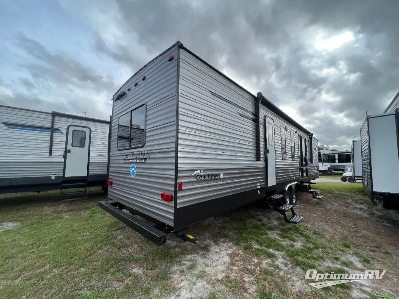 With any Catalina Destination trailer by Coachmen, you will enjoy comfortable extended stays wherever you decide to set up camp! The full length frame outriggers add strength to each unit, along with a seamless Alpha Roof membrane and Norco electromagnetic, powder coated chassis. You will love the open views provided by the large front bay windows, plus there are GE appliances, woodplank linoleum flooring, and hard valance window treatments to make your space feel more like home. The One Control Smart RV tech monitor panel uses the LCI OneControl app to let you control your units functions right from your smart device, and the RV-Link 4G Remote Connect, Wi-Fi, booster, and extender prep gives you the option to stay connected while you're away from home. Head outside to find a convenient "Leash Link" quick hookup D-ring for your furry friends, premium JBL exterior speakers, flush mount baggage doors for your gear, and the list of amenities goes on!