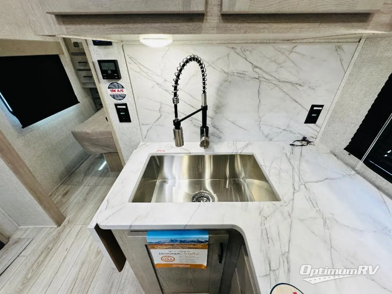 Each Alta travel trailer or toy hauler by EAST TO WEST is constructed with a 5" vacuum bonded roof, an enclosed and heated underbelly, and diamond plate front rock guard for added protection. Outside, you'll find marine-grade exterior speakers, a universal docking station, and back-up camera prep that can be added to make maneuvering in and out of campgrounds easier than ever. Inside, there are 4k interior LED lights, solid pressed membrane countertops, black roller shades, and many more interior comforts you are sure to love.