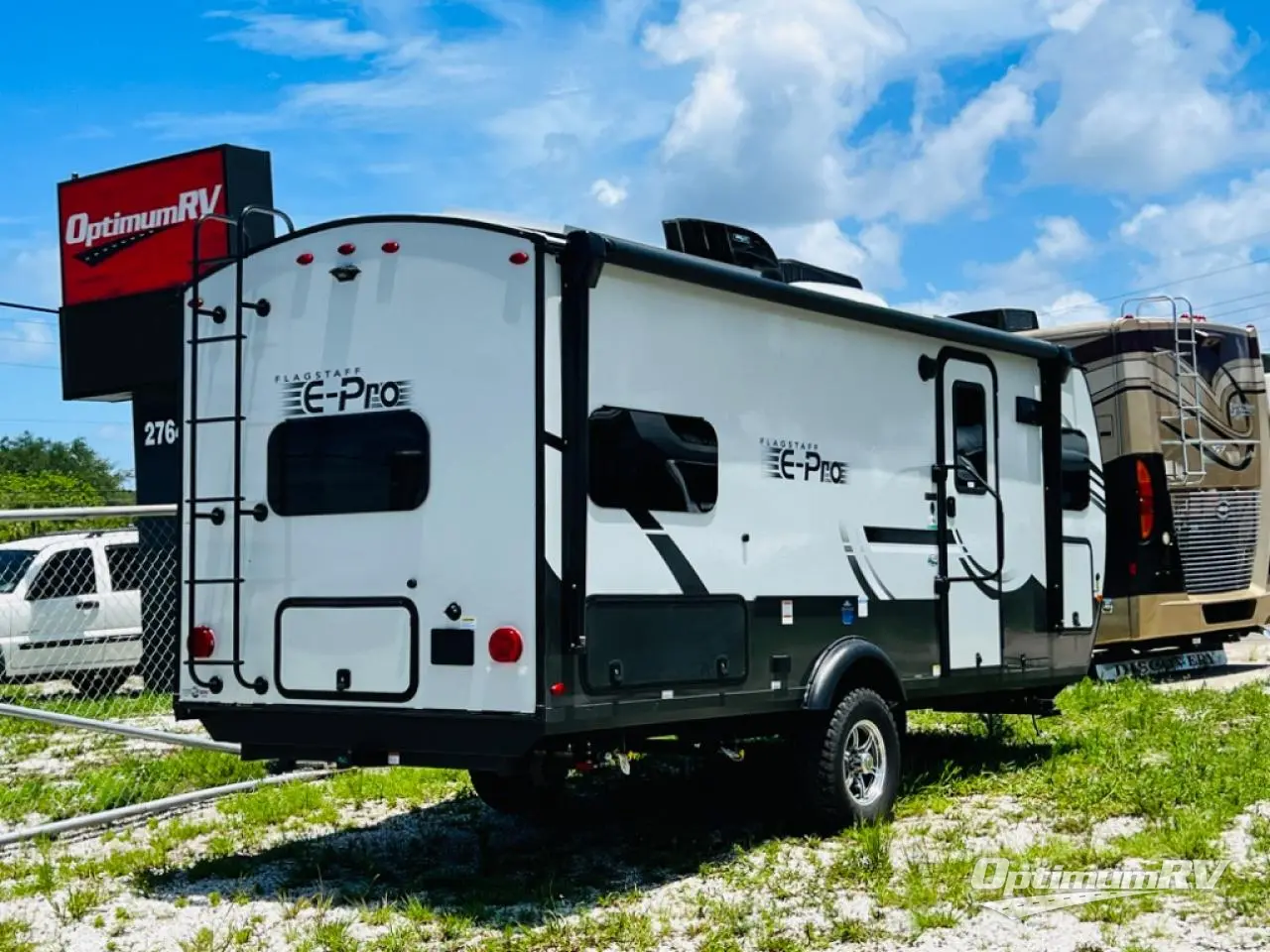 With any Flagstaff E-Pro travel trailer by Forest River, you will experience lightweight towing, style and features that will meet your needs, plus amenities that give you more than you expected! Built with interior and exterior composite sidewall construction, tongue and grove plywood flooring, and a vacuum laminated roof and walls, plus torsion axle, Rubber-Ryde suspension, and a tire pressure monitoring system for safety while traveling. And the 200 watt roof mount solar panel with 1,800-watt inverter will allow you to stay off-grid if you like. The interior offers a comfortable environment with the choice to use the air conditioner or furnace, and a 12V entertainment TV with stereo to stay up to date on your favorite movies. Make your selection today!