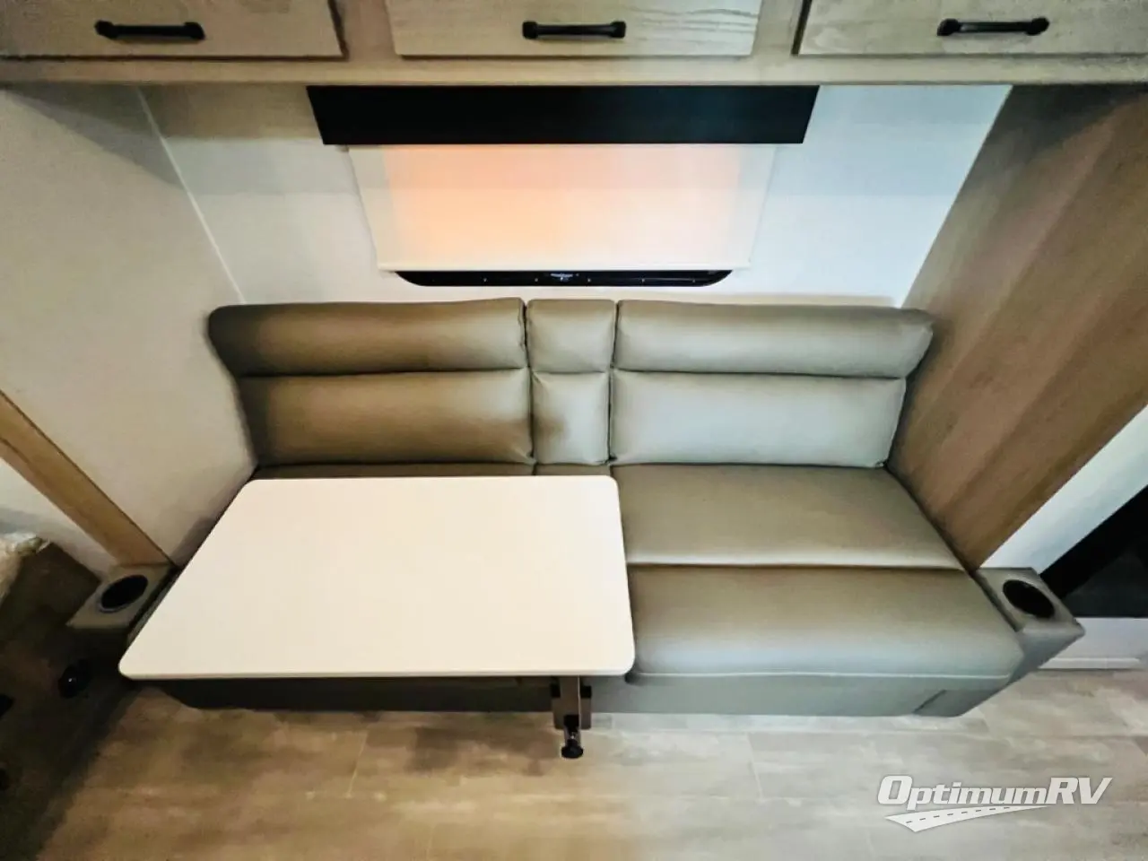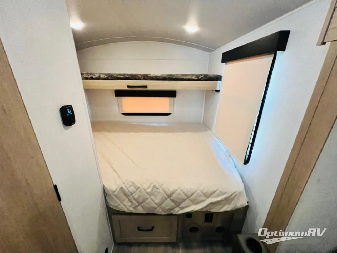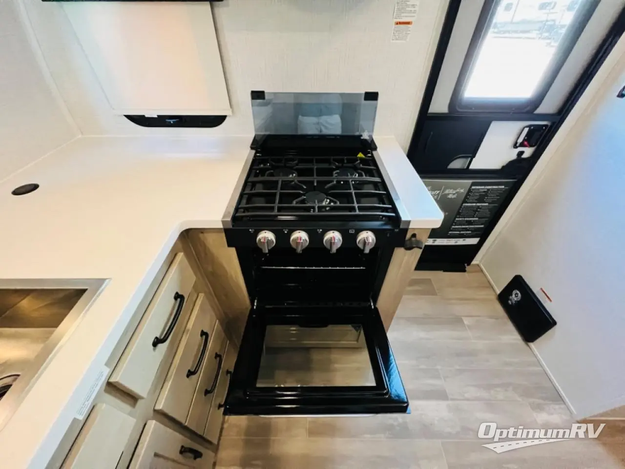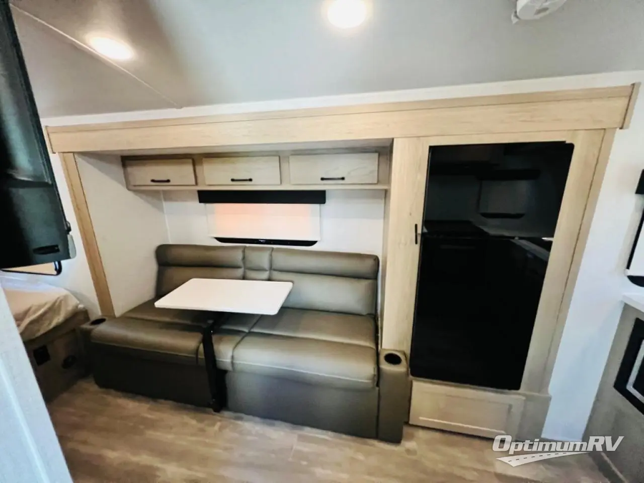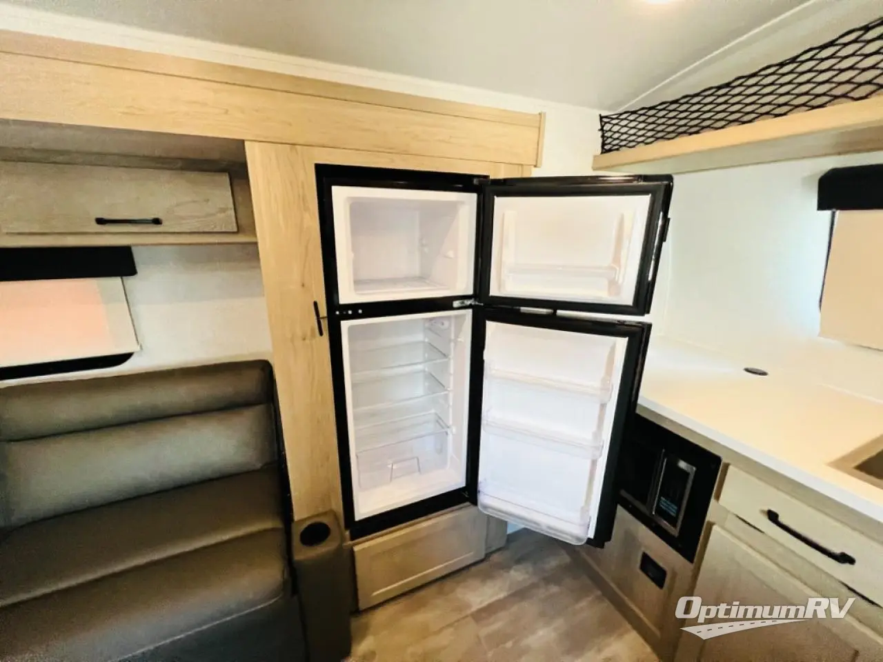 The chef will love cooking in the front kitchen of this travel trailer! It offers plenty of countertop space to meal prep and all of the essentials to cook delicious meals, plus there is even an outside kitchen with a refrigerator, a pull-out stove, and a griddle to fry what you caught that day. Enjoy all of your meals at the 72" sofa slide with a table or pull up a table and chairs under the 15' power awning. The queen bed offers a comfortable place for you to rest up each night and it even has a 26" x 80" flip-up bunk above it for a guest or two to tag along. Store all of your camping essentials in the exterior storage and rinse your feet off with the outside spray port after a fun day at the beach!