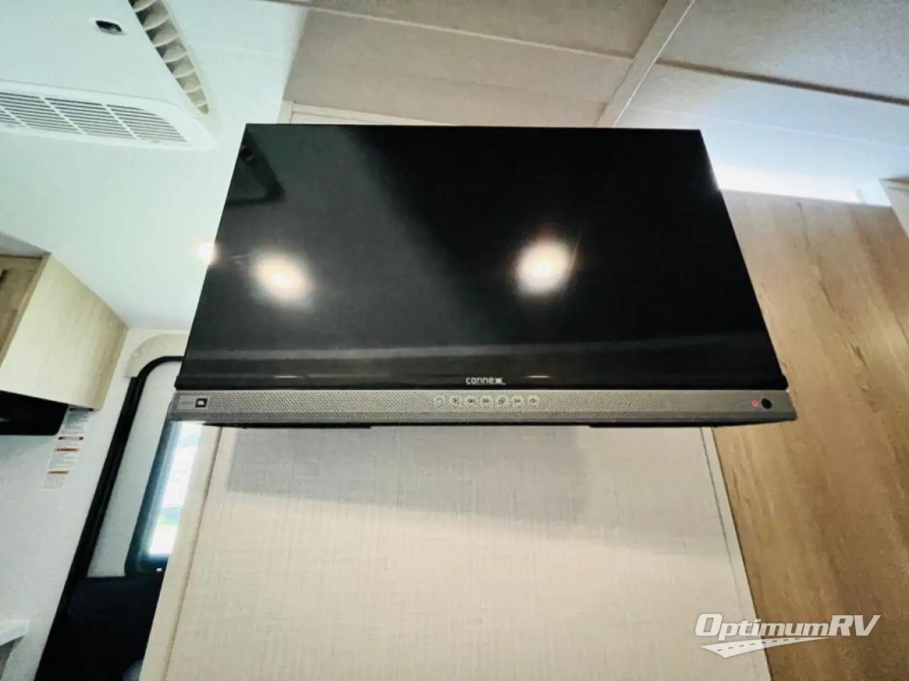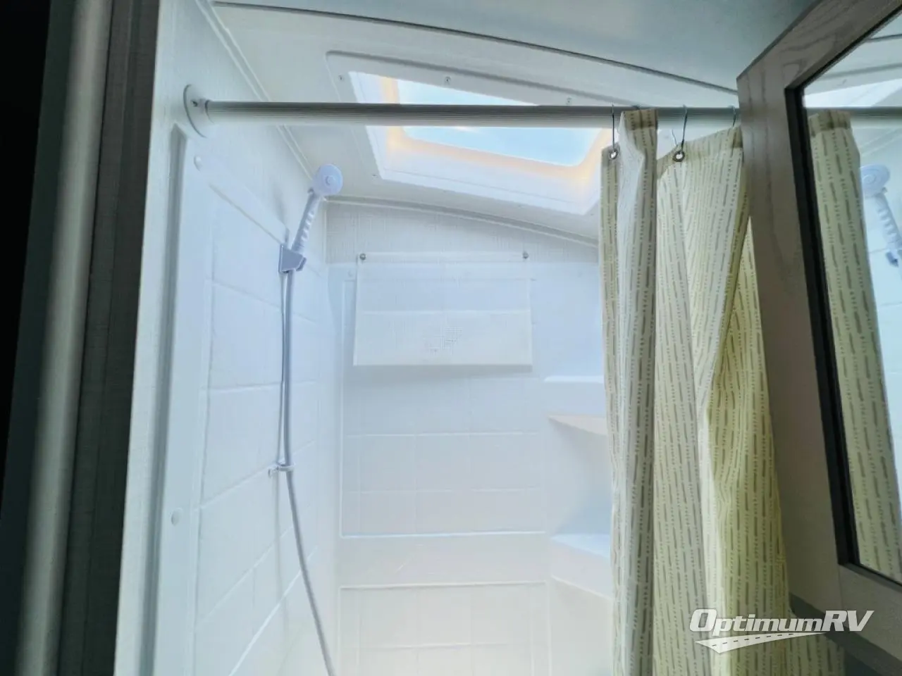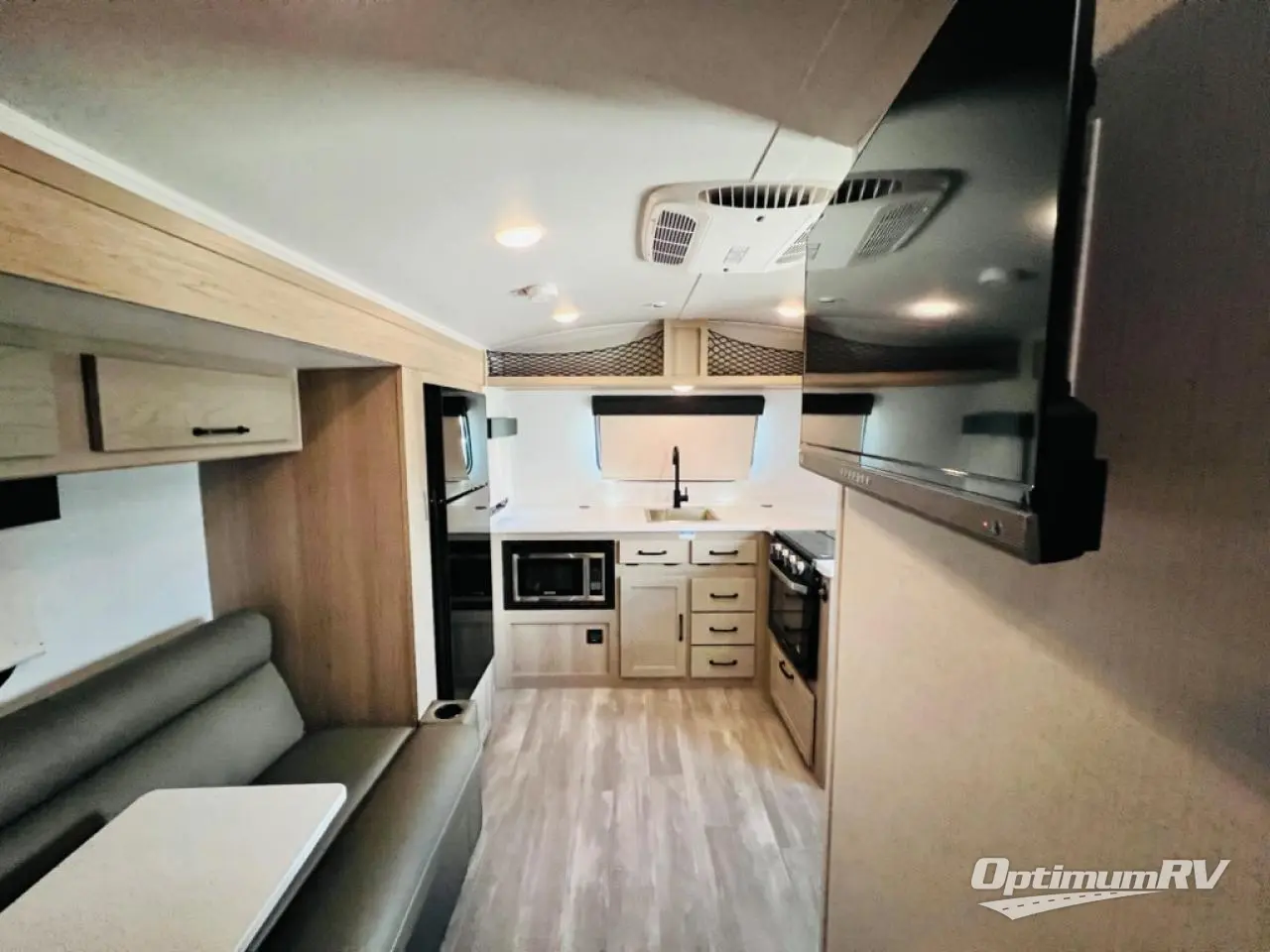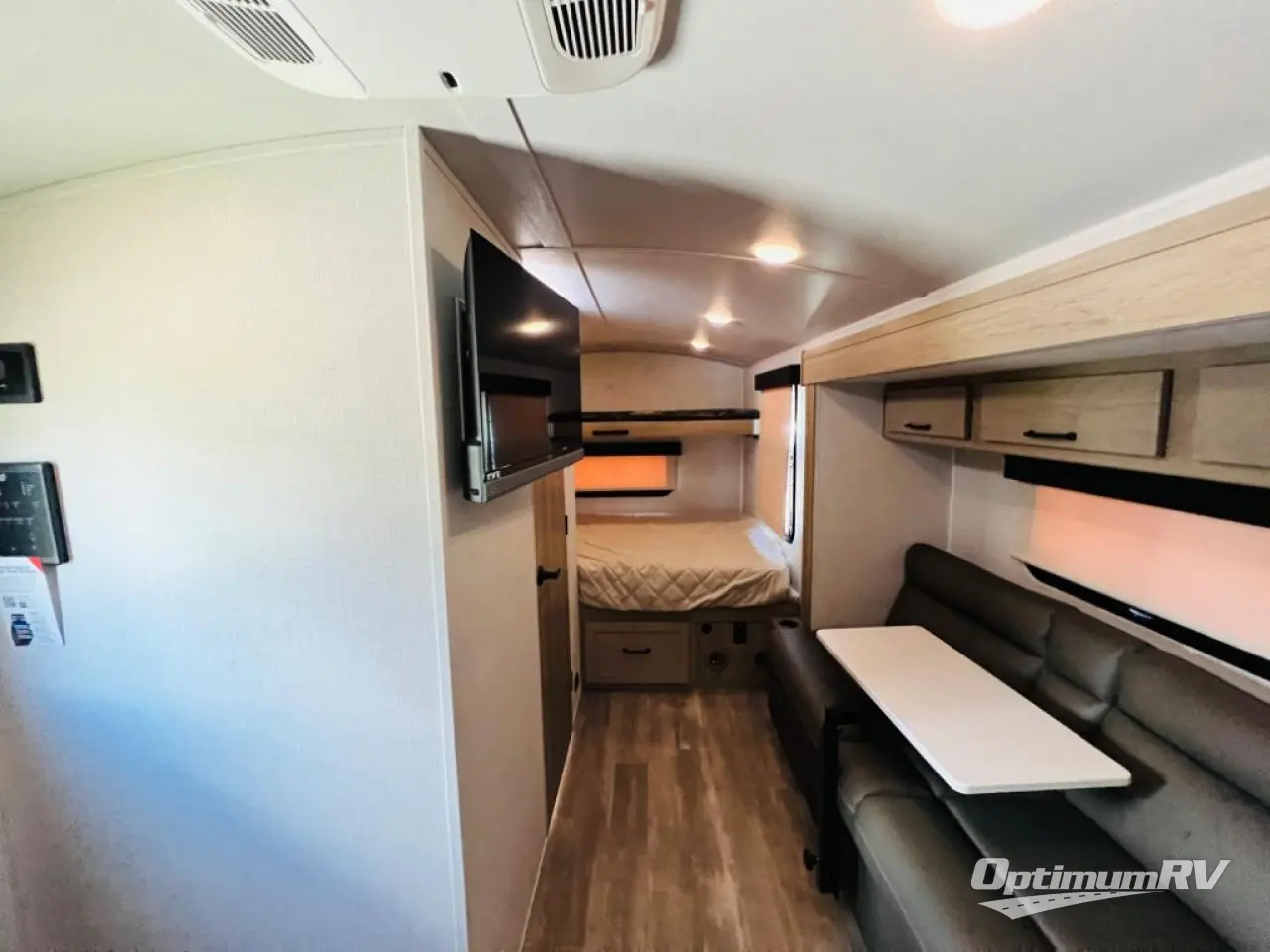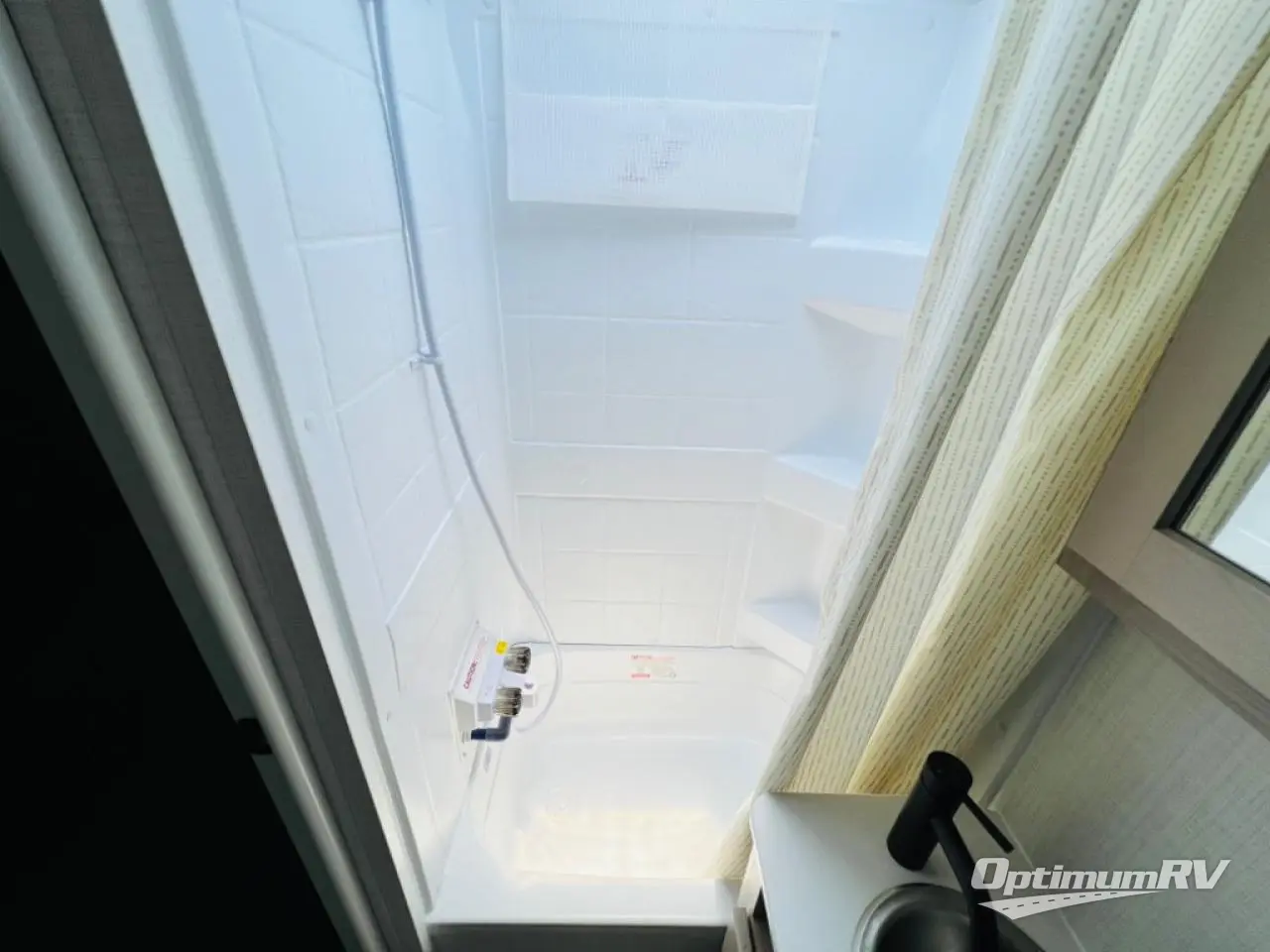 The chef will love cooking in the front kitchen of this travel trailer! It offers plenty of countertop space to meal prep and all of the essentials to cook delicious meals, plus there is even an outside kitchen with a refrigerator, a pull-out stove, and a griddle to fry what you caught that day. Enjoy all of your meals at the 72" sofa slide with a table or pull up a table and chairs under the 15' power awning. The queen bed offers a comfortable place for you to rest up each night and it even has a 26" x 80" flip-up bunk above it for a guest or two to tag along. Store all of your camping essentials in the exterior storage and rinse your feet off with the outside spray port after a fun day at the beach!