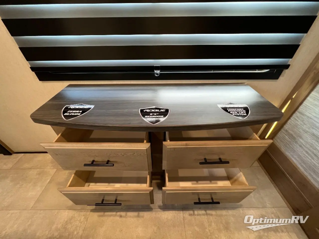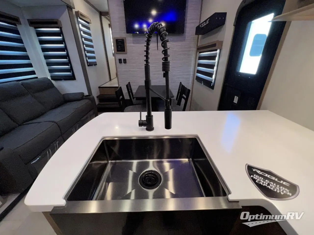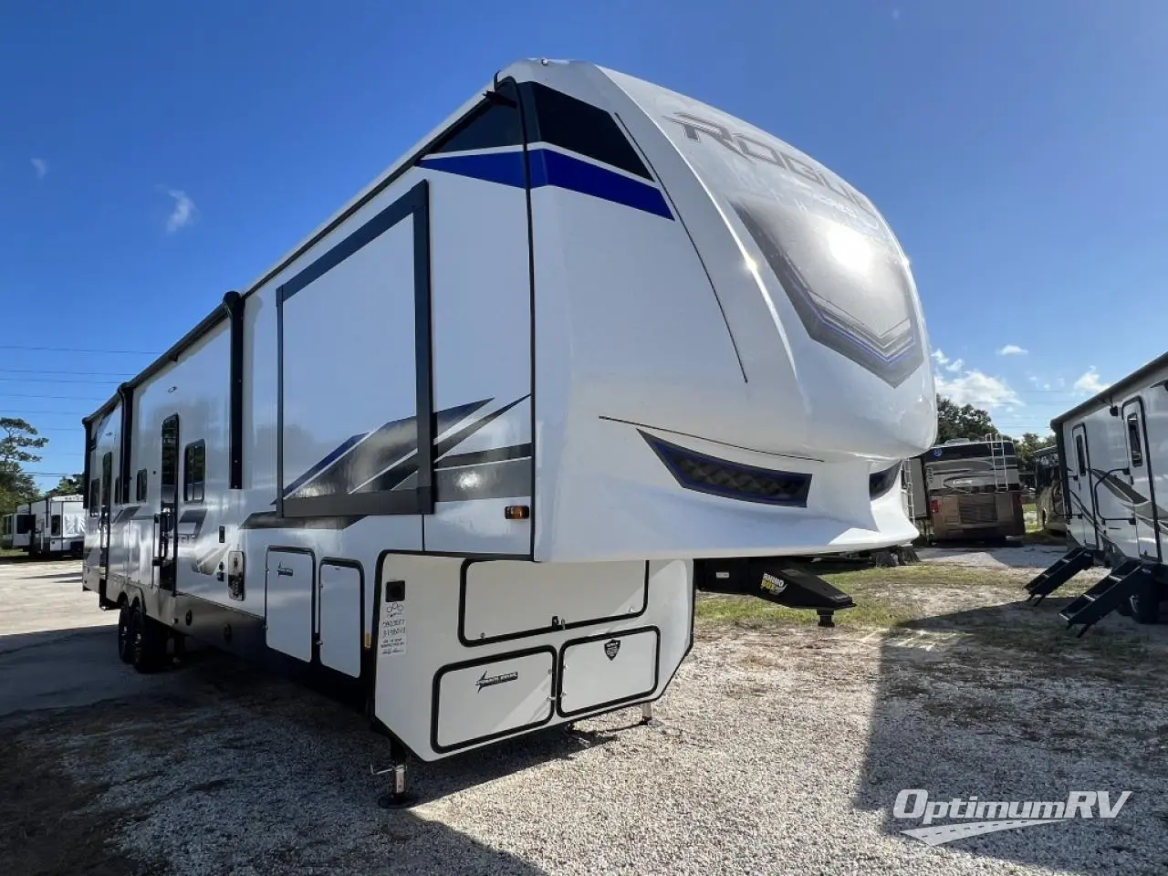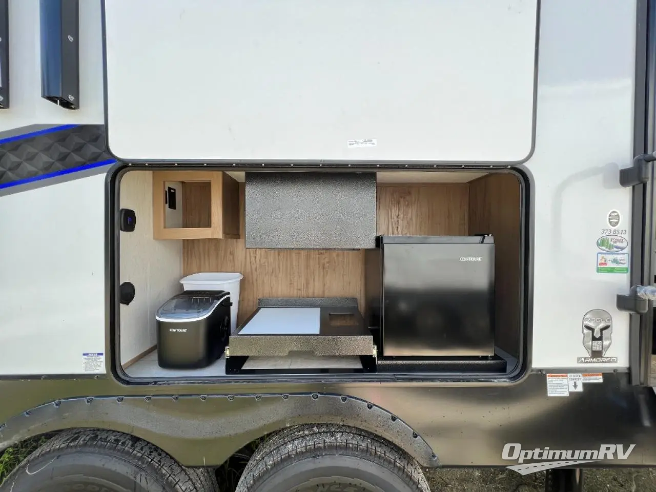 Every one of these Forest River Vengeance Rogue Armored fifth wheel toy haulers come with the features you want most at an affordable price tag! The DuraPoxy gas/oil resistant floor has 5,000 lb. tie downs to ensure your toys will arrive safely without damaging the flooring, plus the 3,000 lb. rated ramp door makes it easy to load them. Two 15,000 BTU A/Cs are "Super H Ducted" to keep you cool even on the hottest summer days, and an enclosed and heated underbelly keeps your unit's vitals protected all year long. The Rogue Armored package comes with a six point leveling system, a comfort plus adjustable powered king bed system, and a ramp door patio rail system. There are also two additional packages packed with features to make camping hassle-free!