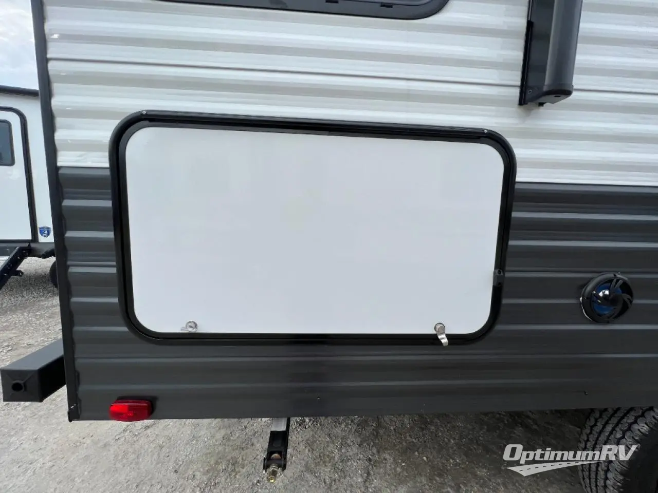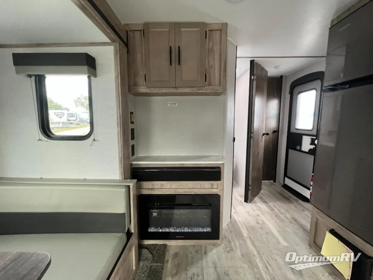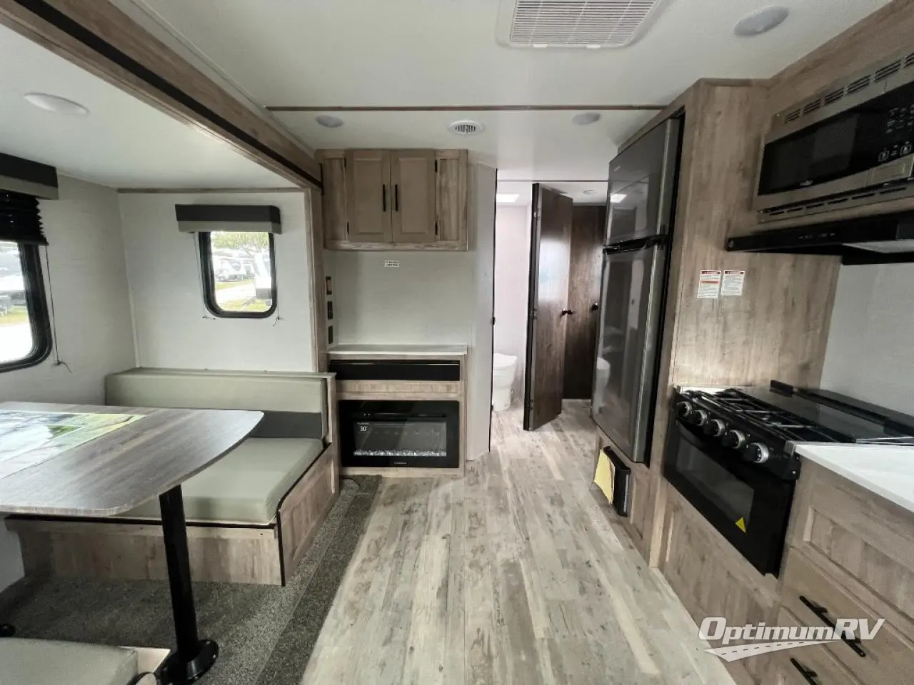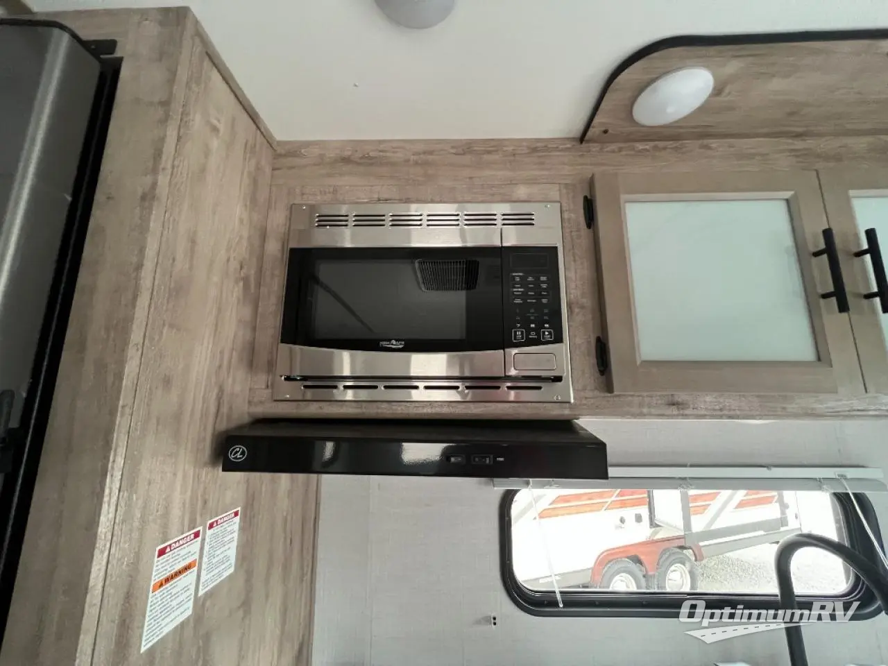 Camping with friends has never been so easy than in this cozy travel trailer. Once you arrive at your destination, prepare lunch on the three burner cooktop and you can dine at the booth dinette. Your guest can make this area their bed at night, along with the jack knife sofa. There is a front master bedroom with a queen bed that will feel just like home, and the two wardrobes provide a place for all your clothes. Head outside to find a pass-through storage, additional outside storage, plus an electric awning with LED lights!