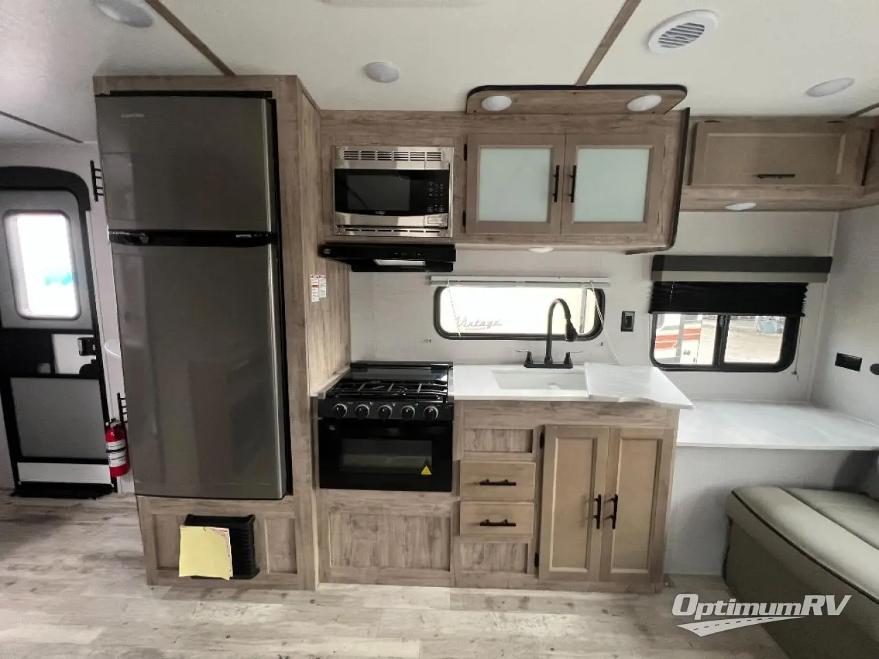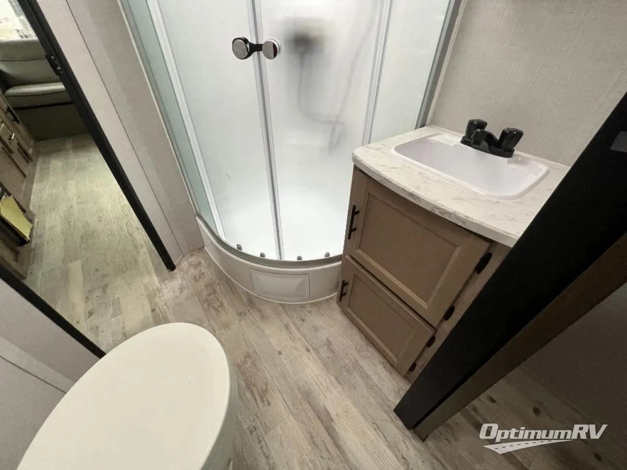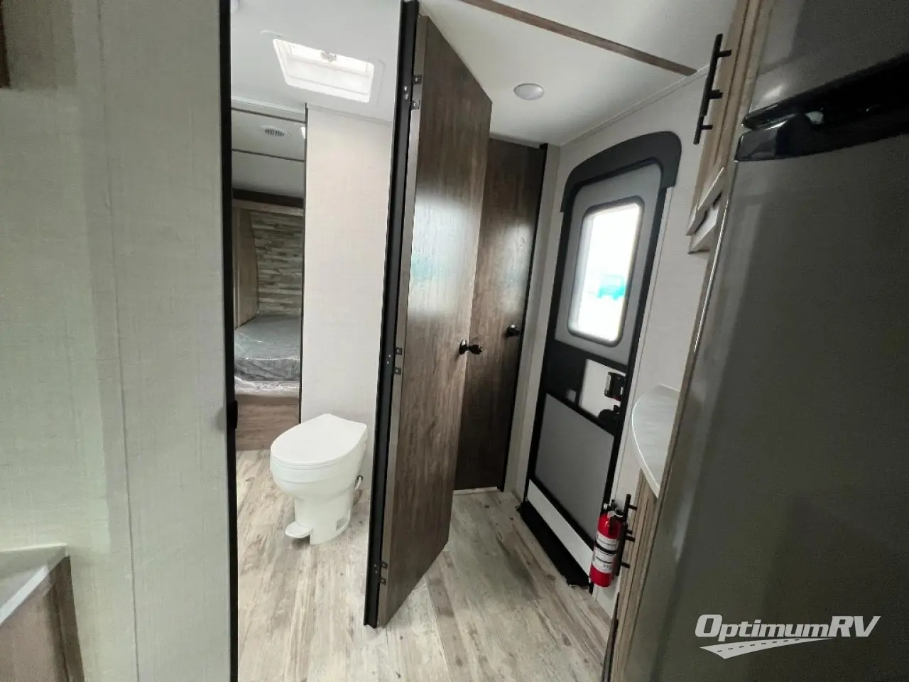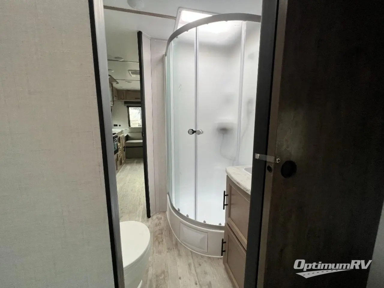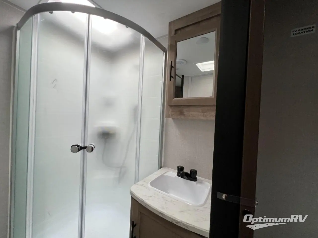 Camping with friends has never been so easy than in this cozy travel trailer. Once you arrive at your destination, prepare lunch on the three burner cooktop and you can dine at the booth dinette. Your guest can make this area their bed at night, along with the jack knife sofa. There is a front master bedroom with a queen bed that will feel just like home, and the two wardrobes provide a place for all your clothes. Head outside to find a pass-through storage, additional outside storage, plus an electric awning with LED lights!