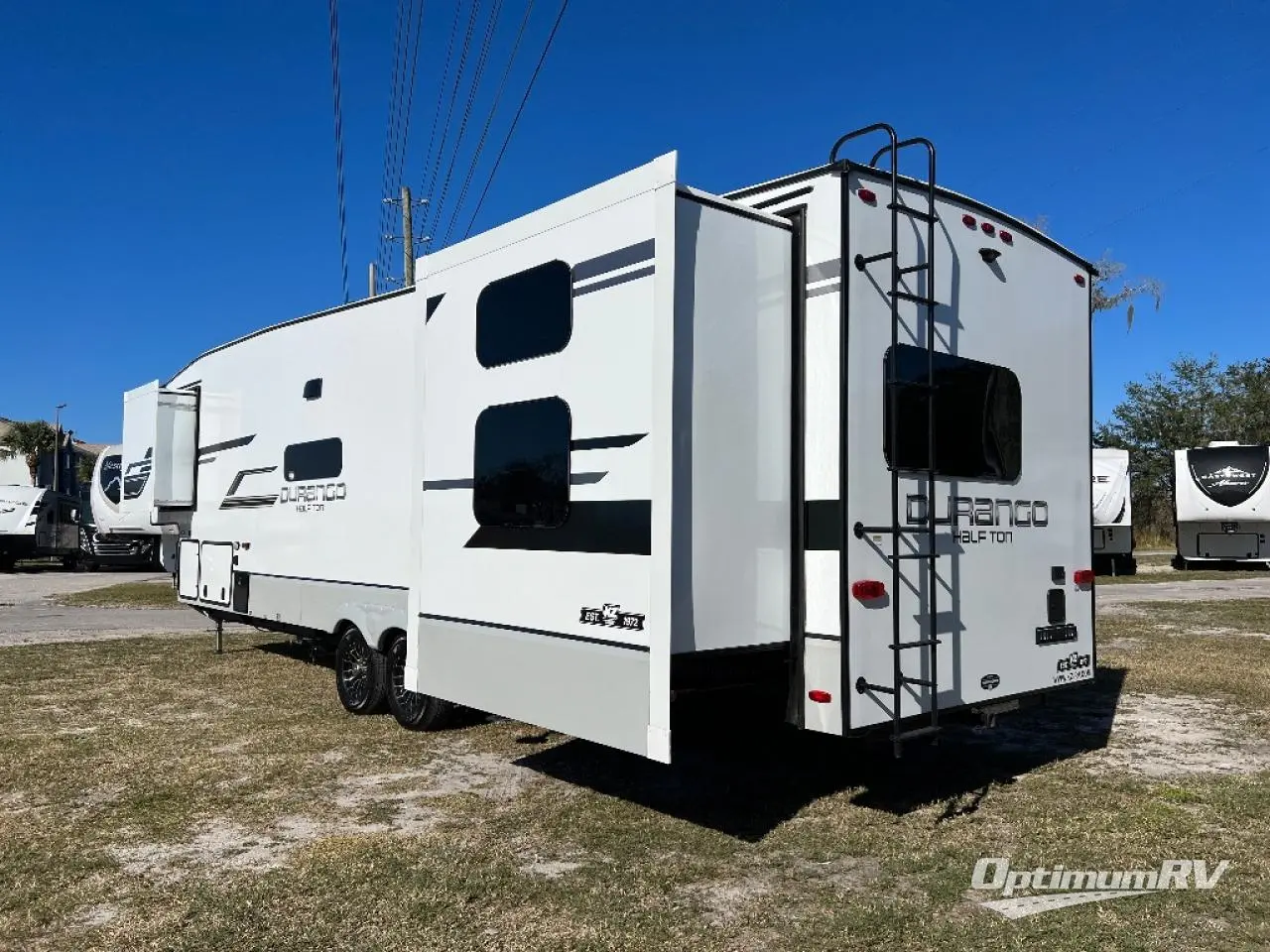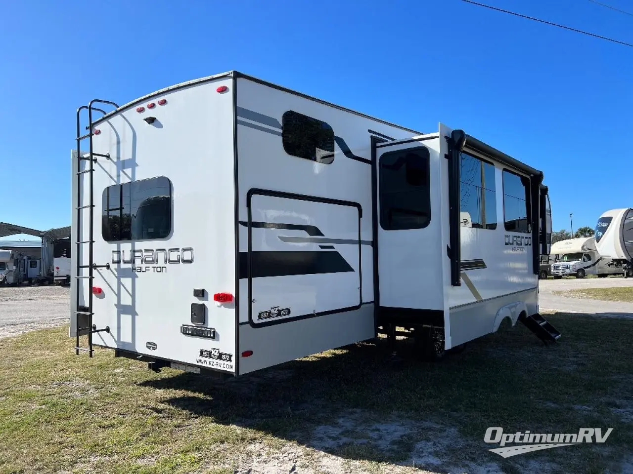 Each Durango Half-Ton fifth wheel by KZ provides lightweight towing with interior luxuries galore! Controlling the functions of your unit will be a breeze with the KZ Engage powered by OneControl that includes a 7" touchscreen to control awnings, lights, tanks, and more. There are so many exterior conveniences to make each trip enjoyable, like the Durango Towing Package, metal latches on the baggage doors, heated water convenience center, and the flip-up main entry steps! Durable construction includes Tufflex PVC roofing, laminated Azdel composite panels, and a reinforced heavy-duty fiberglass front cap. The interior will feel more like a residential home with new Blancher Cherry cabinets, seamless countertops, a spacious shower, a redesigned front bedroom, and smart storage spaces! You can also customize your fifth wheel to fit your needs with available options, such as, generator prep, backup camera prep, a full-timers desk in place of the dinette table, and so much more!