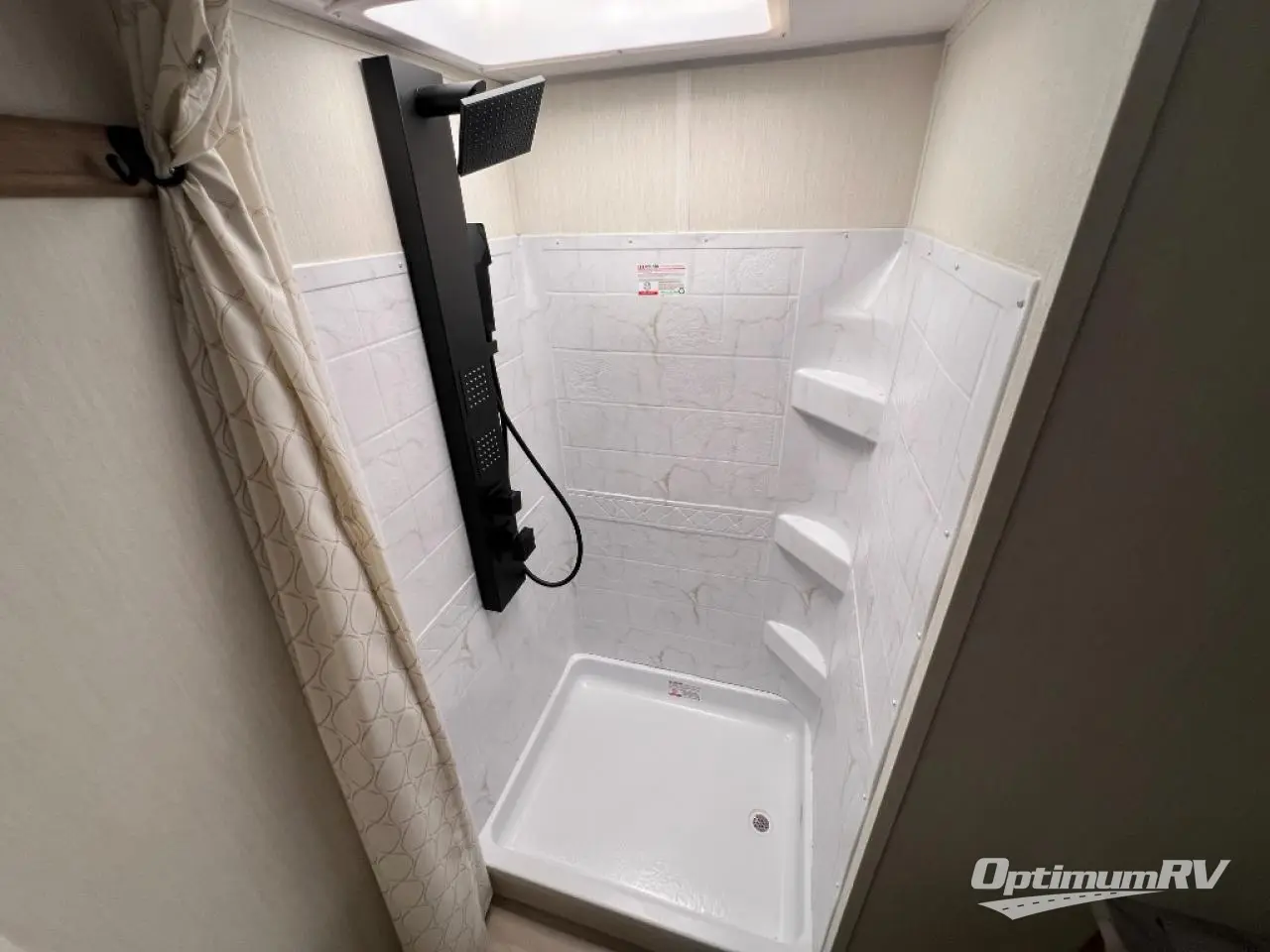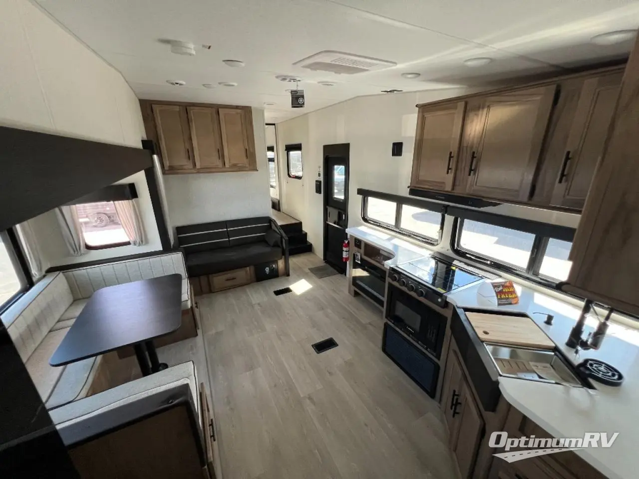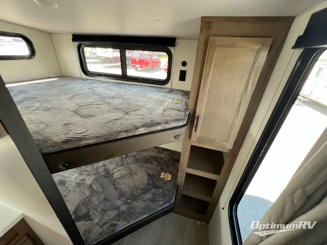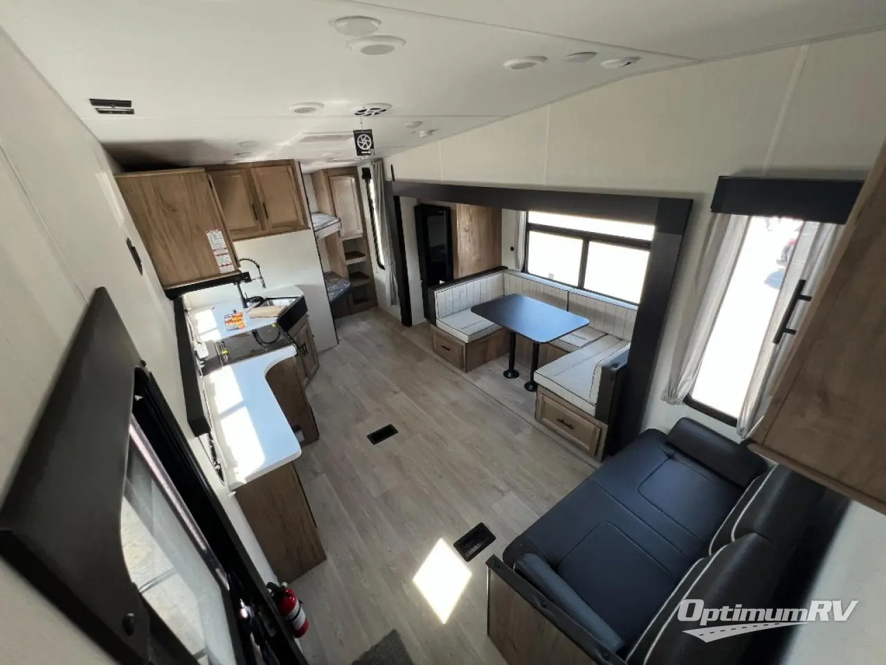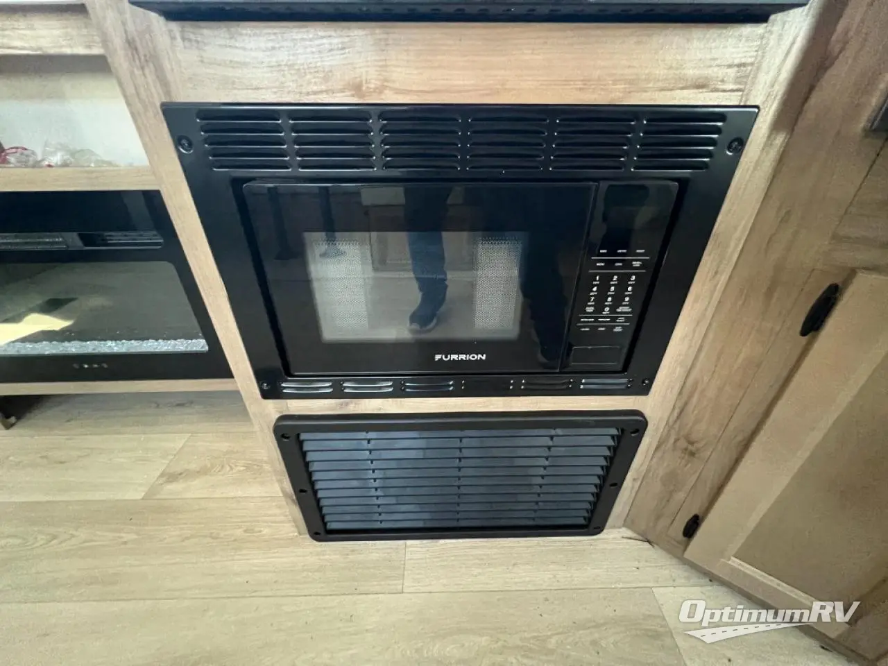 Perfect for your larger family, or one that likes to travel with friends, this Cherokee Black Label features double bed bunks, a queen bed in the front private bedroom, and a u-shaped dinette that can easily be converted to sleeping if needed. There is also a sofa in the combined living and kitchen area to accommodate all. When inside, the dinette is a great place to gather for meals or games, and between the dinette and sofa all can easily view the entertainment center with fireplace. The kitchen features everything you need to create meals as you vacation, and you also have a mini kitchen outside under the 15' awning where there is also a TV mount. The bathroom features a shower with a seat, a medicine cabinet above the vanity, and a toilet. In the front bedroom, you will enjoy a peaceful sleep each night on a queen bed with storage cabinets and a shelf overhead, plus nightstands on both sides of the bed as well. If you enjoy reading, there are also upgraded reading lights overhead on each side. Opposite the foot of the bed, a linen cabinet is available for storage or you can choose to add the optional washer/dryer in its place.