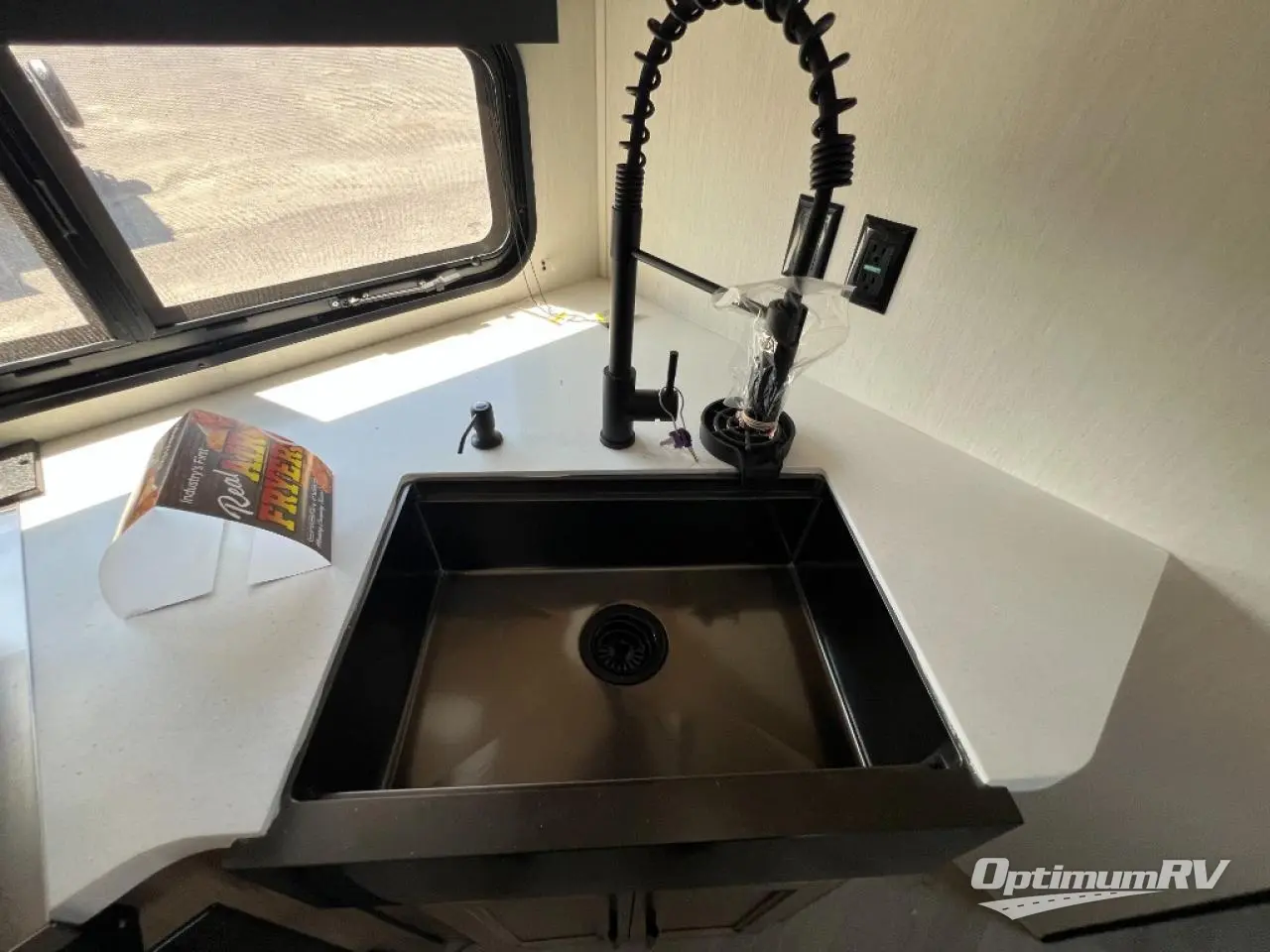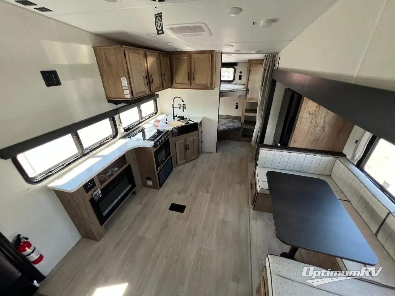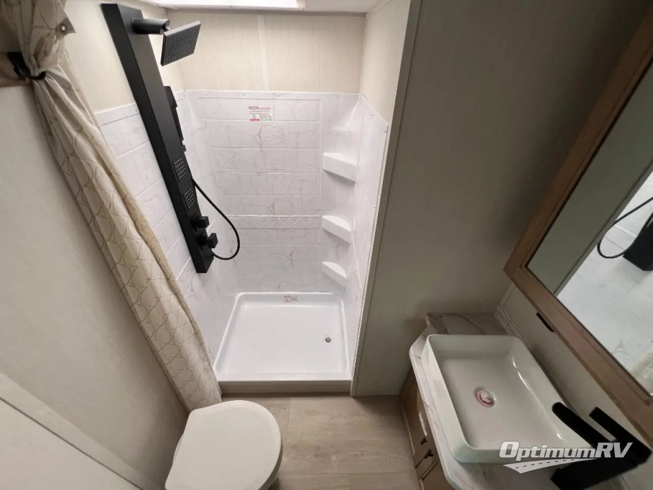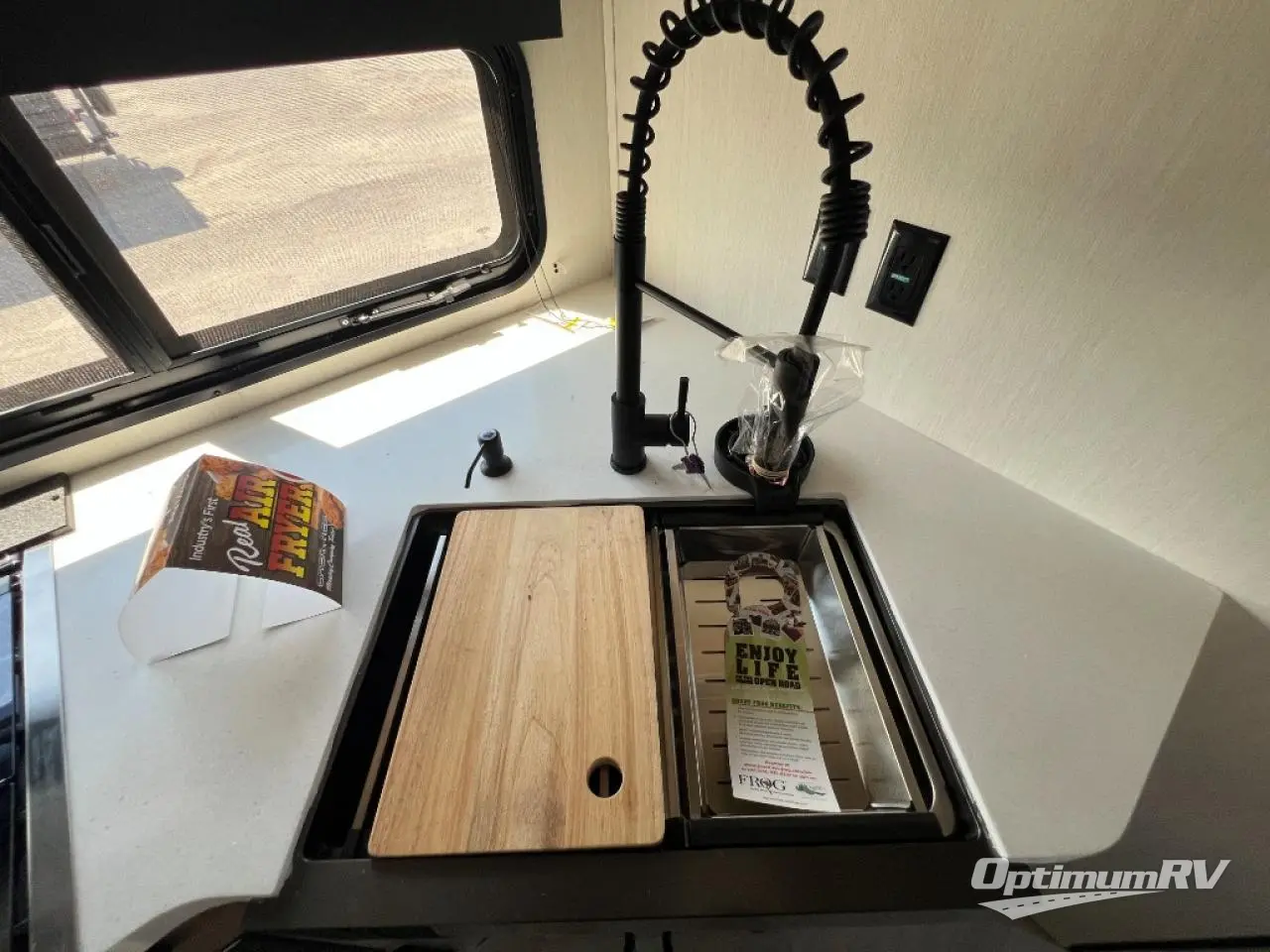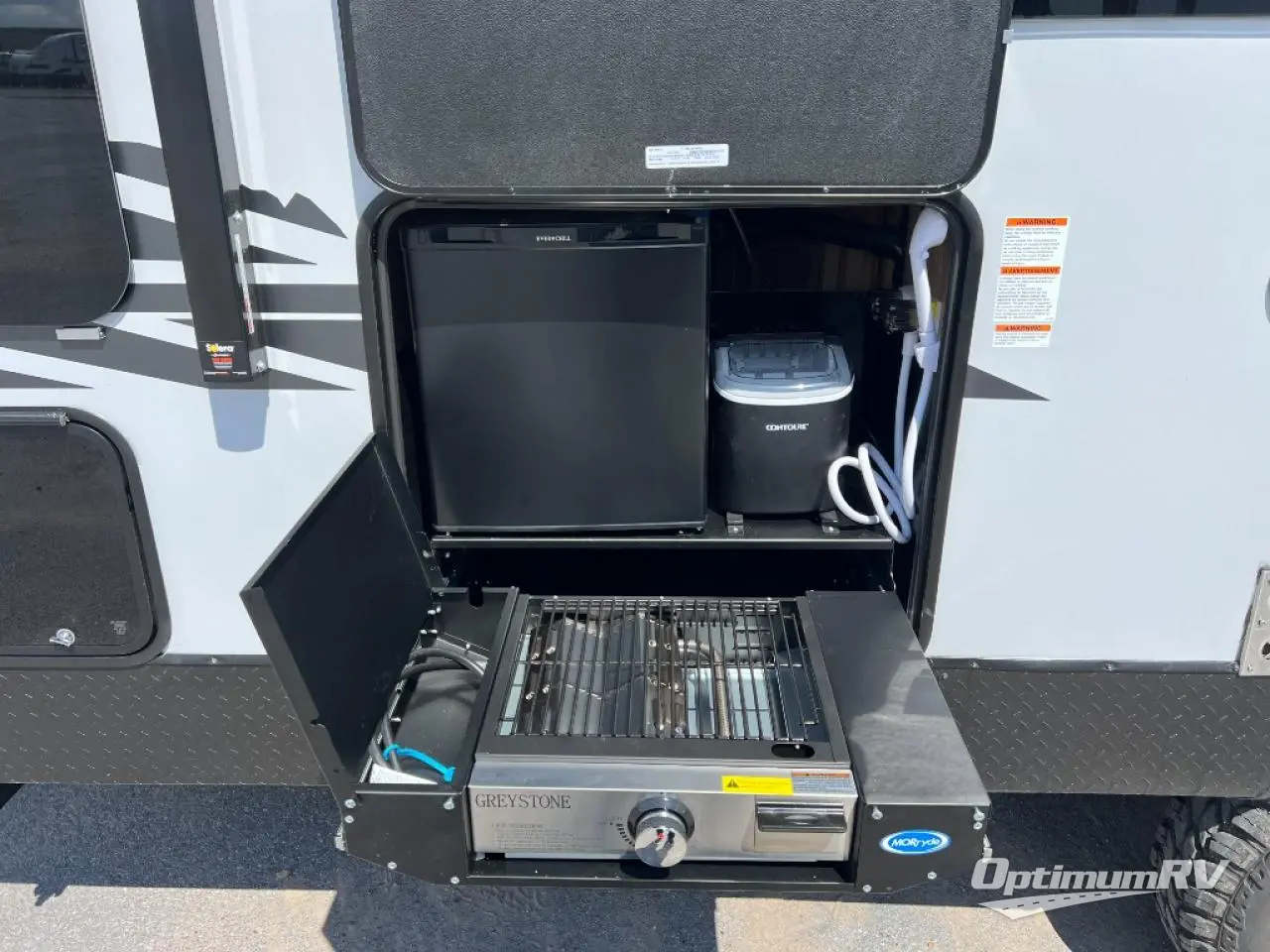 Perfect for your larger family, or one that likes to travel with friends, this Cherokee Black Label features double bed bunks, a queen bed in the front private bedroom, and a u-shaped dinette that can easily be converted to sleeping if needed. There is also a sofa in the combined living and kitchen area to accommodate all. When inside, the dinette is a great place to gather for meals or games, and between the dinette and sofa all can easily view the entertainment center with fireplace. The kitchen features everything you need to create meals as you vacation, and you also have a mini kitchen outside under the 15' awning where there is also a TV mount. The bathroom features a shower with a seat, a medicine cabinet above the vanity, and a toilet. In the front bedroom, you will enjoy a peaceful sleep each night on a queen bed with storage cabinets and a shelf overhead, plus nightstands on both sides of the bed as well. If you enjoy reading, there are also upgraded reading lights overhead on each side. Opposite the foot of the bed, a linen cabinet is available for storage or you can choose to add the optional washer/dryer in its place.