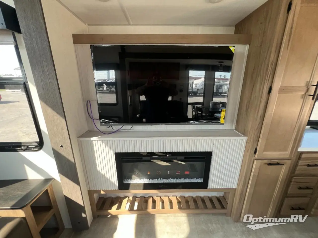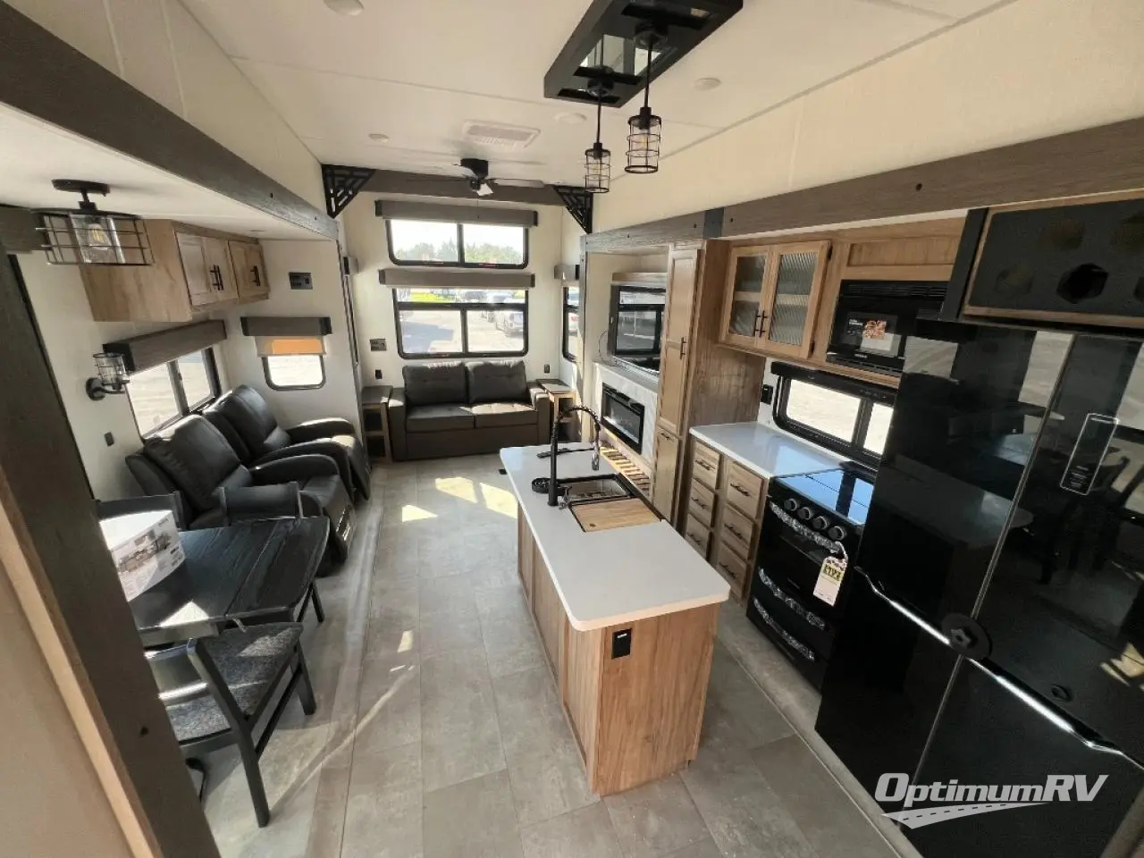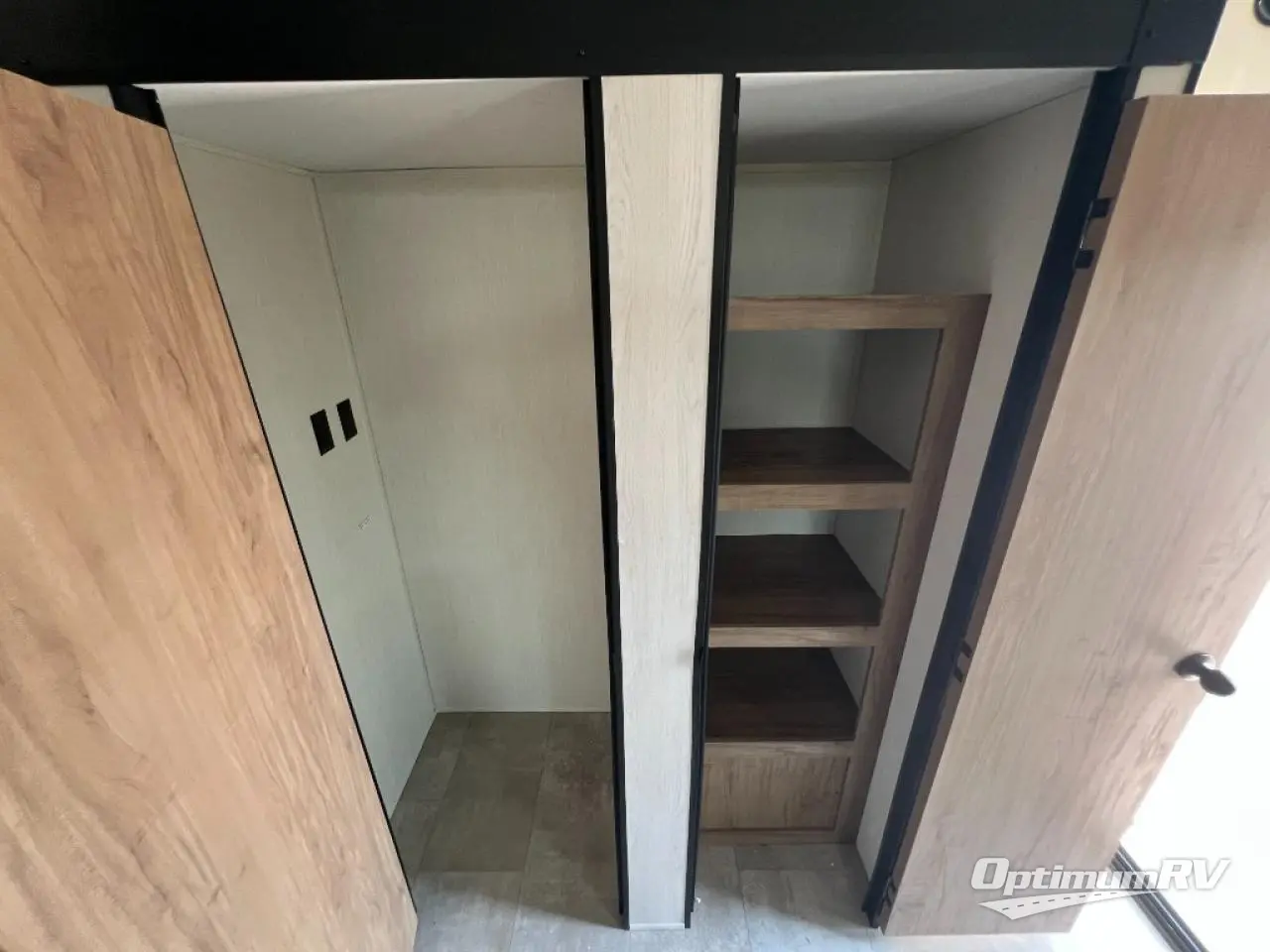 This Black Label destination trailer is an excellent and accommodating trailer that will make you feel right at home as soon as you enter through one of the two entry doors. The front private bedroom has a queen bed slide and lots of storage with the two wardrobes and linen closet. There is also an entertainment center where you can add your own TV thanks to the TV mount, and the bedroom even has the second exterior entry door so that you can come and go as you please. Above the bedroom is where the huge loft is located. When you take the stairs up to the loft, you'll find two 36" x 74" bunk mats, a nightstand, storage cabinets, and a large open area with a railing. The main living area has a free-standing dinette with chairs, two lounge chairs, a sofa, plus a fireplace to make this space feel more like home!