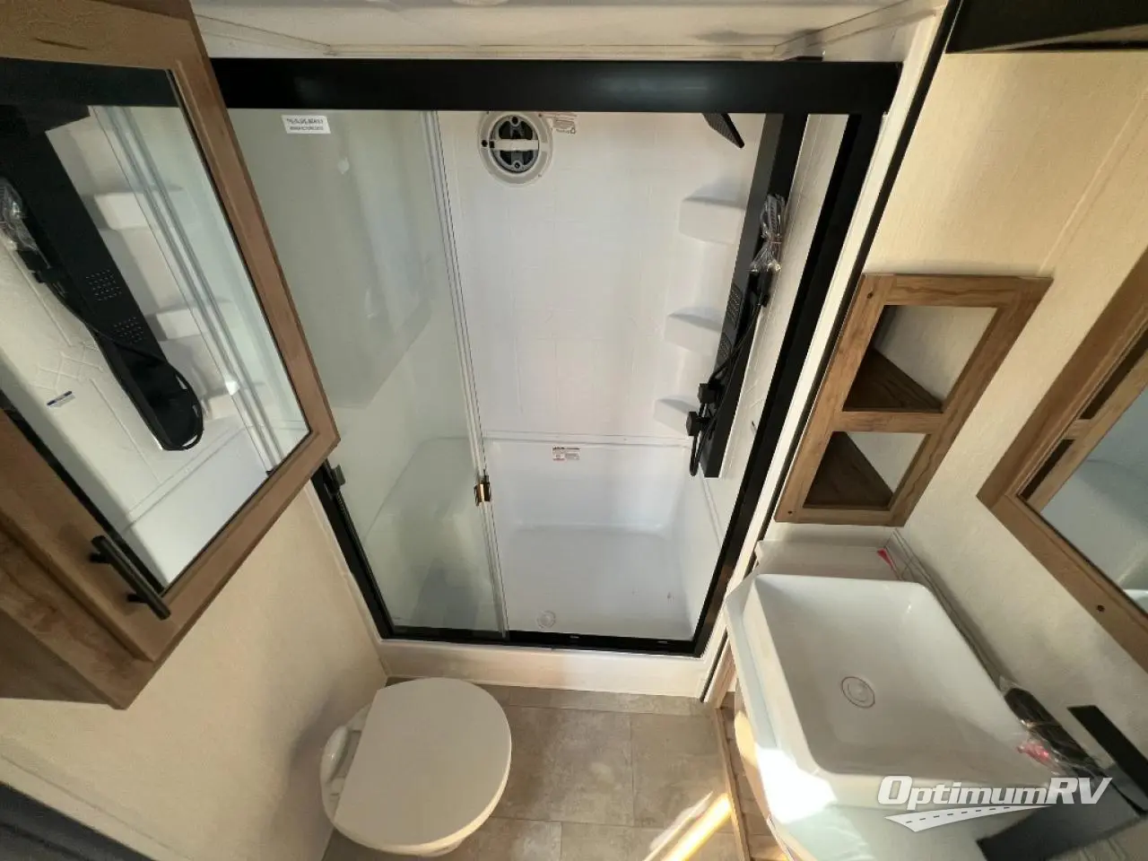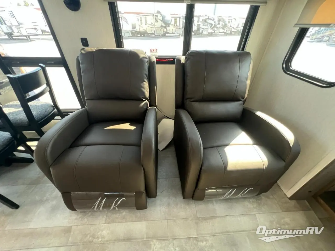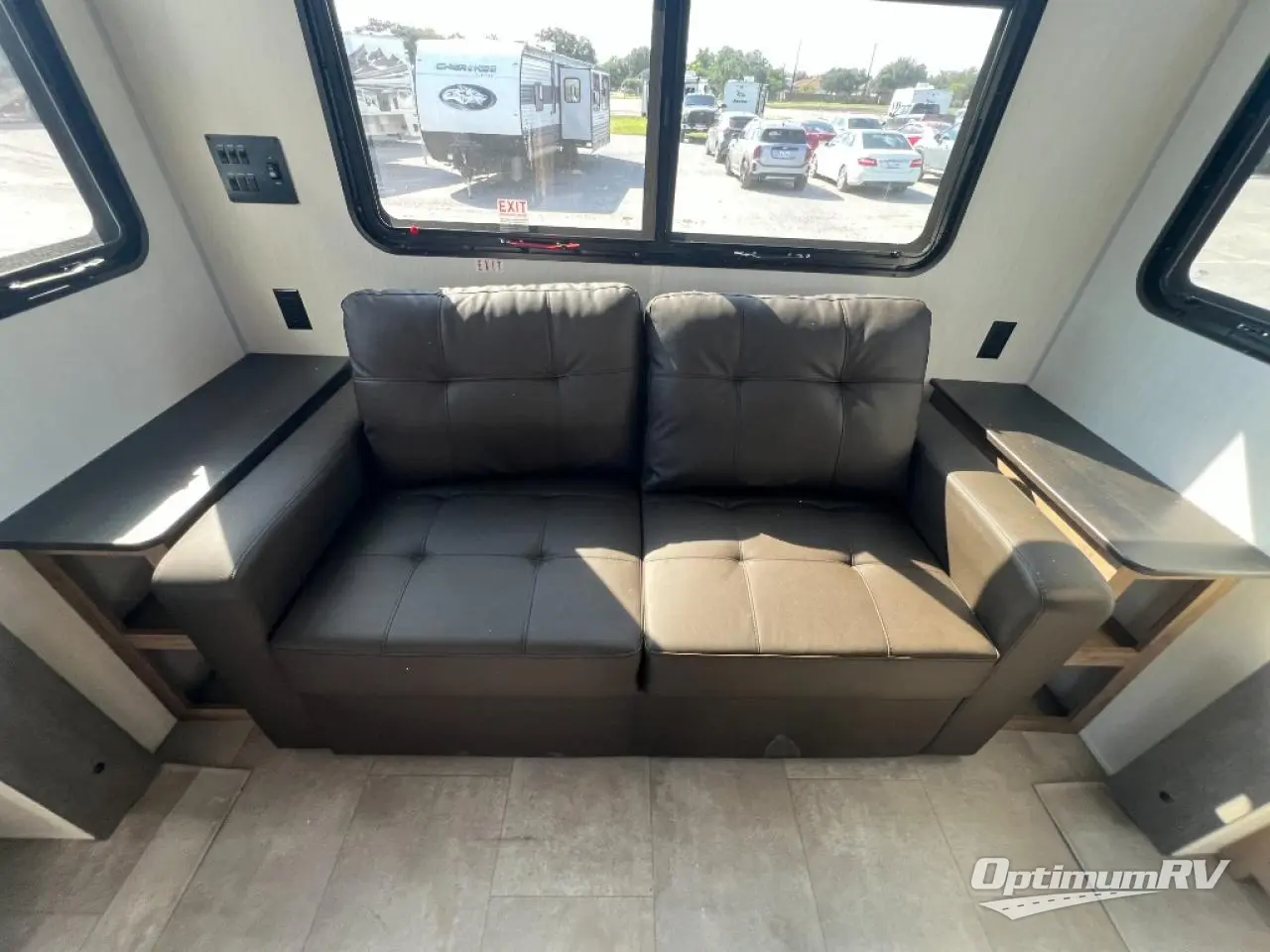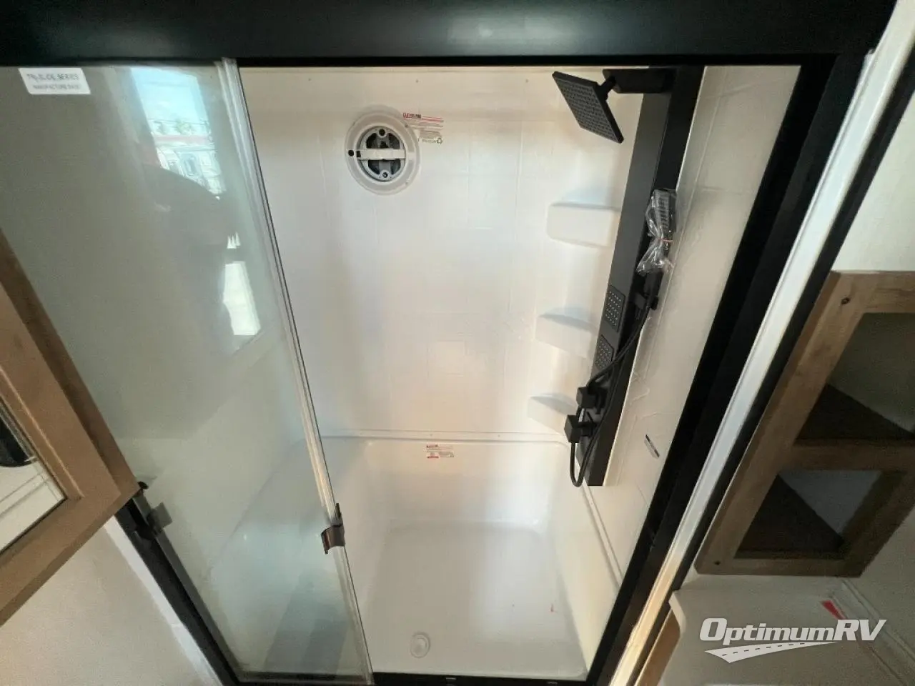 This Black Label destination trailer is an excellent and accommodating trailer that will make you feel right at home as soon as you enter through one of the two entry doors. The front private bedroom has a queen bed slide and lots of storage with the two wardrobes and linen closet. There is also an entertainment center where you can add your own TV thanks to the TV mount, and the bedroom even has the second exterior entry door so that you can come and go as you please. Above the bedroom is where the huge loft is located. When you take the stairs up to the loft, you'll find two 36" x 74" bunk mats, a nightstand, storage cabinets, and a large open area with a railing. The main living area has a free-standing dinette with chairs, two lounge chairs, a sofa, plus a fireplace to make this space feel more like home!