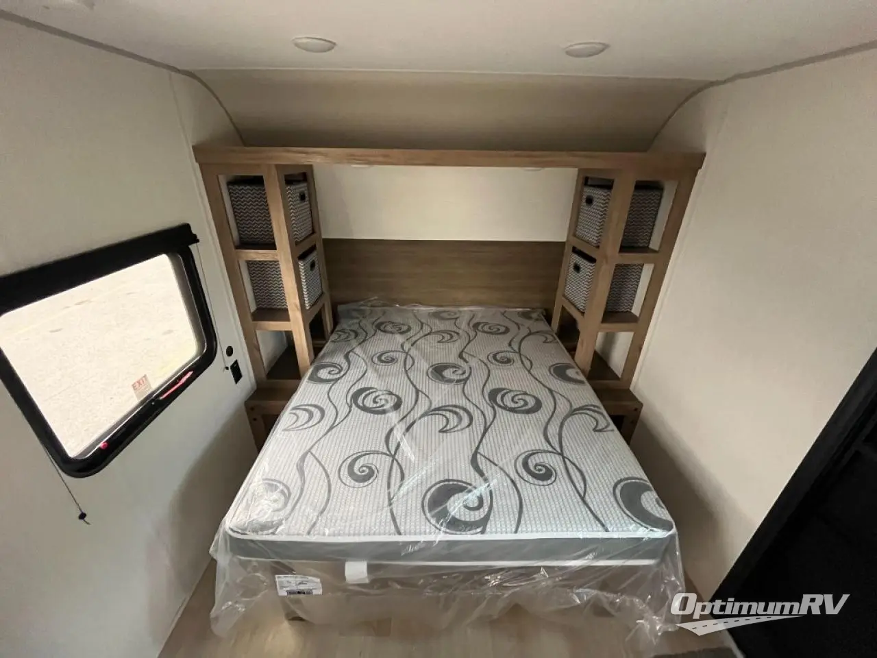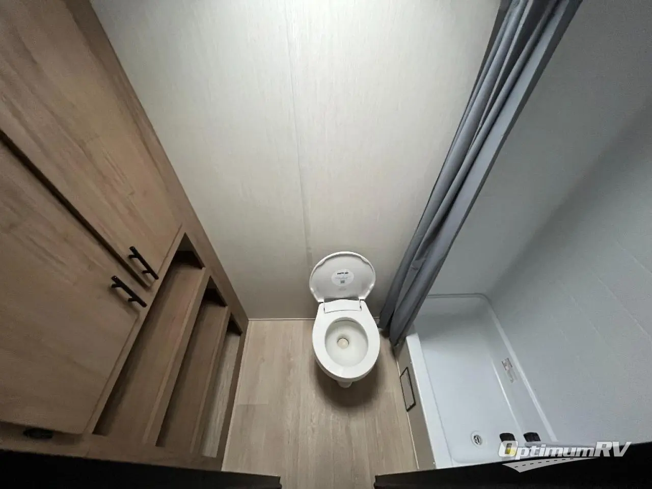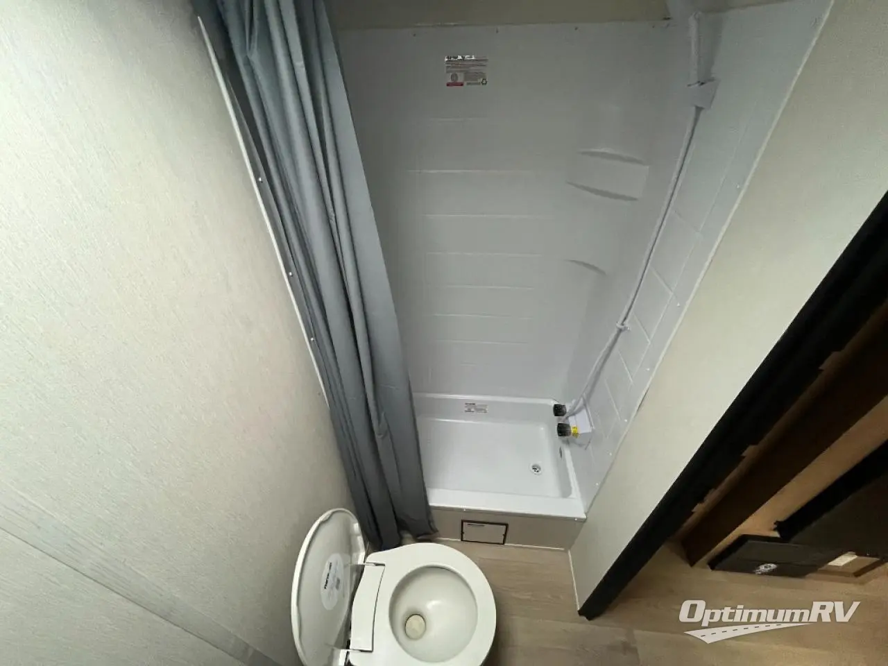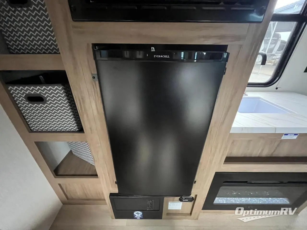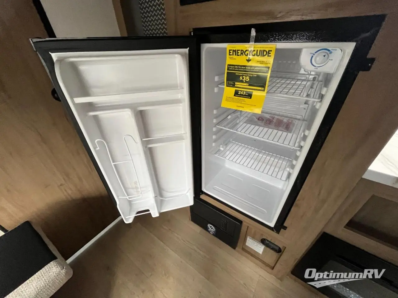 You will love weekends at the lake in this all-electric travel trailer that can sleep three each night! The front queen bed includes dual storage drawers on either side of the bed to keep your clothes tidy, and there is a shelf above the bed to keep books! After you've made breakfast, you can dine at the booth dinette and cleanup will be easy with the rectangle sink. A spacious full rear bath lets you clean up each day, and there is a closet with shelves to keep towels and toiletries. You'll find additional storage in the pantry with shelves next to the refrigerator and outside storage for camp chairs, tools, and more!