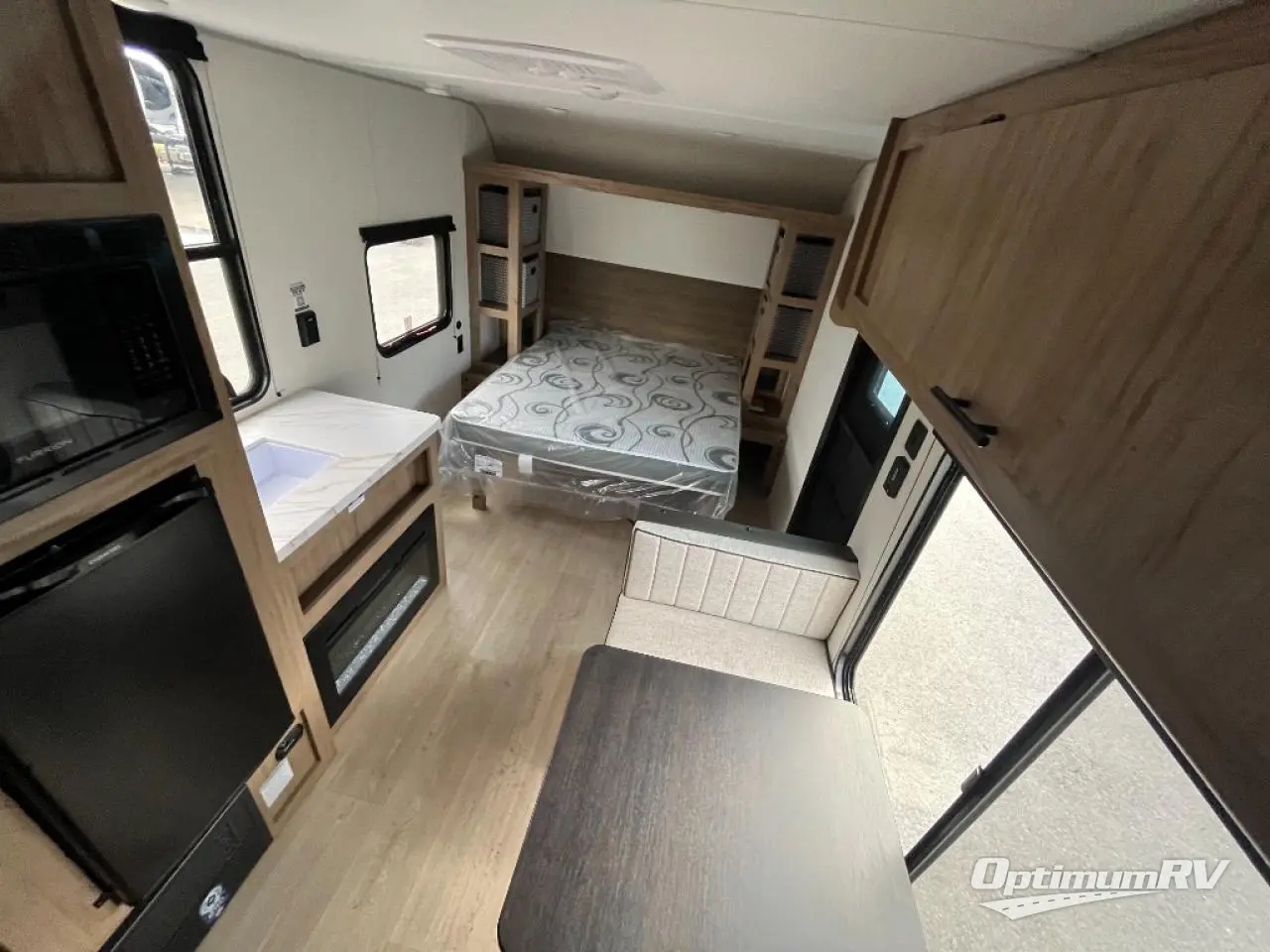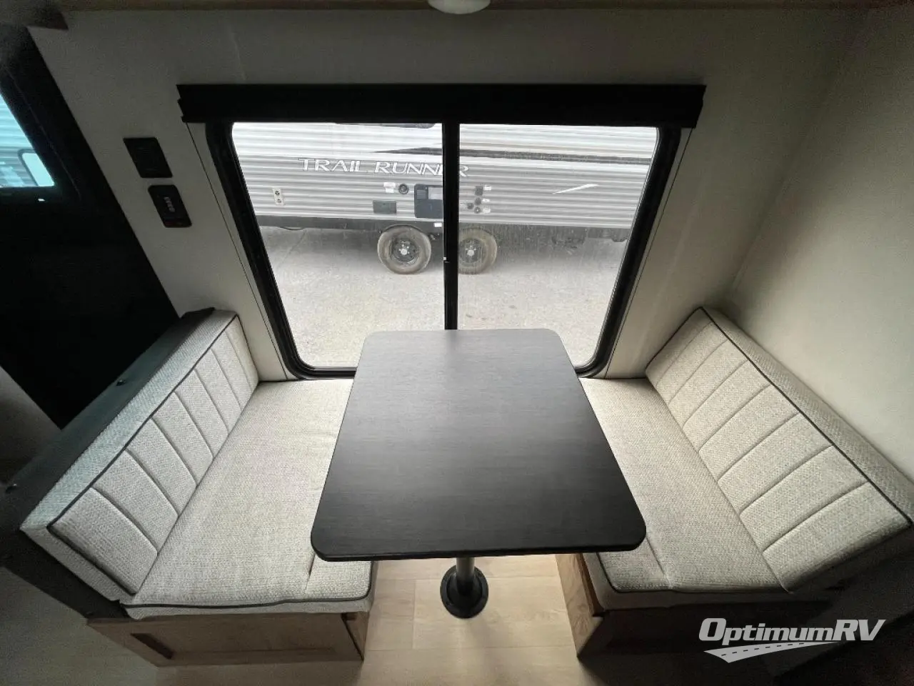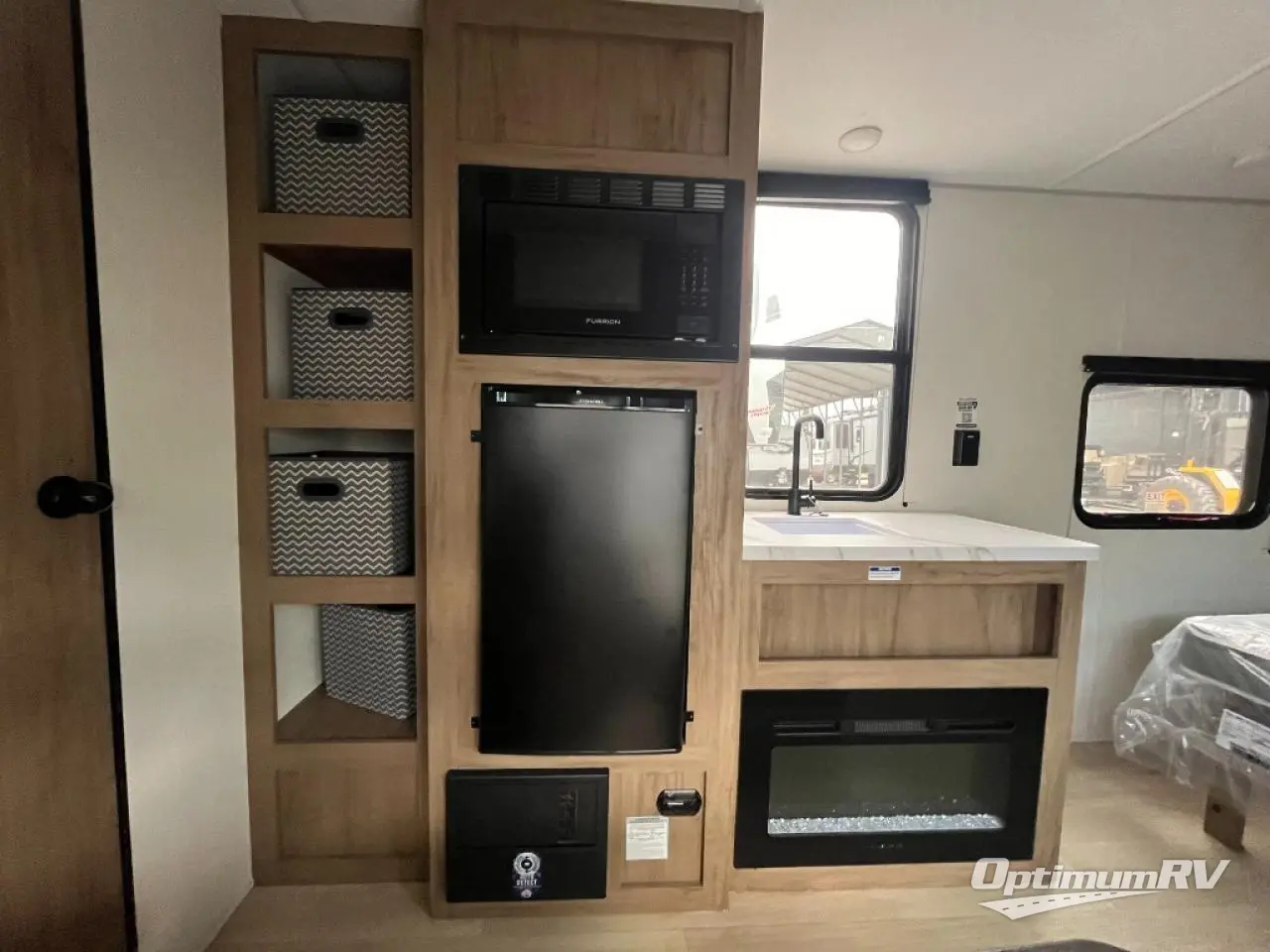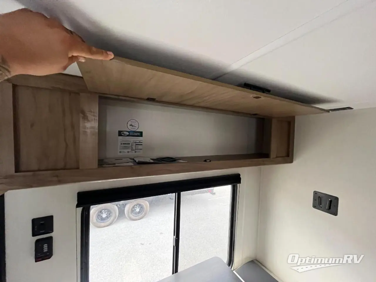 You will love weekends at the lake in this all-electric travel trailer that can sleep three each night! The front queen bed includes dual storage drawers on either side of the bed to keep your clothes tidy, and there is a shelf above the bed to keep books! After you've made breakfast, you can dine at the booth dinette and cleanup will be easy with the rectangle sink. A spacious full rear bath lets you clean up each day, and there is a closet with shelves to keep towels and toiletries. You'll find additional storage in the pantry with shelves next to the refrigerator and outside storage for camp chairs, tools, and more!