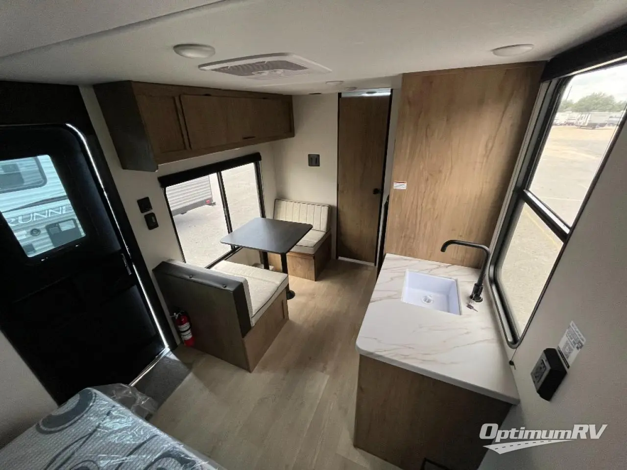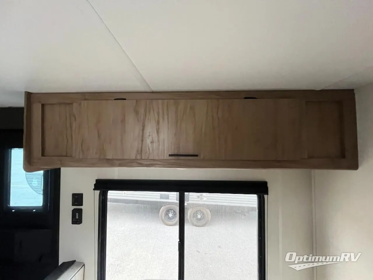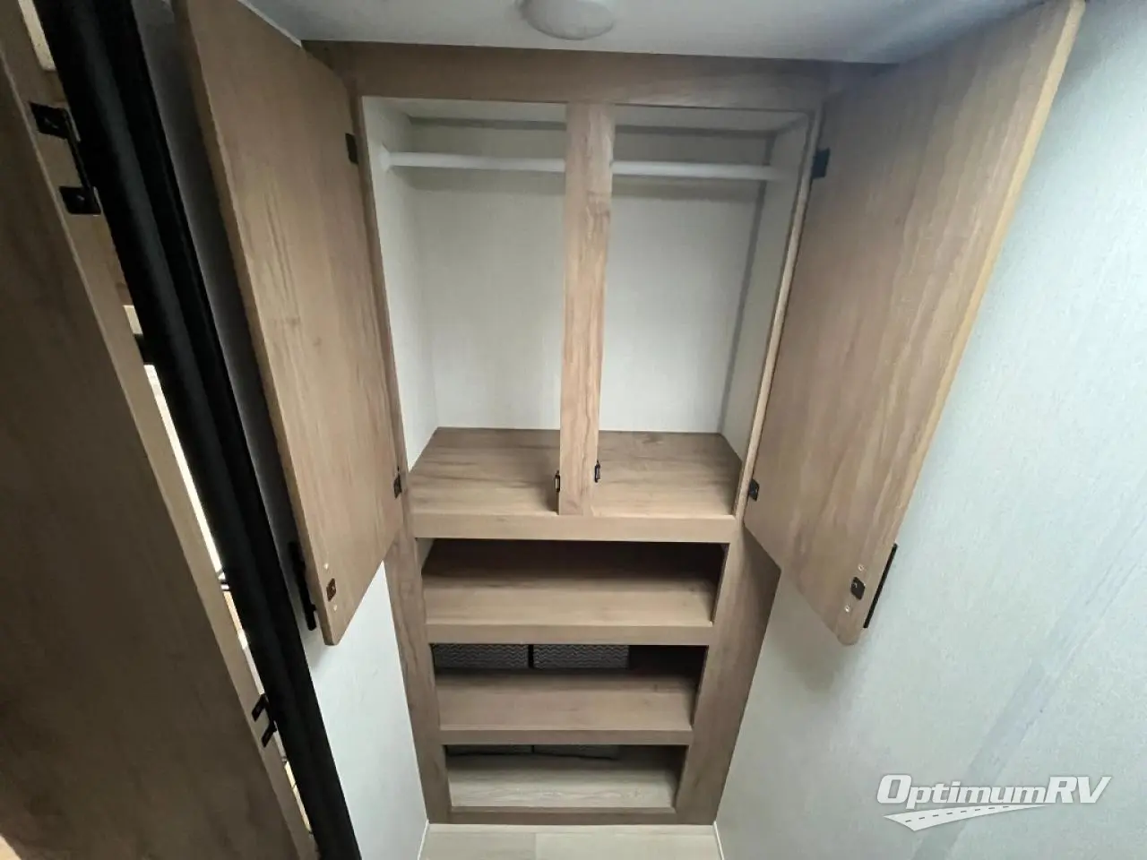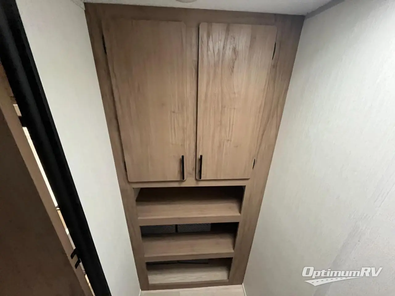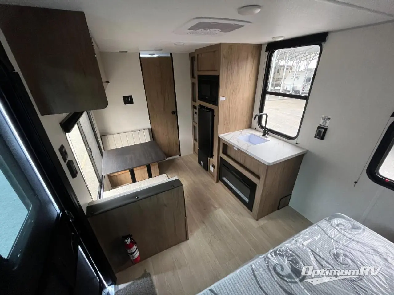 You will love weekends at the lake in this all-electric travel trailer that can sleep three each night! The front queen bed includes dual storage drawers on either side of the bed to keep your clothes tidy, and there is a shelf above the bed to keep books! After you've made breakfast, you can dine at the booth dinette and cleanup will be easy with the rectangle sink. A spacious full rear bath lets you clean up each day, and there is a closet with shelves to keep towels and toiletries. You'll find additional storage in the pantry with shelves next to the refrigerator and outside storage for camp chairs, tools, and more!