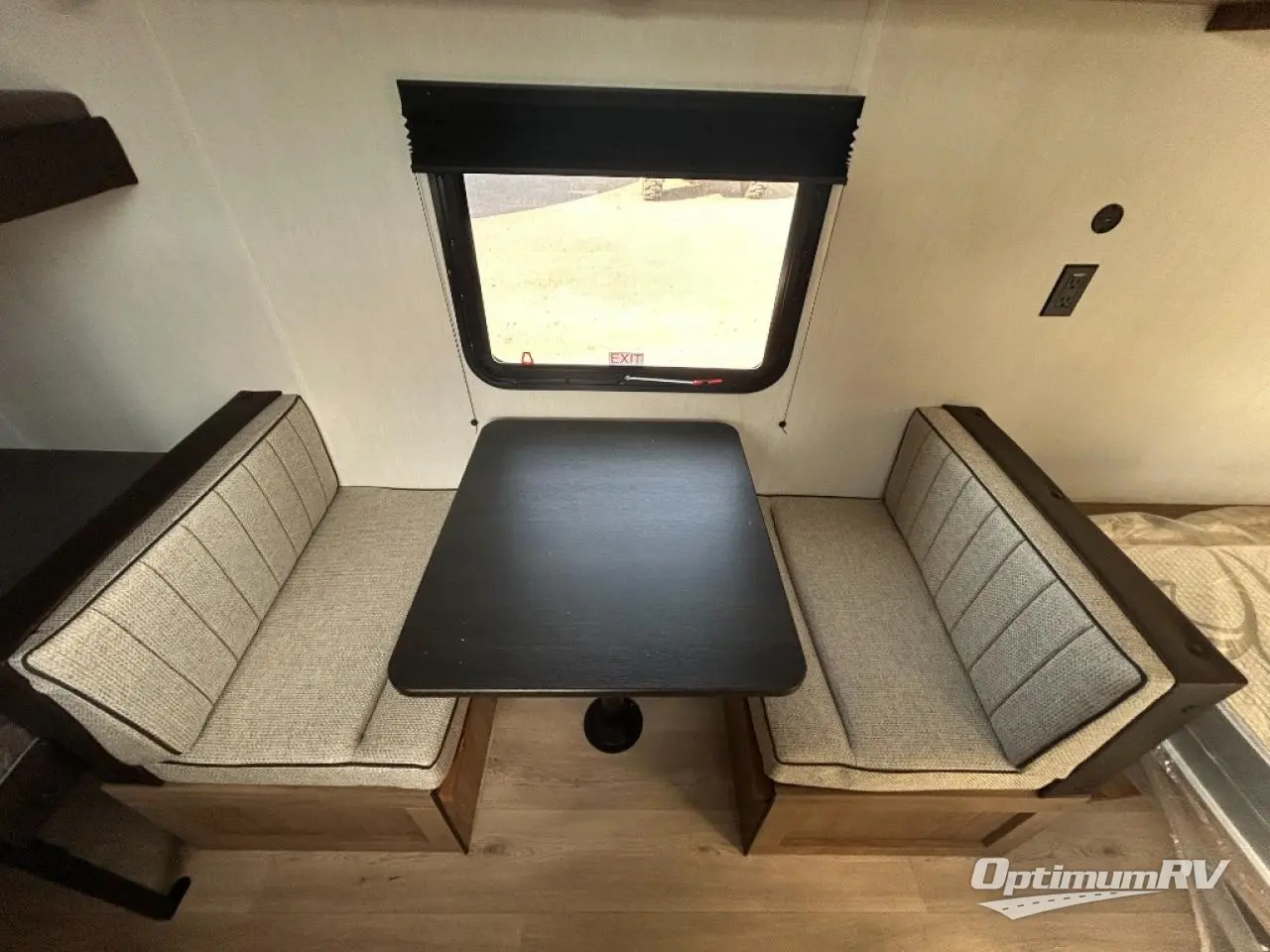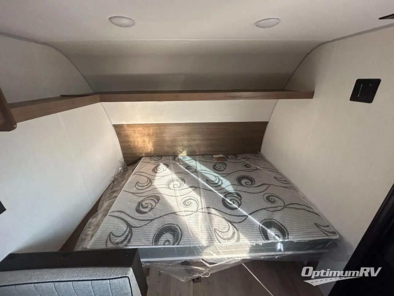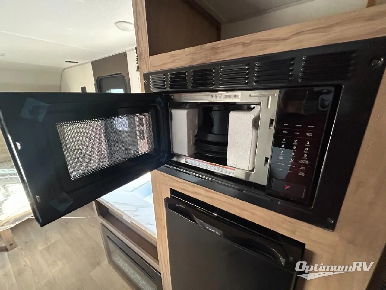Enjoy family adventures in this all-electric bunk model which features sleeping for four or six depending on size with a queen bed up front, oversized bunks in the rear roadside corner, and you could even convert the booth dinette to sleep more. Inside, you will find ample storage with overhead cabinets and a large shelf above the queen bed, plus four shelves next to the refrigerator and microwave/air fryer that feature decorative storage bins for your things. Use this space for pantry items, towels, or clothing storage. There is even a fireplace below the counter and sink to bring you a bit of heat on those chilly nights. On the outside, you will also find a 12' awning and plenty of outside storage for your camping gear, plus more!