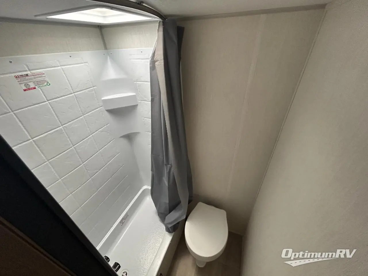Enjoy family adventures in this all-electric bunk model which features sleeping for four or six depending on size with a queen bed up front, oversized bunks in the rear roadside corner, and you could even convert the booth dinette to sleep more. Inside, you will find ample storage with overhead cabinets and a large shelf above the queen bed, plus four shelves next to the refrigerator and microwave/air fryer that feature decorative storage bins for your things. Use this space for pantry items, towels, or clothing storage. There is even a fireplace below the counter and sink to bring you a bit of heat on those chilly nights. On the outside, you will also find a 12' awning and plenty of outside storage for your camping gear, plus more!