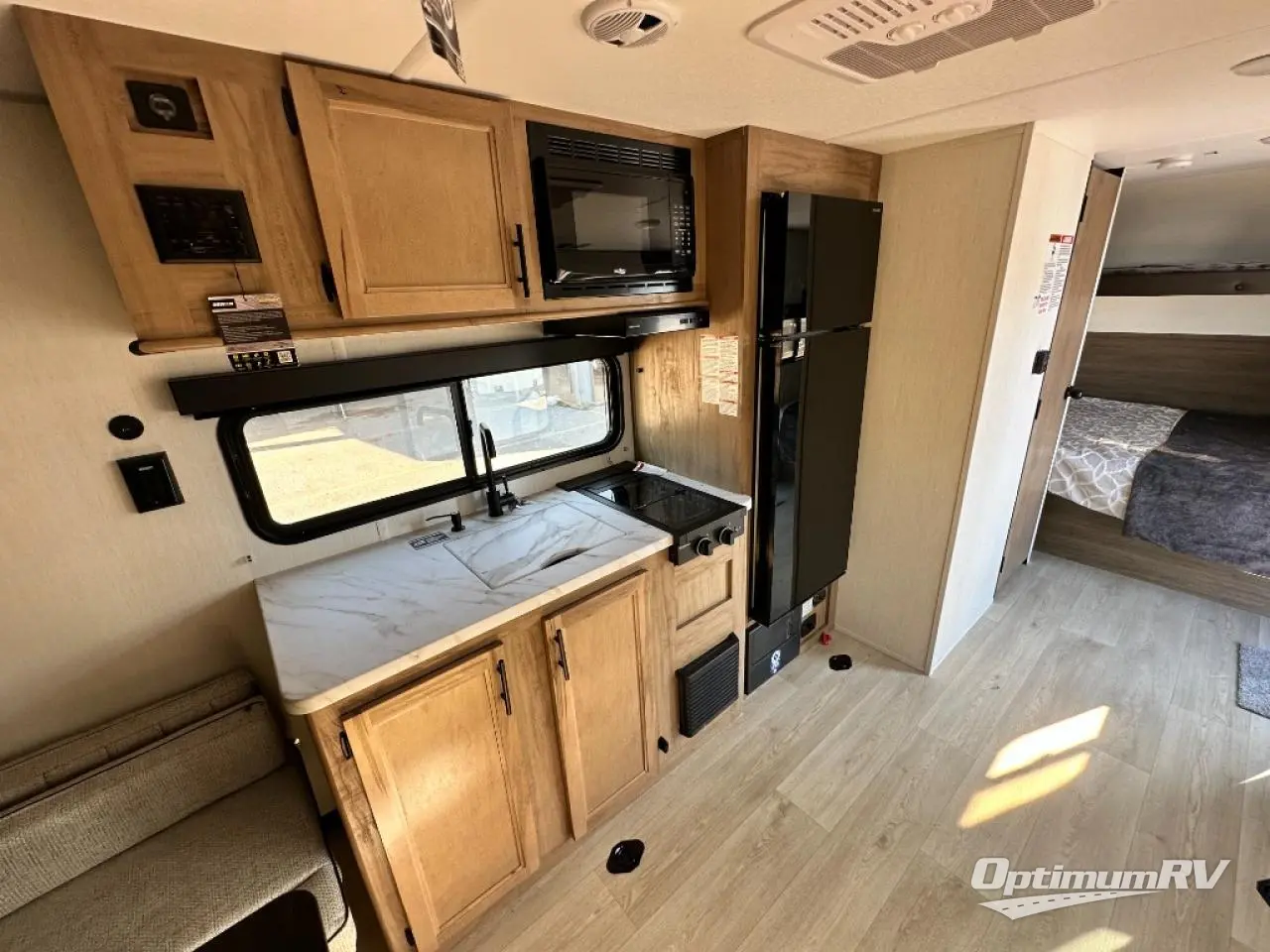 The 18RJBW is what a small toy hauler should be with the right combination of size, weight, and storage capacity for your toys. A modern chef’s kitchen, dinette area, queen size bed with overhead bunk and functional bath highlight the interior of this unit. On the exterior the exclusive Pup patio system will give you a great elevated seating area. As with all Pups, our outside awning area is second to none. Entertain guests with our outside entertainment area with speakers, and TV bracket.