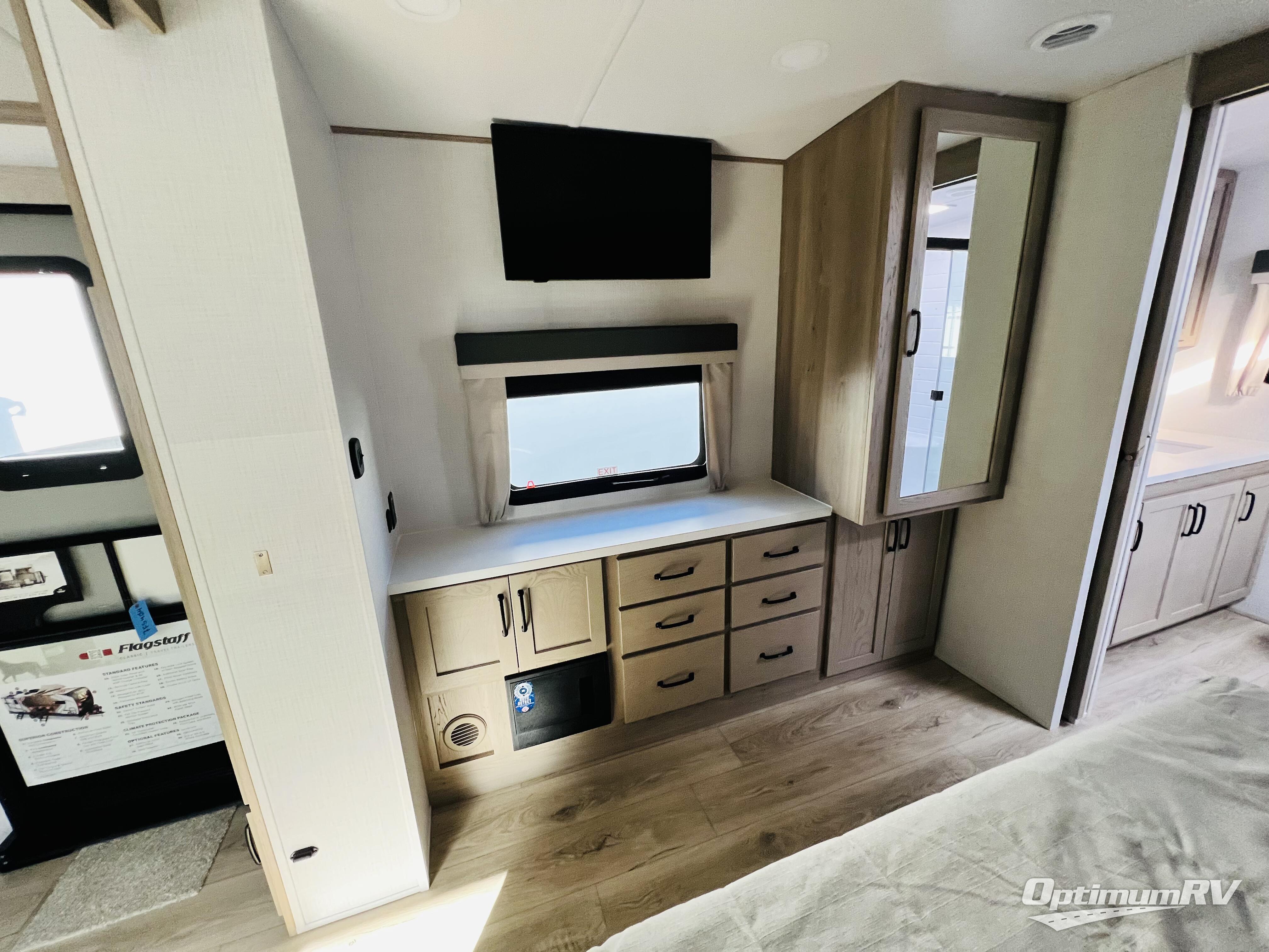 Each one of these Forest River Flagstaff Classic fifth wheels or travel trailers will be your home on wheels! Their quality craftsmanship and attention to detail shines through the enclosed underbelly, the radius roof with vaulted interior ceilings, and six-sided fully aluminum-framed floor, walls, and roof. Towing your unit will be easy with the Goodyear Endurance tires plus a tire pressure monitoring system with a monitor. The interior of each Flagstaff Classic model will have you feeling right at home with Sedonwood cabinetry, soft closing drawer slides, reading lights in the bedroom, plus many more comforts.