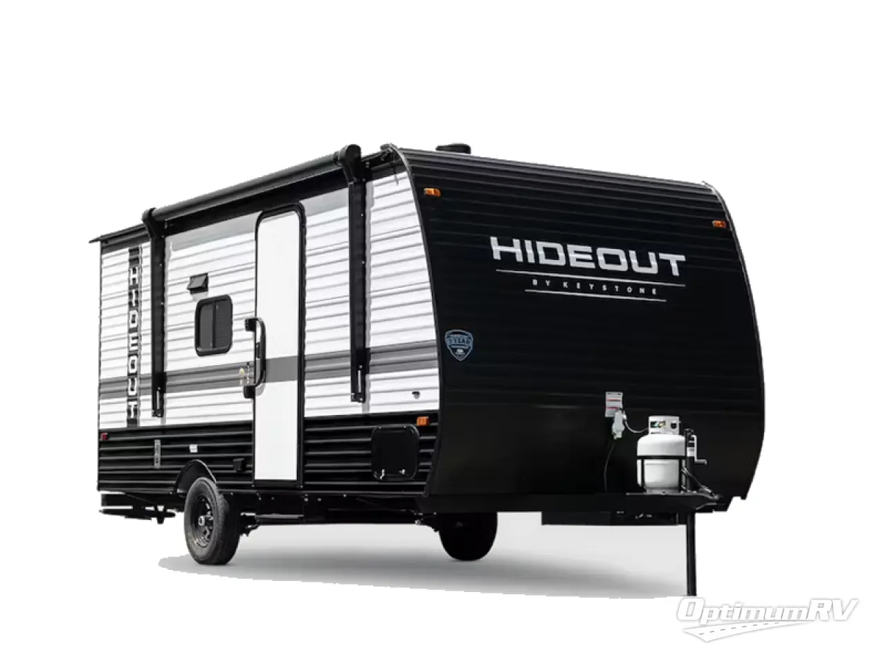 Open your horizons with the Hideout Sport Single Axle travel trailers by Keystone. They are compact, convenient, and lightweight; everything you're looking for in an RV! Each model features an aluminum exterior, tinted safety glass windows, and a Super Flex TPO roof membrane for added durability. The interior includes blackout night shades for added privacy and real wood doors and drawers that will give a more at-home touch. The Girard tankless water heater is a feature you won't want to camp without, and the LED lighting will keep your space bright and open!