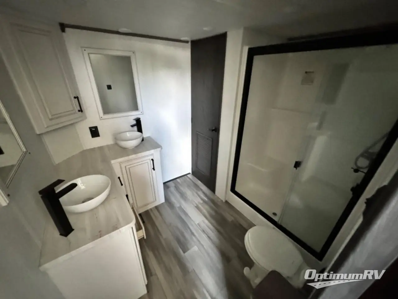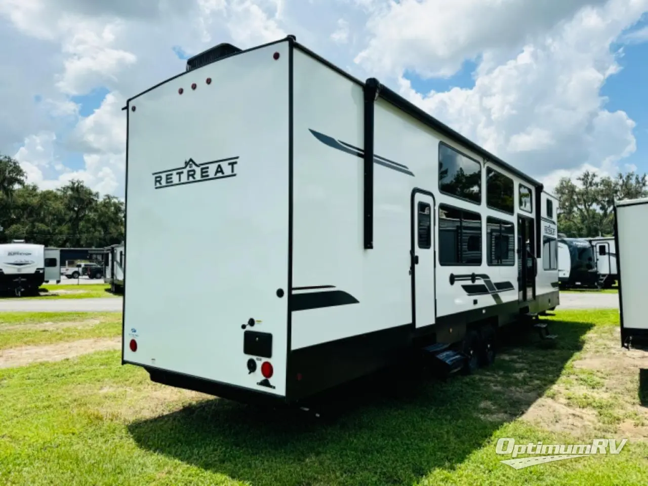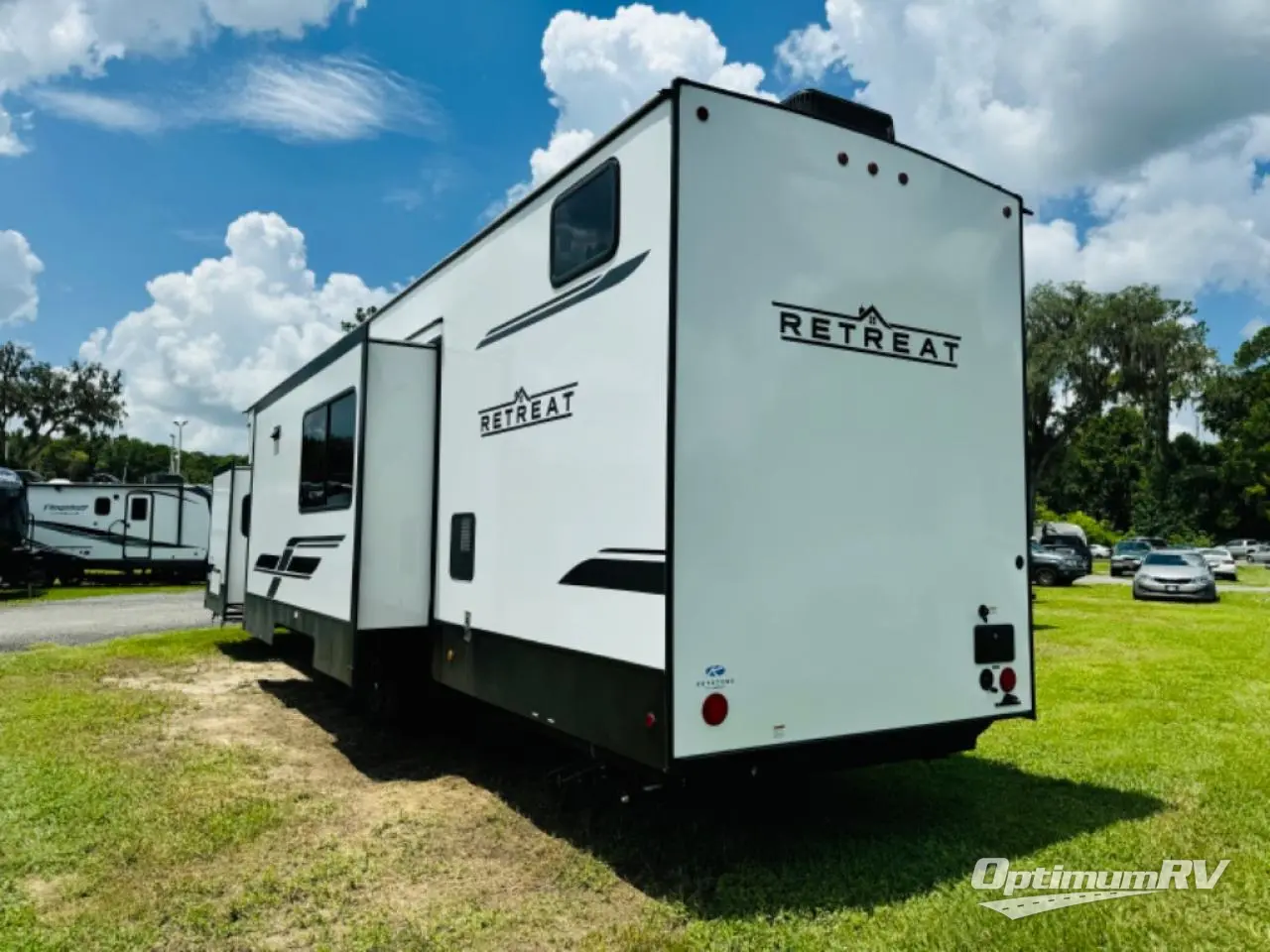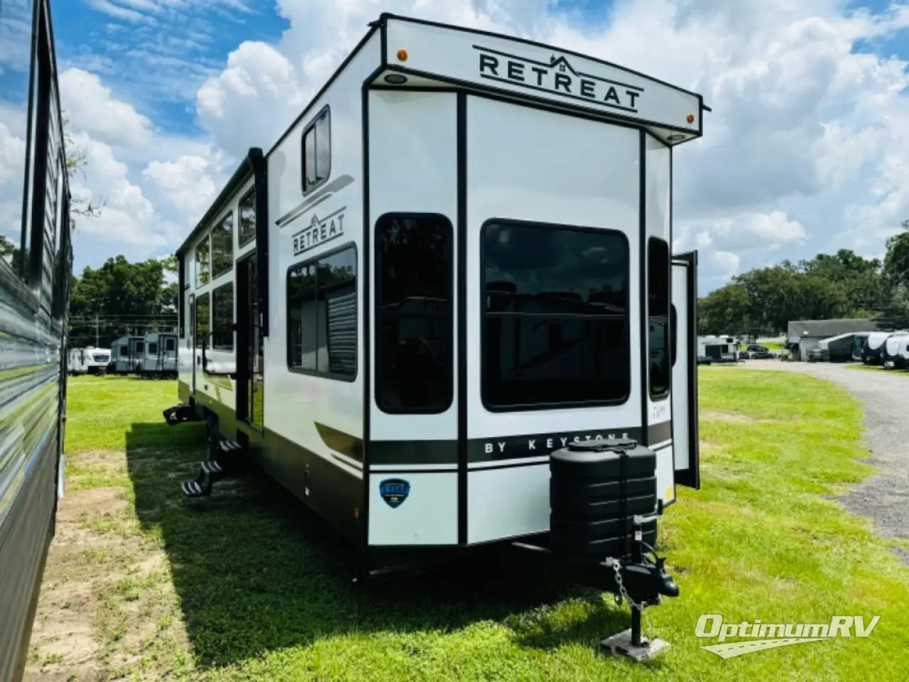 The Keystone Retreat destination trailer is a luxurious retreat in and of itself! You won't need to plan an extensive road trip because the Retreat gives you everything you need in one location. The spacious interiors include residential appliances and plenty of storage spaces for personal belongings, camp gear, food, and more! Whether you choose a Retreat with laminated or aluminum sidewalls, you're sure to enjoy extended stays to the fullest!