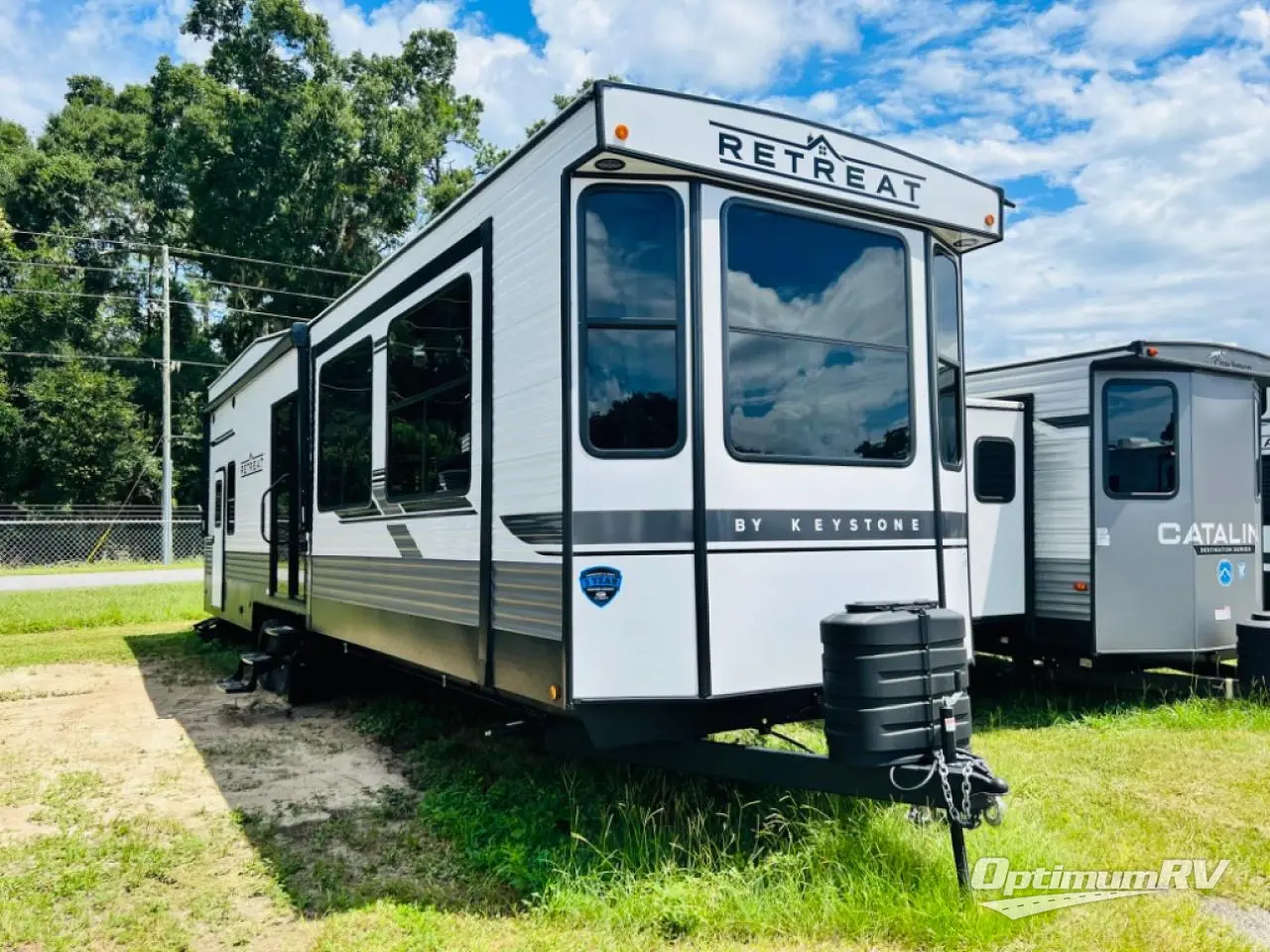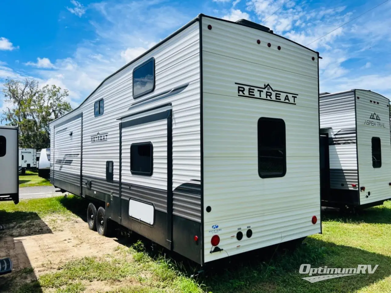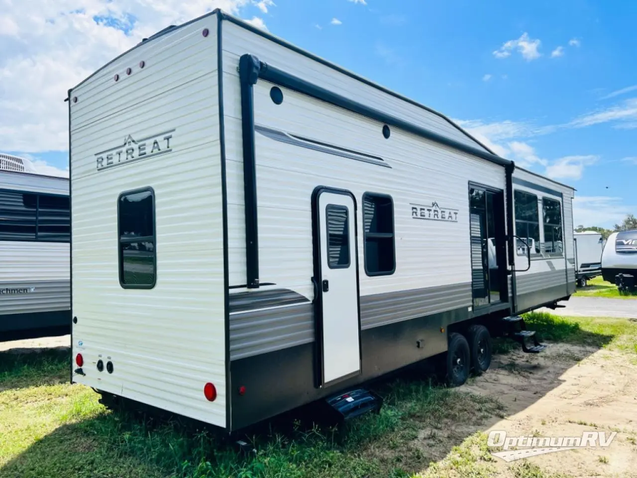 The Keystone Retreat destination trailer is a luxurious retreat in and of itself! You won't need to plan an extensive road trip because the Retreat gives you everything you need in one location. The spacious interiors include residential appliances and plenty of storage spaces for personal belongings, camp gear, food, and more! Whether you choose a Retreat with laminated or aluminum sidewalls, you're sure to enjoy extended stays to the fullest!