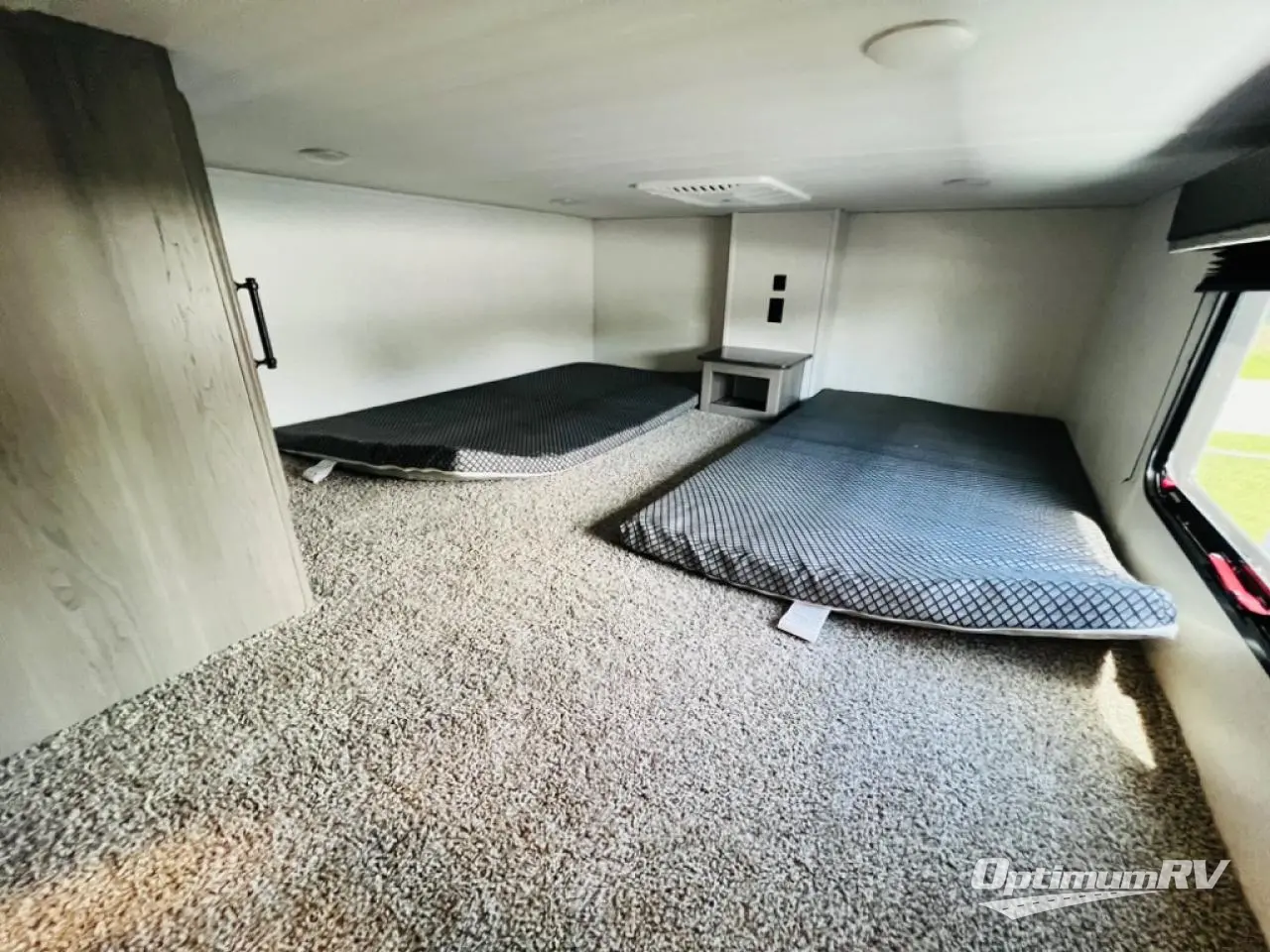 This Retreat destination trailer by Keystone RV brings you the feel of home all while you enjoy your camping experience. Your kids will love the loft and a place to call their own. There are two bunk mats and a place for a TV to be hooked up. Enjoy the private bedroom fit for a king with its king-size bed or relax with the family on the theatre seating in front of the HDTV.