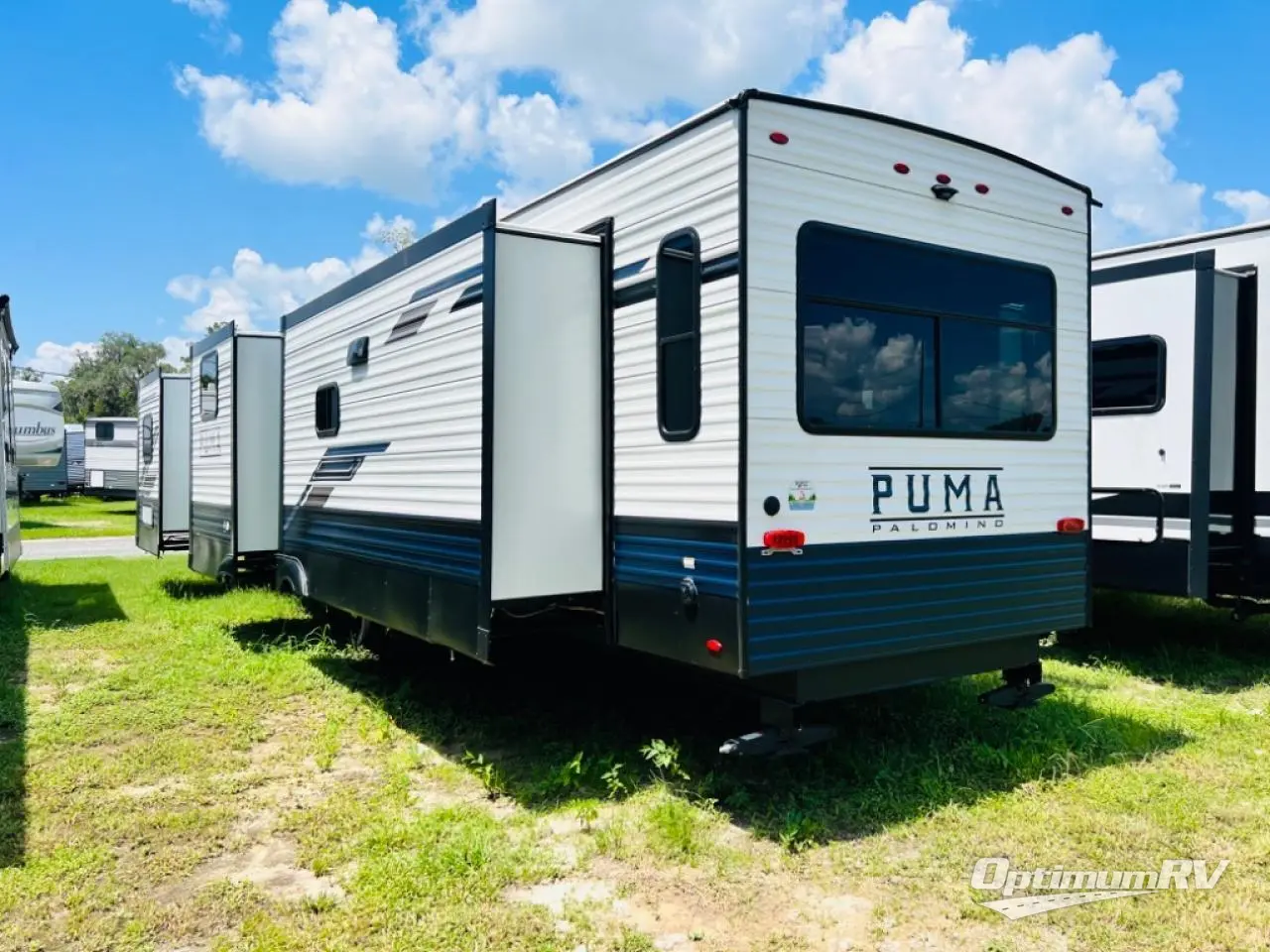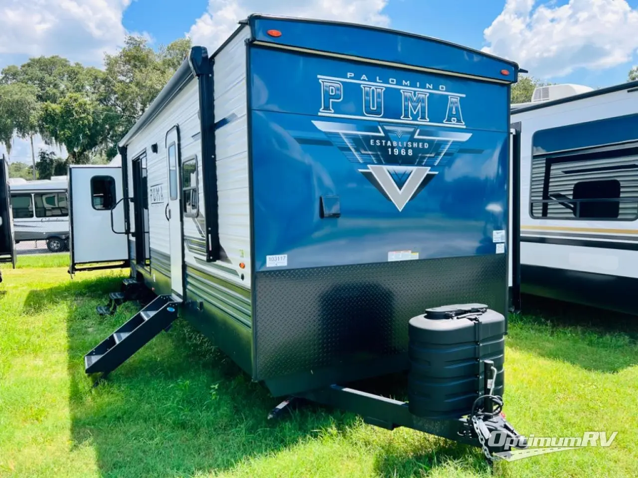Each Puma Destination trailer by Palomino is designed to give you unforgettable getaways to the destination of your choice! The Value Shopper Package features Congoleum linoleum, LED lighting, an AM/FM/Bluetooth stereo, and an upgraded kitchen faucet to name a few comforts. Two exterior speakers are included with the required Marquis Edition, along with solid surface countertops, night roller shades, an outside shower, and four stabilizer jacks to help keep your unit secure. You will also appreciate the roof and side mount solar prep for off-grid capabilities, as well as WiFi prep if you need the option to work while you're away from home!