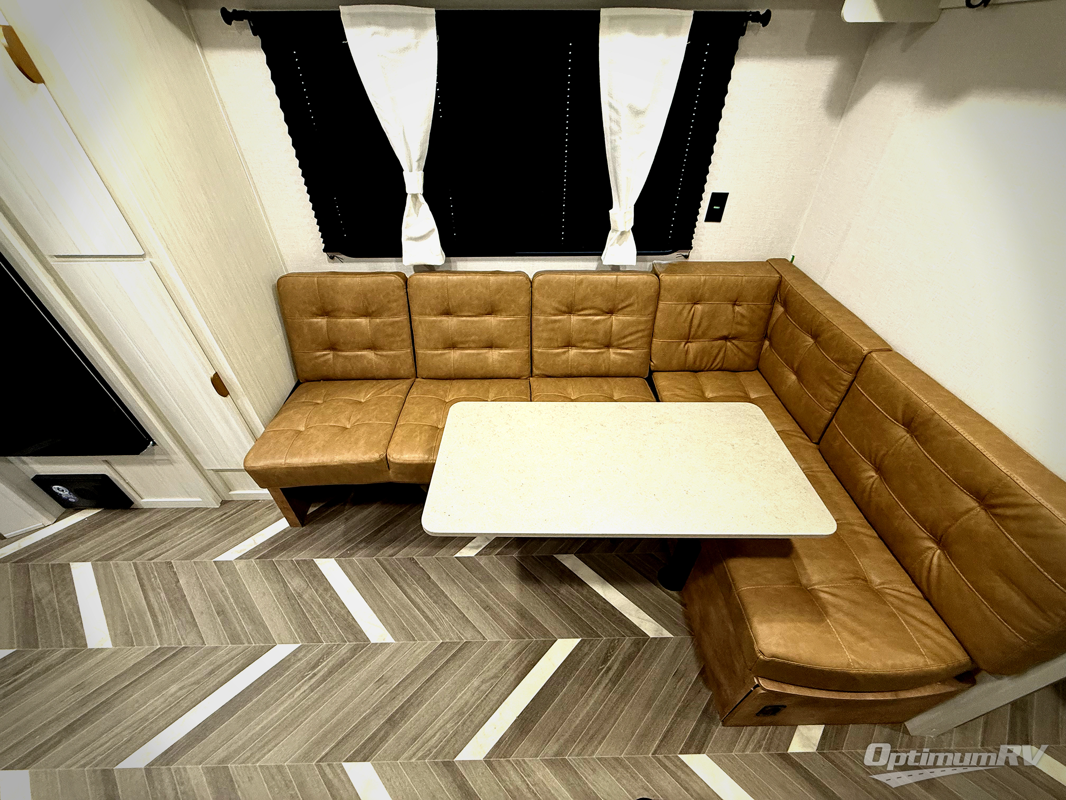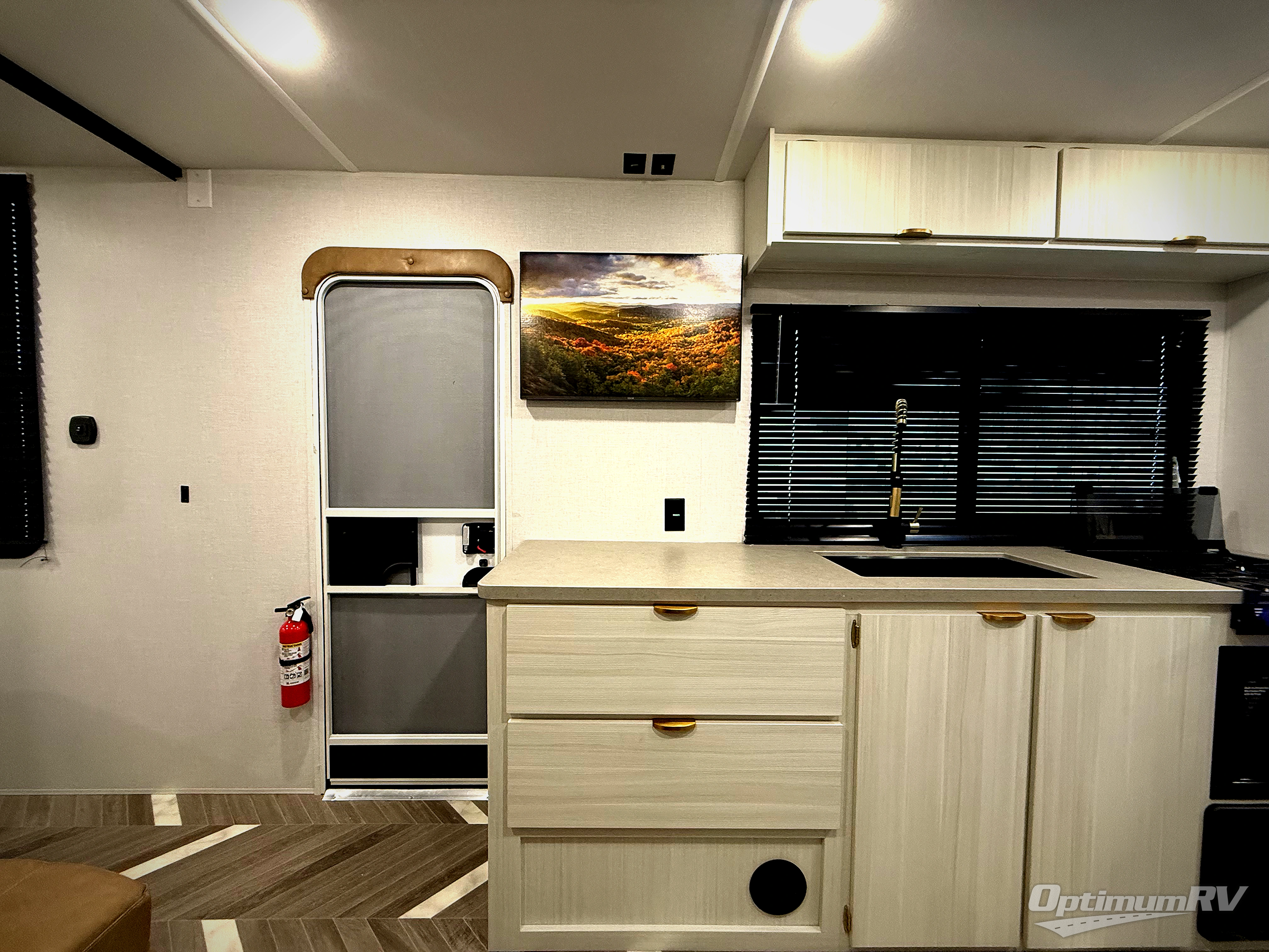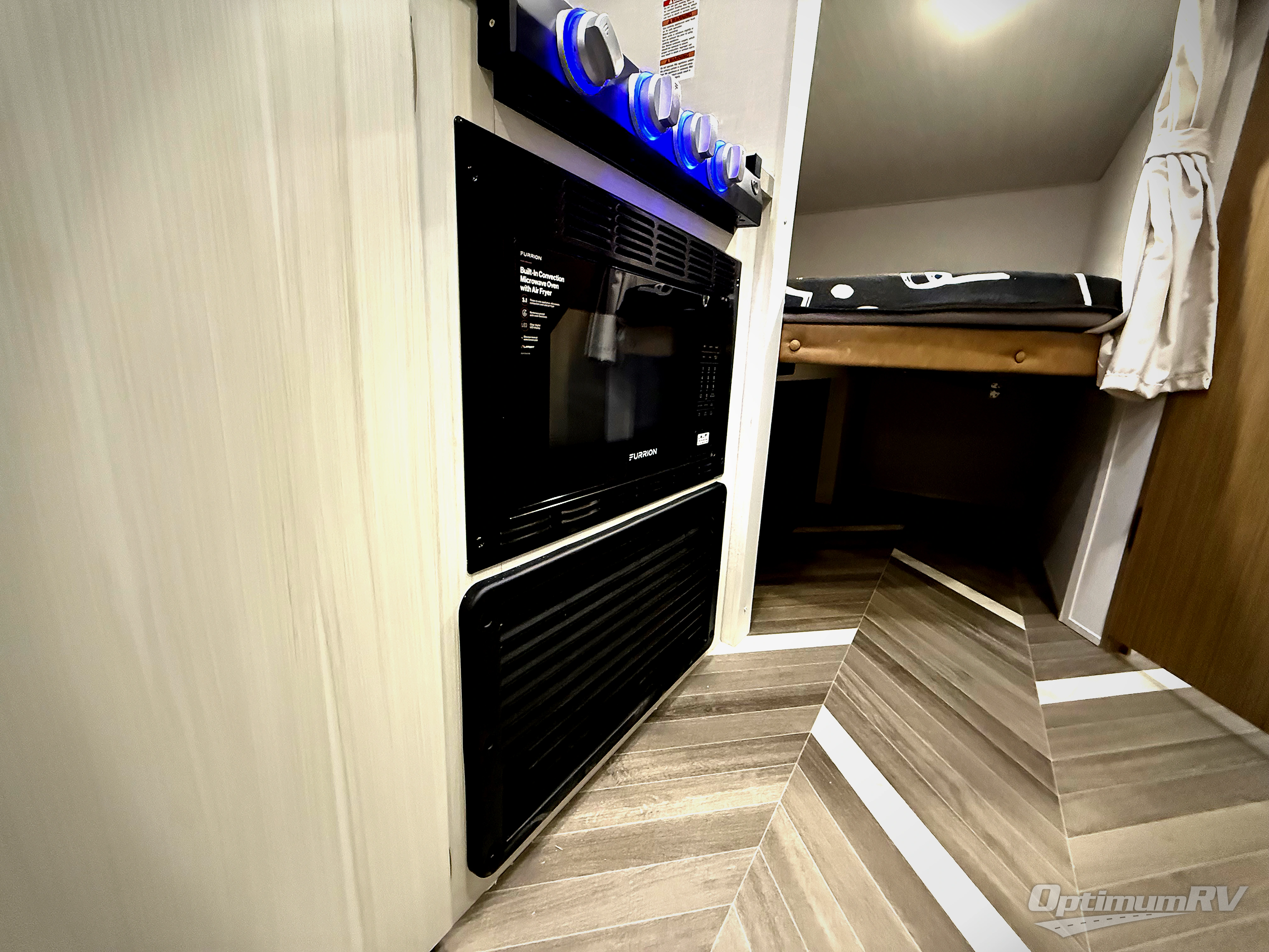 This trailer resembles the layout of 2300RB, but you'll enjoy added double-size bunks in the rear corner, with a full bath in the other rear corner! You'll have the front private bedroom all to yourselves with a king bed and dual wardrobes, and other guests can sleep on the L-shaped sofa when it's not being used to relax on. The kitchen on this Ozark includes a 3-in-1 cooktop with a convection microwave, and a window by the sink so you can have open views as you clean up. There is also a pantry and a 12V refrigerator to keep food stocked!