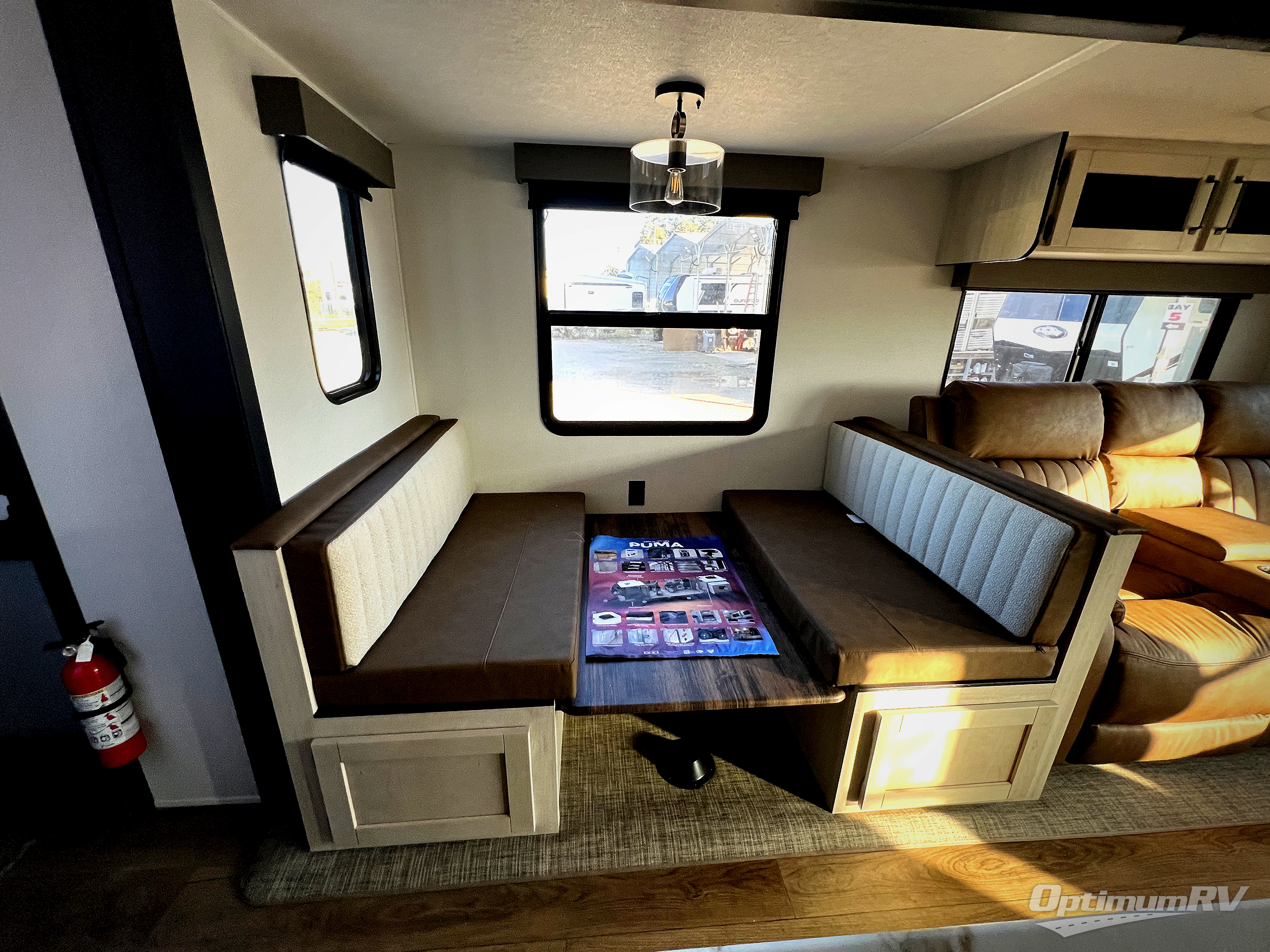 If you're looking for family-fun adventures, then you need one of these Forest River Puma travel trailers! They are built rugged, easy to tow, and jam packed with features. The Darco wrapped underbelly will help protect your unit, and the roof and side mount solar prep gives you the option to add off-grid power. Inside, the Congoleum linoleum will be easy to keep clean, and the night roller shades will provide privacy when it's time to turn in. You'll also enjoy an electric awning with an LED light strip plus an AM/FM/Bluetooth stereo and two outside speakers to keep the party going!