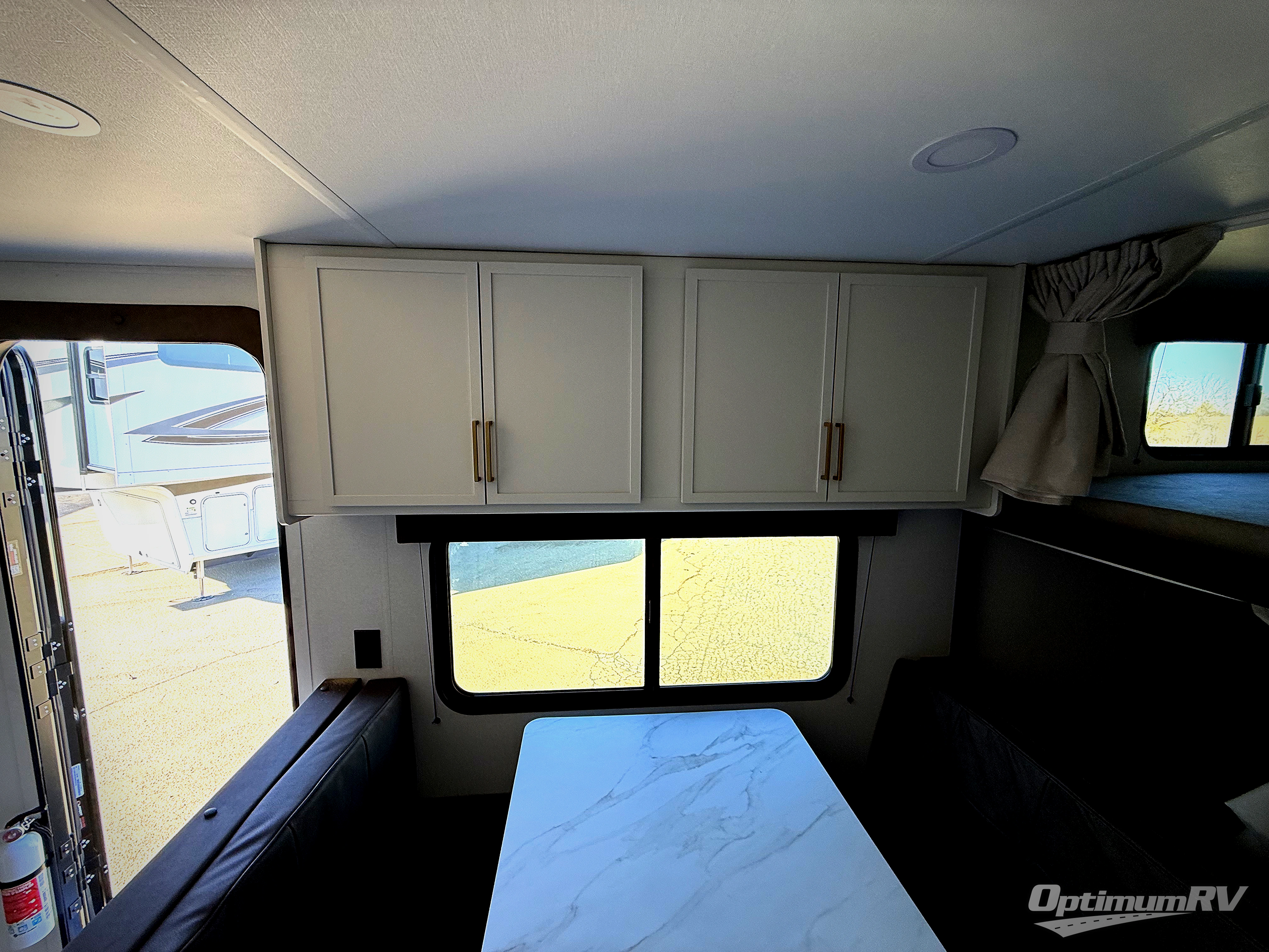 Camping trips are made complete in this travel trailer that can sleep seven each night! The little ones or your guest will love sleeping on the double-size bunks, while you take the queen bed in the front semi-private bedroom with a privacy curtain. A three-burner range and microwave oven will let you make meals each day, and a booth dinette provides a place to dine together. There are also convenient features found here, such as a pull-out pet dish and pull-out trash can, and there is ample storage space for your belongings. You will also appreciate the full bath that will let you stay clean throughout your trip without having to leave your trailer!