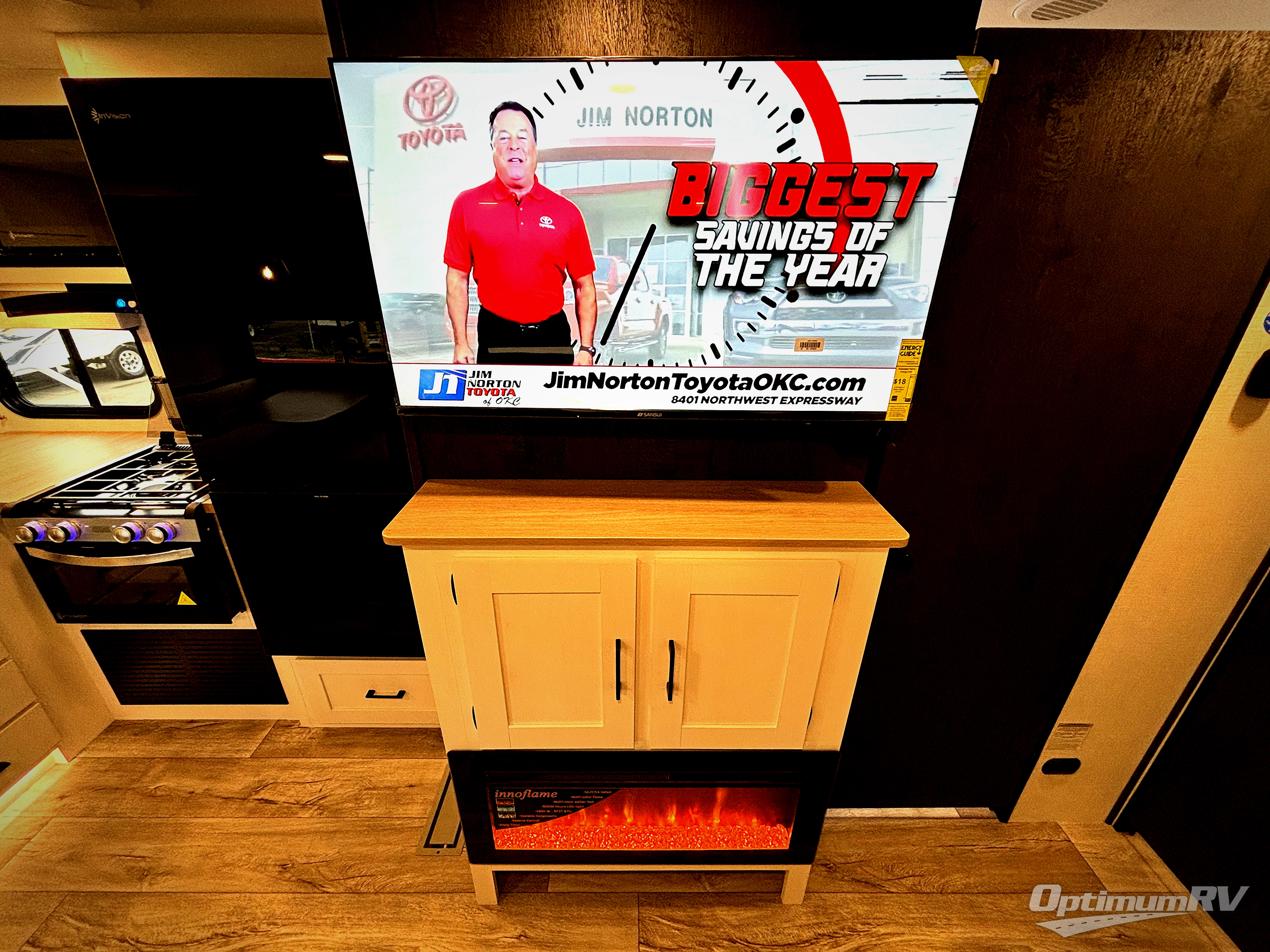 You'll love every minute spent in this spacious travel trailer with a rear private bunkhouse. There are two sets of bunk beds here, and the bottom bunks convert into a king-size bed, giving you options how you want to set up this space. The front private bedroom includes a Sleep Tight queen bed, dual wardrobes, and sliding doors that will help save on space. Your crew can relax on the 70" sofa or Sit N' Slide table within the large slide out and watch a movie with the Smart TV. Since there is an outdoor griddle and refrigerator plus a 20' power awning, you may just find yourselves outside most days!