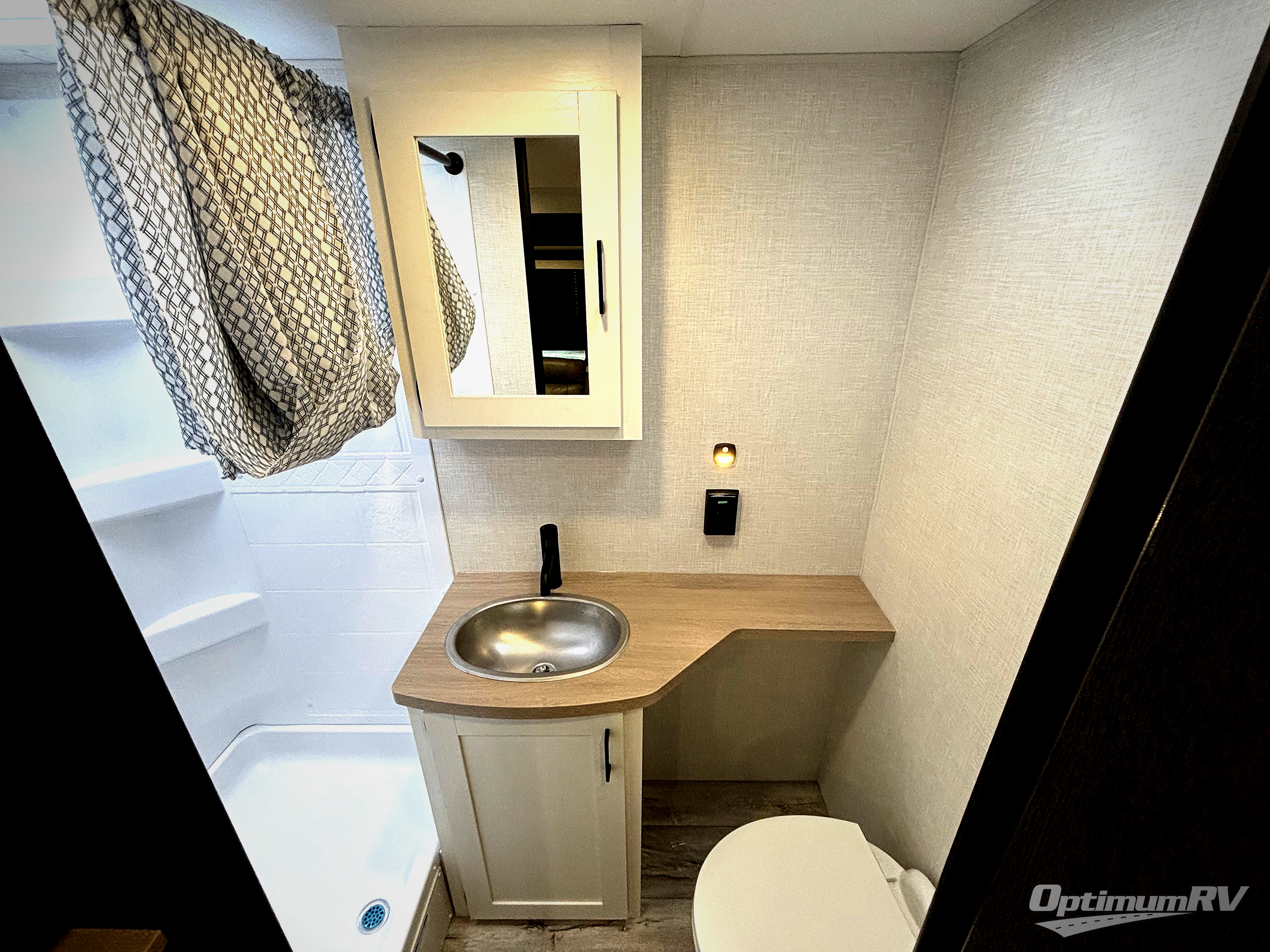 With any Sienna travel trailer by Venture RV, you will enjoy a lightweight unit, convenient amenities, and a durable construction that includes a BAL NXG-bolted frame. There is also a heated and enclosed one-piece underbelly, residential fiberglass insulation, and a reflective PVC roof membrane within the Weather-Shield Package to help extend your camping season. Outside, the BAL 5.0 power stabilizer jacks and power tongue jack will have you set up in no-time, and the Venture RV bottle opener/dog tie down will make it easy to bring your furry friends along. Head inside to enjoy the modern farmhouse design, along with Beauflor throughout with no carpet, custom backsplash, large underbed storage, and a bath skylight to name a few comforts!