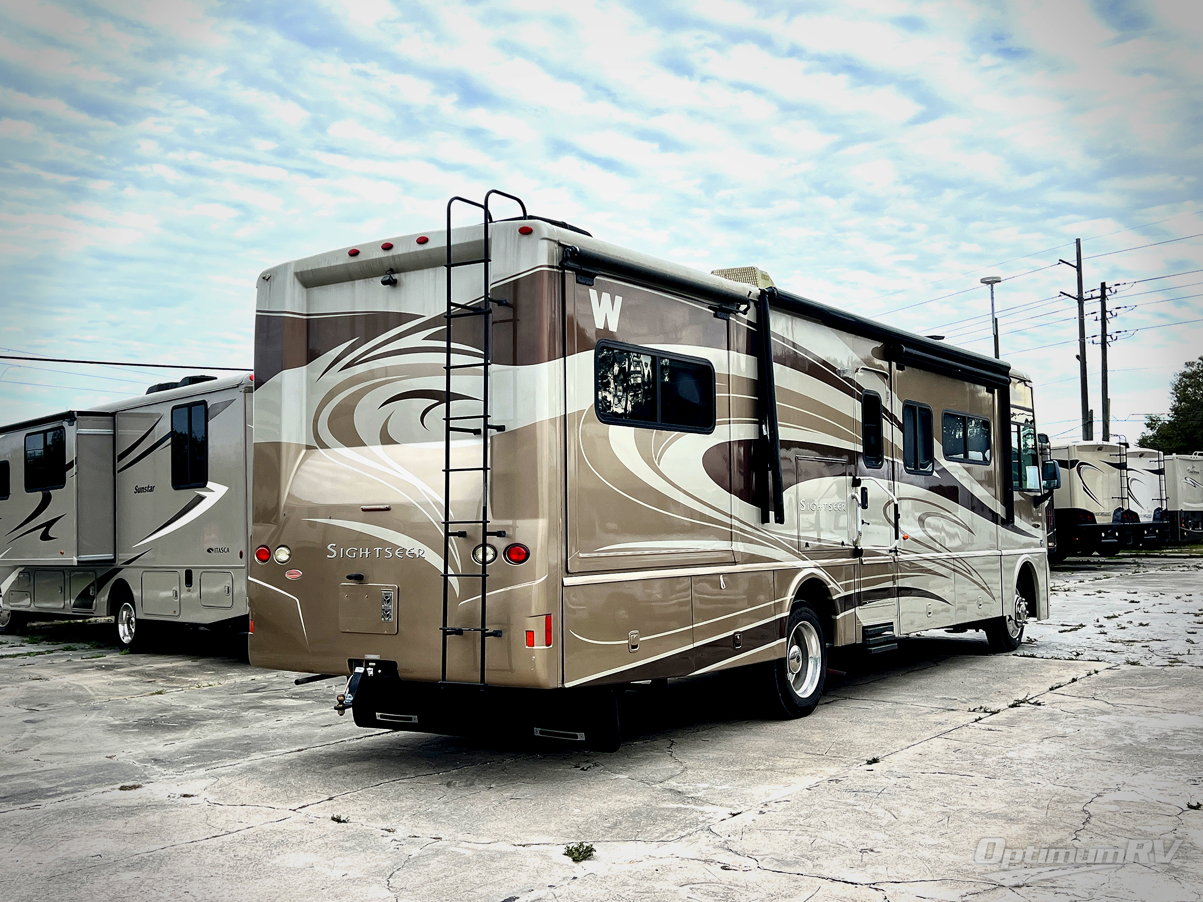 Triple Slide Sightseer Class A Coach w/Rear Queen Bed w/Nightstands Slideout, Wardrobe/Storage, Dbl. Sliding Door, Bath w/Shower, Vanity w/Sink & Toilet, Pantry/Refrig./3 Burner Range/Dbl. Kitchen Sink & BenchMark Dinette Slide, TV Above Cab Area, Slideout Sofa Bed & Recliner and Much More! Available Options May Include: King Bed, Comfort Sofa Sleeper IPO Sofa Bed, Dining Table & Chairs w/Buffet & 40" LCD TV, Bedroom TV.