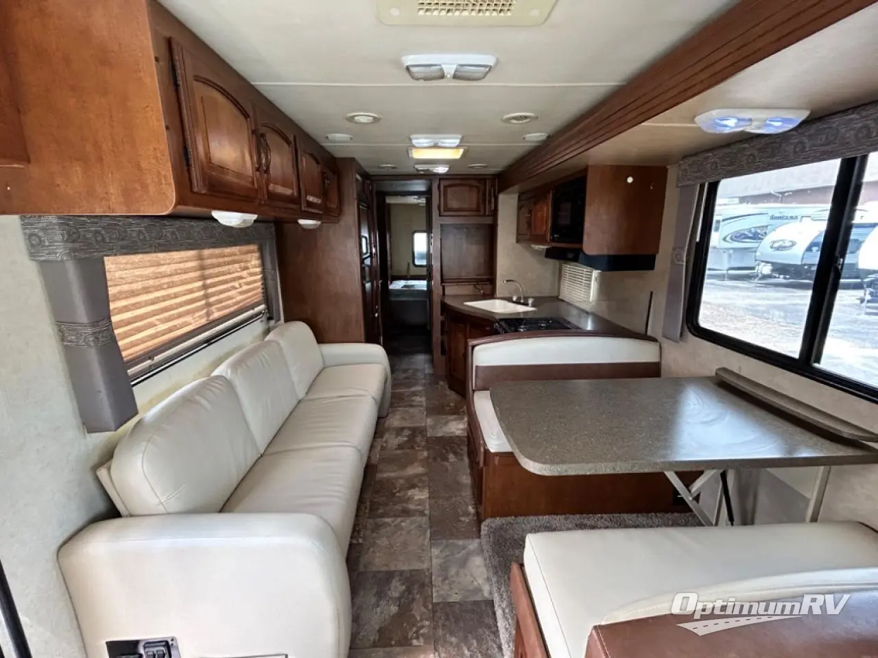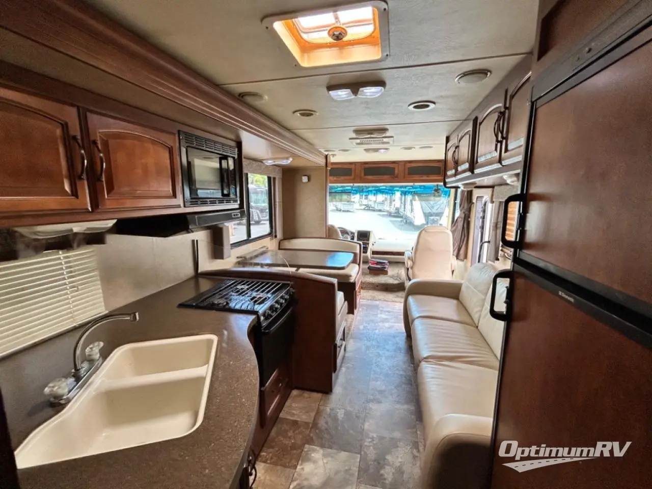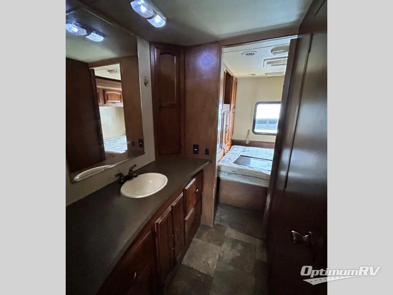 Double Slide Mirada Class A Coach by Coachmen w/Rear Queen Bed Slide w/Nightstand, Wardrobe w/LCD TV Between, Vanity w/Sink, Bath w/Shower, Linen Cabinet & Toilet, LCD TV in Living Area, Pantry, Refrigerator, Dbl. Kitchen Sink, 3 Burner Range w/Microwave & Booth Dinette Slide, Sofa w/Overhead Cabinet & More!