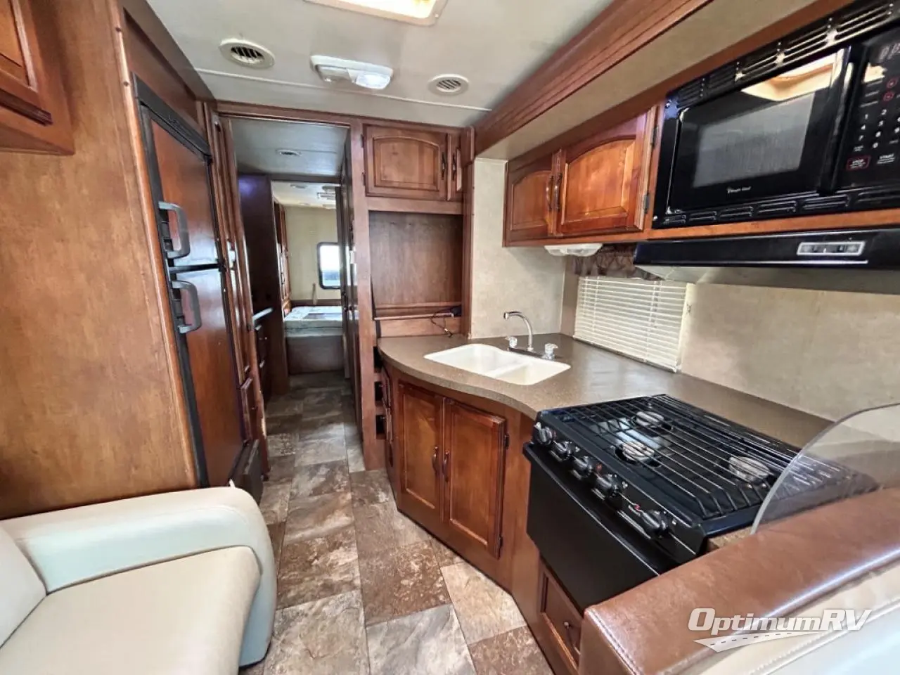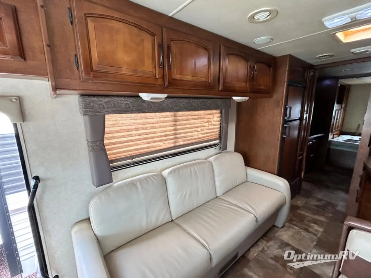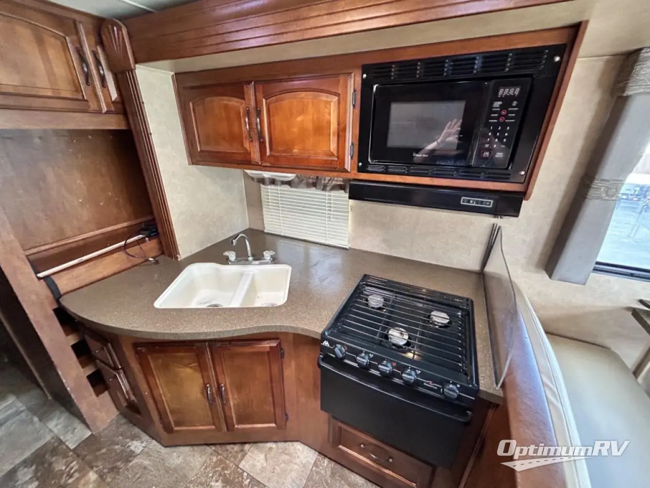 Double Slide Mirada Class A Coach by Coachmen w/Rear Queen Bed Slide w/Nightstand, Wardrobe w/LCD TV Between, Vanity w/Sink, Bath w/Shower, Linen Cabinet & Toilet, LCD TV in Living Area, Pantry, Refrigerator, Dbl. Kitchen Sink, 3 Burner Range w/Microwave & Booth Dinette Slide, Sofa w/Overhead Cabinet & More!