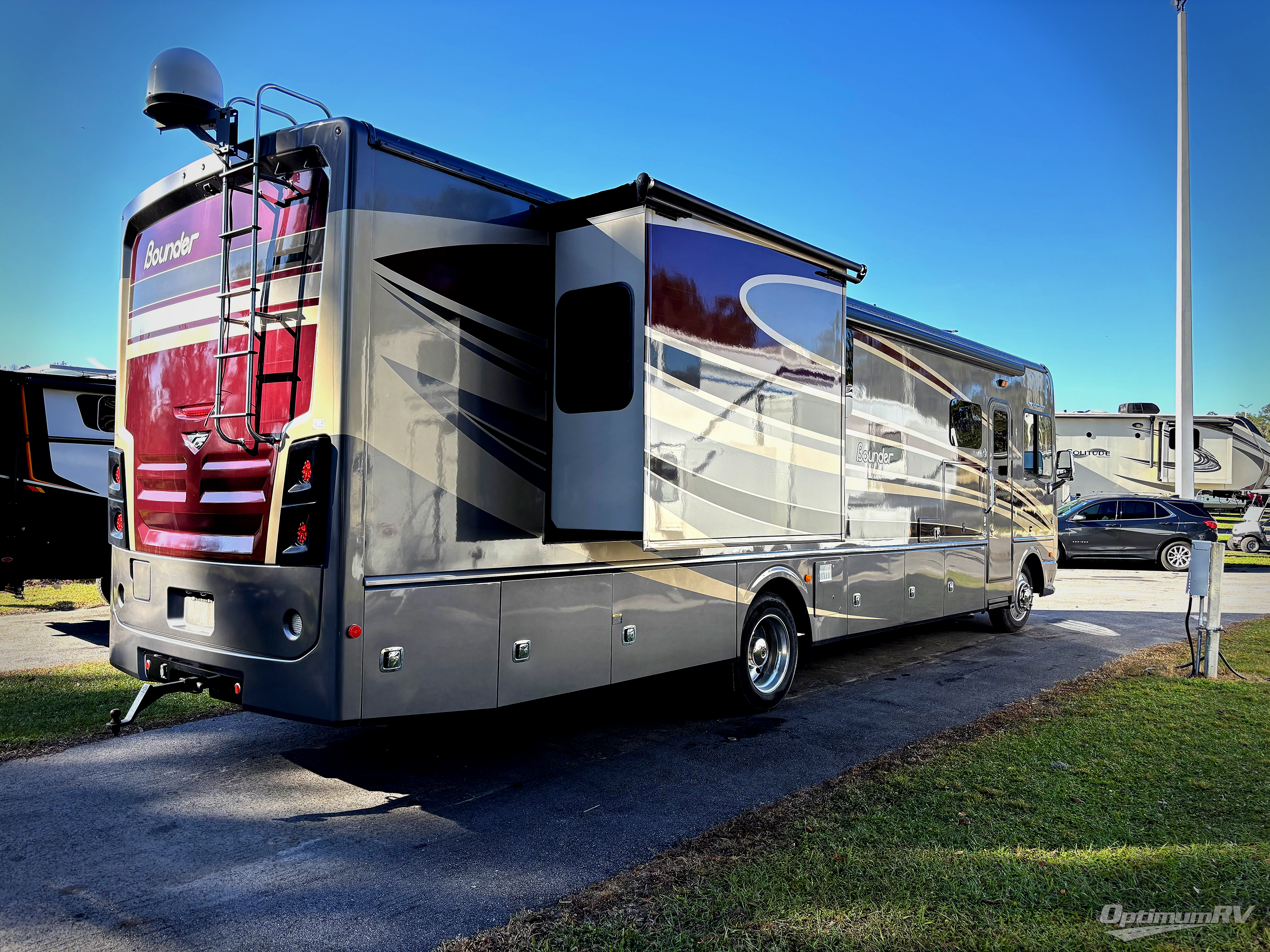 The Bounder 35K Fleetwood motor home features a rear master bathroom as well as convenient half bath.