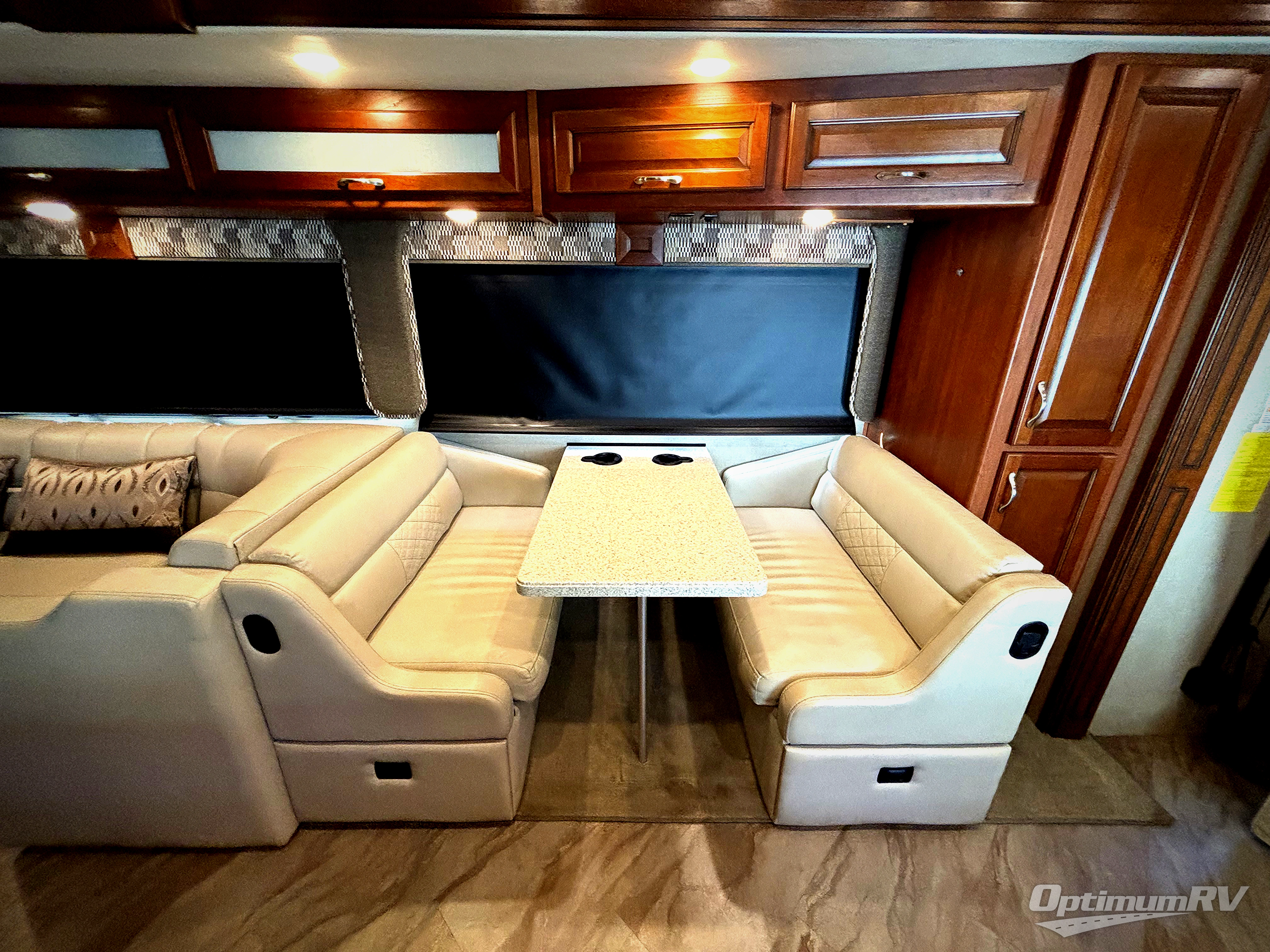 There is plenty of storage with all of the overhead cabinets in this motor home. You also have many options available to you such as, a front 32" LED TV, exterior entertainment center, three burner range with oven, washer and dryer, electric fireplace, residential refrigerator, hide-a-loft drop down queen bed, facing dinette, and a free-standing dinette with credenza.