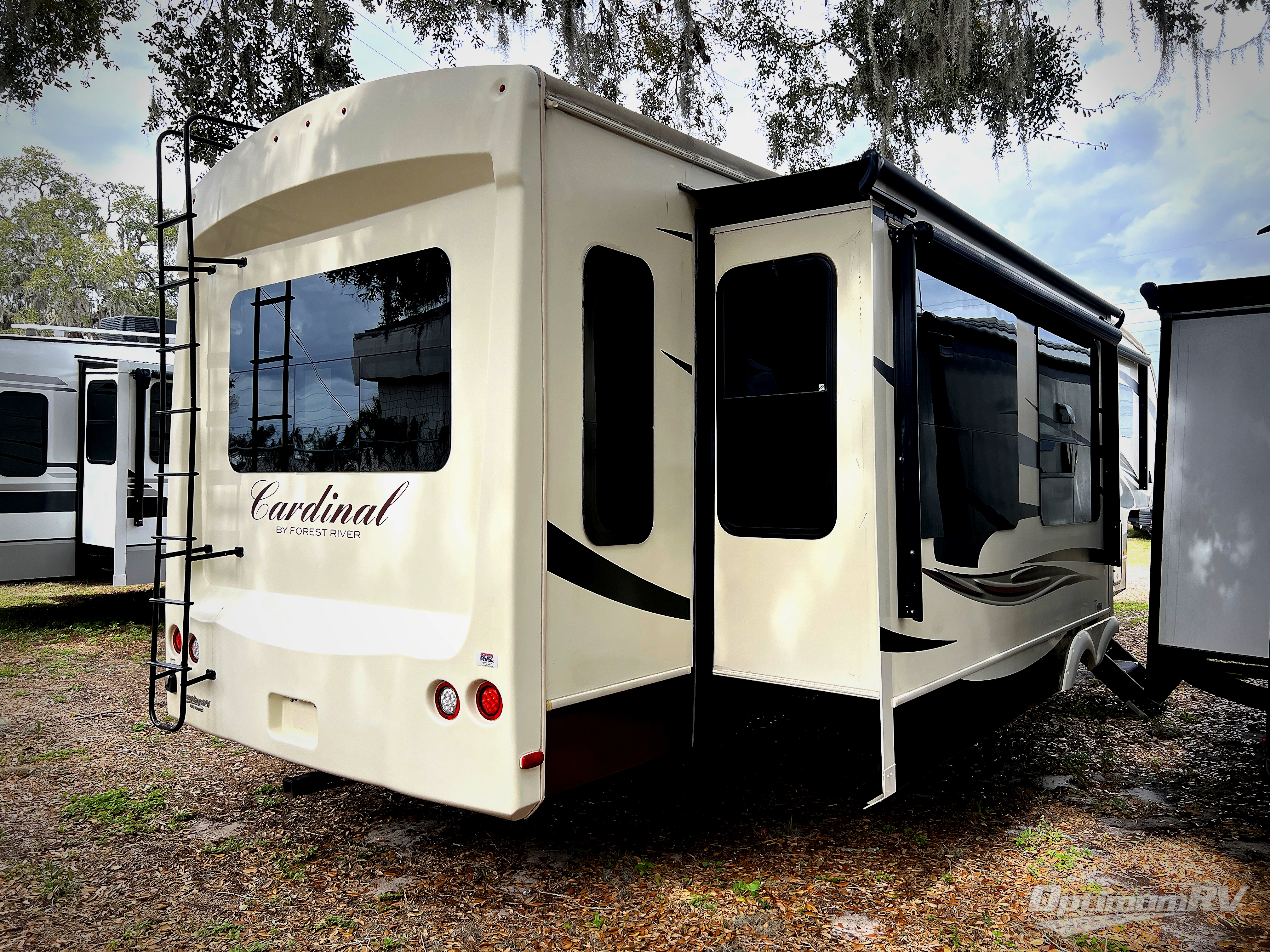 Entertain a few friends inside the Cardinal 3850RL fifth wheel by Forest River. This model has triple slides, a rear living area, and plenty of room on the inside for the whole gang.