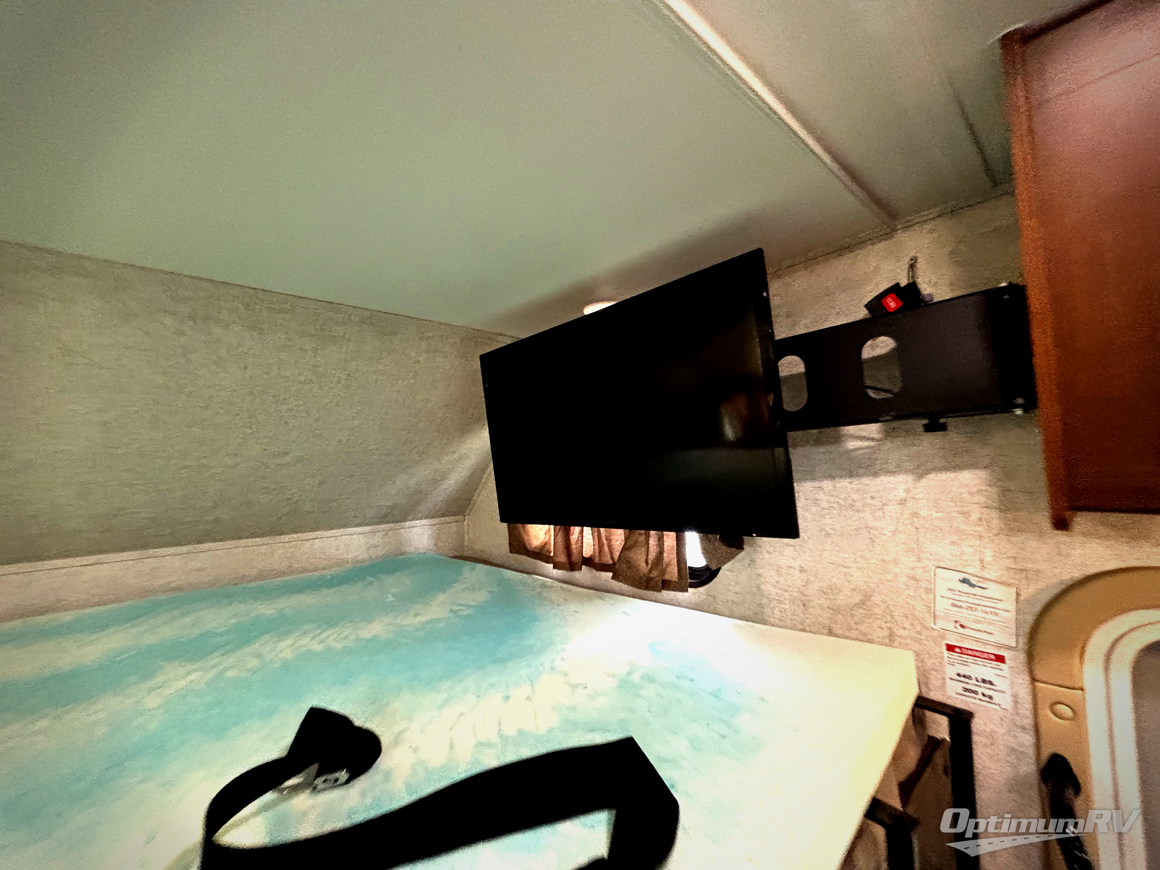 As you enter this class C motorhome, there is a 60" x 80" over the cab bunk, or you can choose optional cabinets with 42" TV or optional 32" TV with twin beds. Continuing along the driver's side, a u-shaped dinette is within a slide out. Or in place of the dinette you can choose an optional booth dinette, or a sofa with table. Next to the slide there is a pantry as well as a private toilet area with a shower. A vanity sink is located across the motorhome.