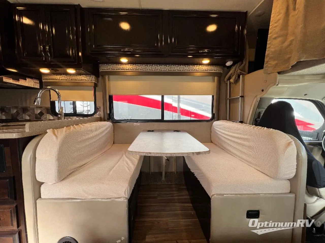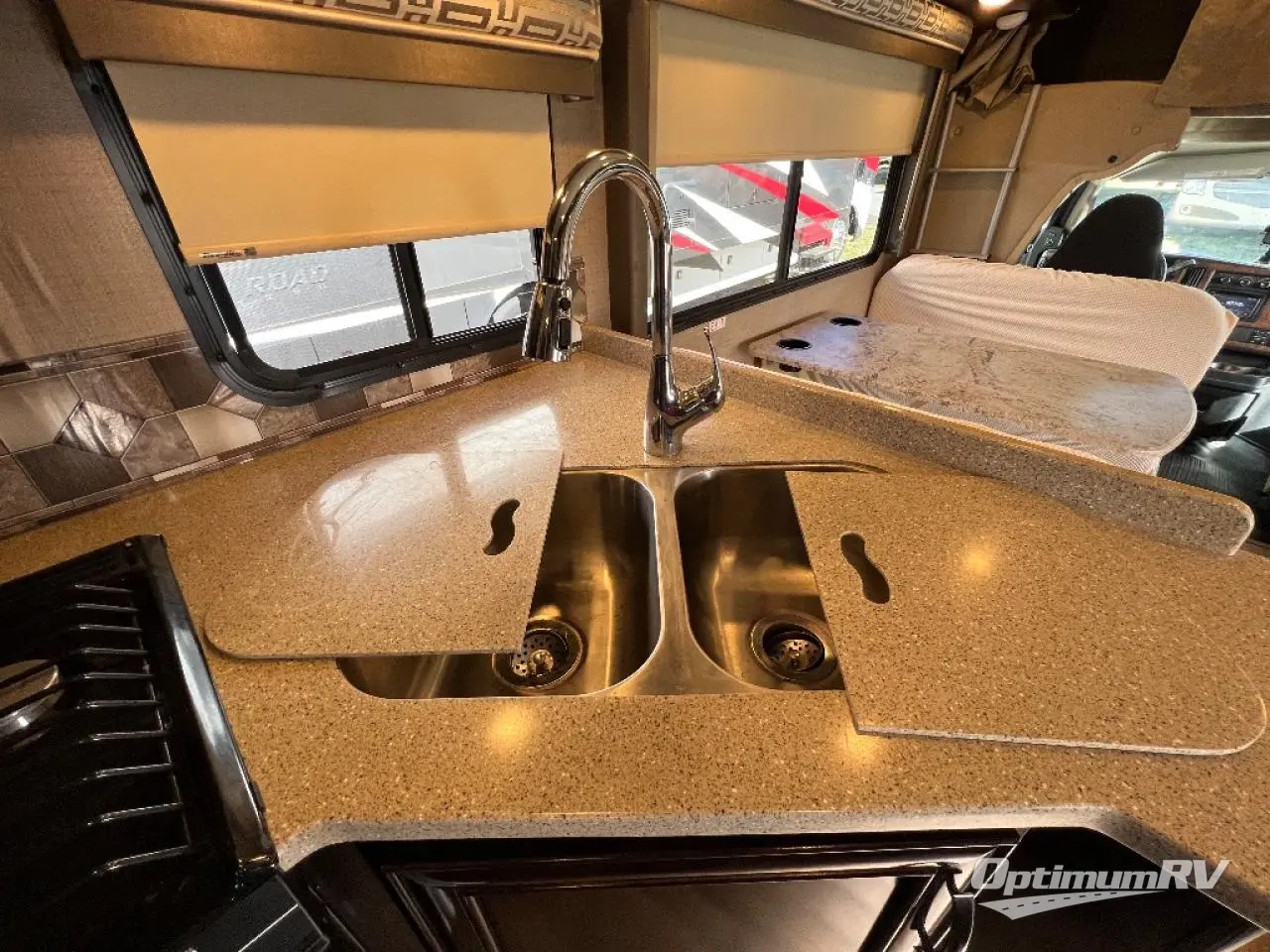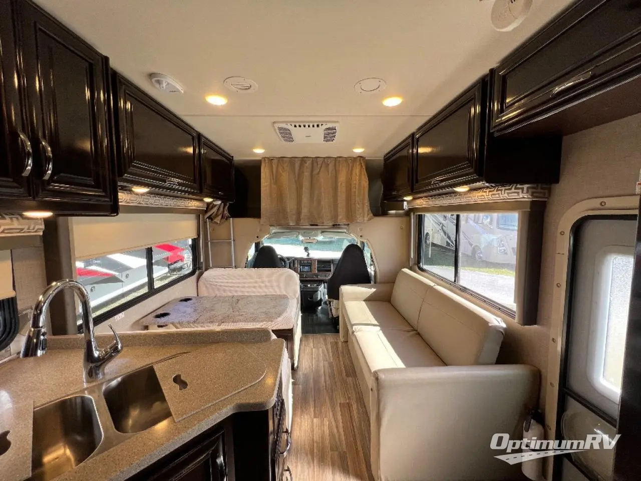 Step inside model RS26 and notice you will have everything you need at your fingertips as you travel about. There is a jack-knife sofa to the right of the main entry door. Opposite is more seating space with a Dream Dinette. If you have added guests both can quickly be made into beds for one individual.