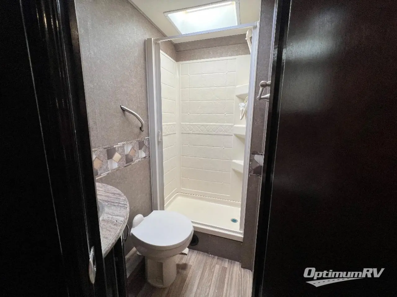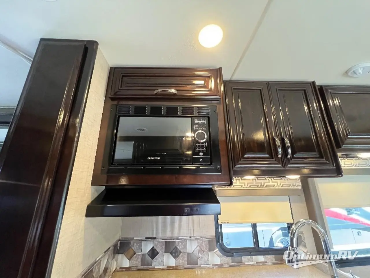 The cab-over bunk will be a favorite of the kids to sleep up top with 54" x 96" of sleeping space. There is also a 40" LED TV on a swivel base for perfect viewing from anywhere in the coach. The built-in skylight allows extra natural light inside.
