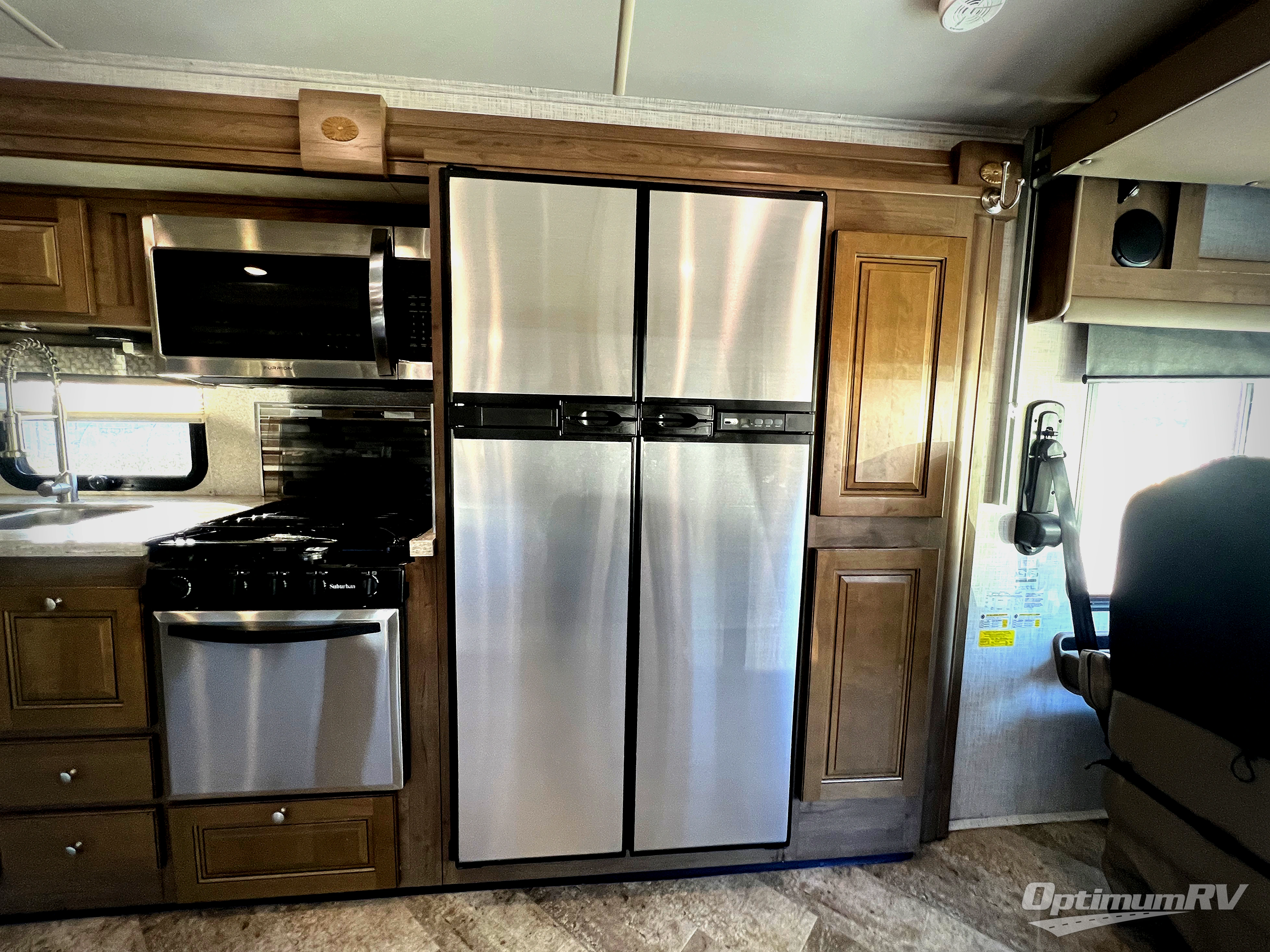 For comfort and style you will want a Forest River Georgetown 5 Series class A gas motorhome. Along the exterior there is a "Super Storage" rear cargo compartment, an outside shower, as well as a stylish fiberglass front cap with a lighted logo, LED accent lights, and an automotive bonded front windshield. As you step inside, be prepared to be wowed with all of the at-home convenient features such as the stainless steel three-burner cooktop with oven, the two LED TVs, and the King Jack™ digital TV antenna with a mount and built-in signal meter. In the cockpit there is a custom dash with ABS side consoles, drink holders, and a 110V outlet/USB. You will also enjoy the convenience of the MyRV touchscreen with wireless technology.