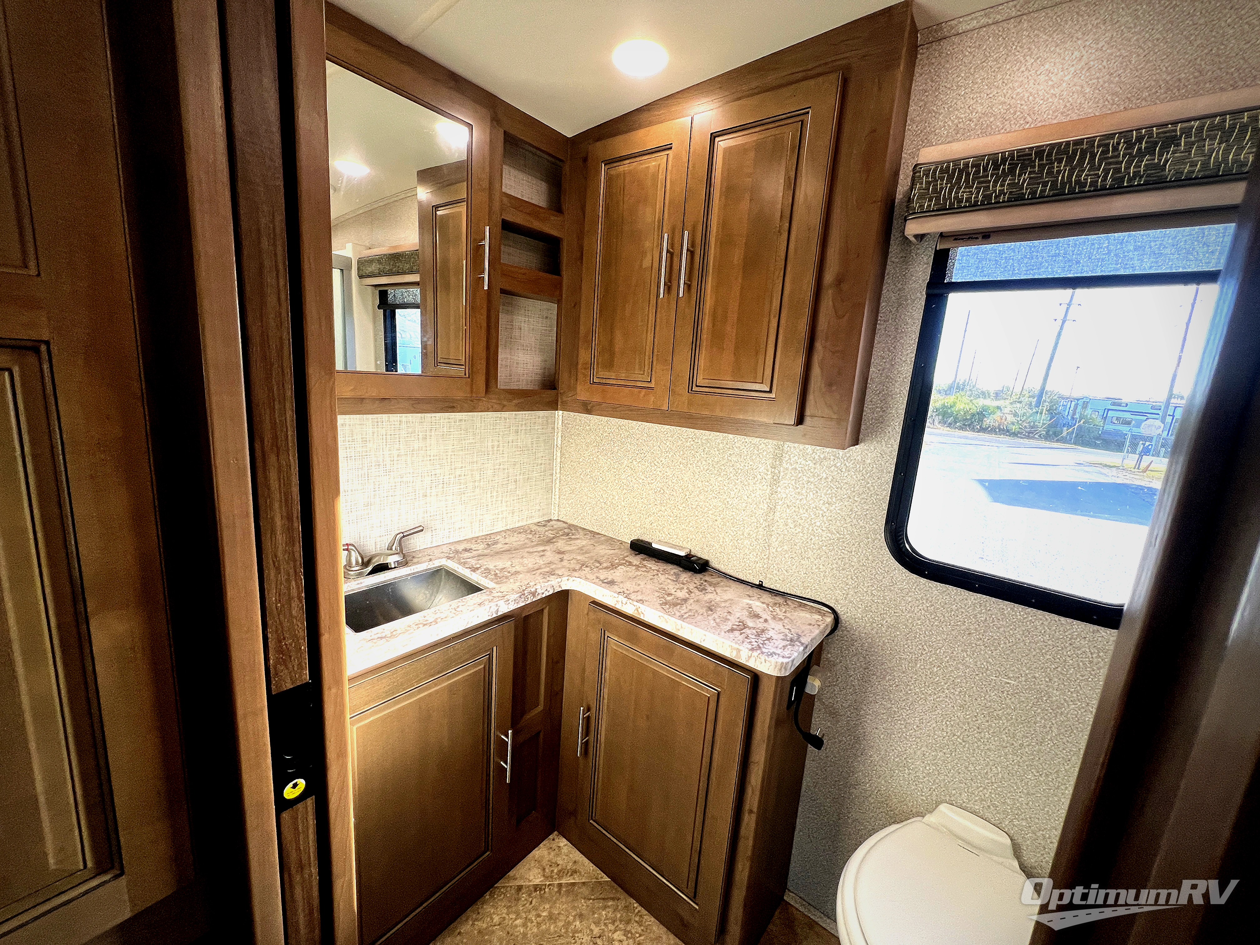 It's time for you to enjoy your road trips in true comfort! Check out this Forest River Georgetown 5 Series 34H5 class A motorhome. You won't be disappointed with all of the features it has to offer like the full and half baths, the passenger work station, the 32" LED bedroom TV, and the 40" LED main TV. Another feature you are sure to love is the rear private bedroom. Here you will find access to your own private bathroom, a king bed with nightstands on either side, and even a wardrobe that is prepped for the optional washer/dryer. The luxurious features don't stop there! There is also a fireplace with theater seating directly across from it, and the seating even has cup holders so that you don't spill your drinks.