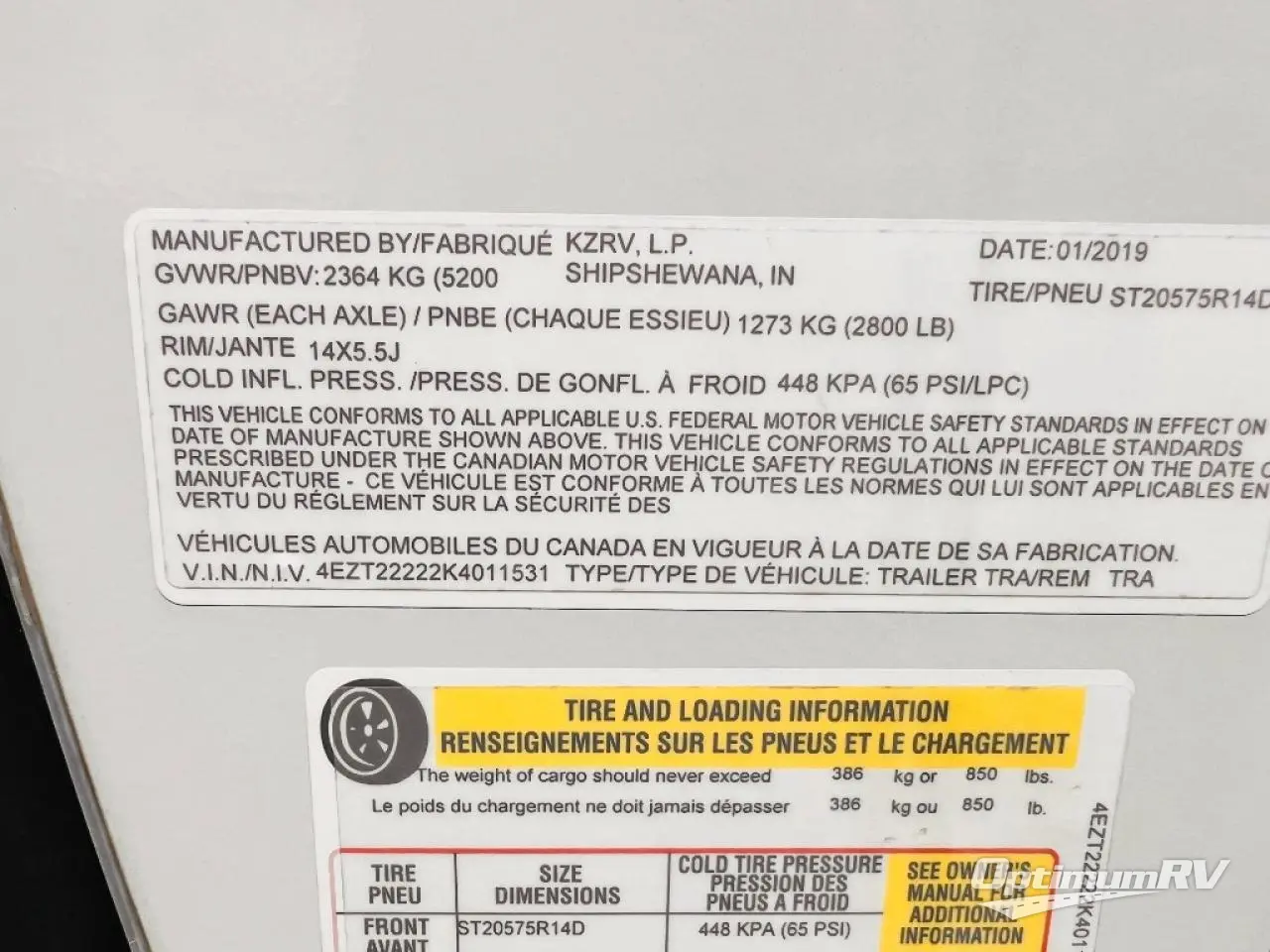 - VIN 4EZT22222K4011531