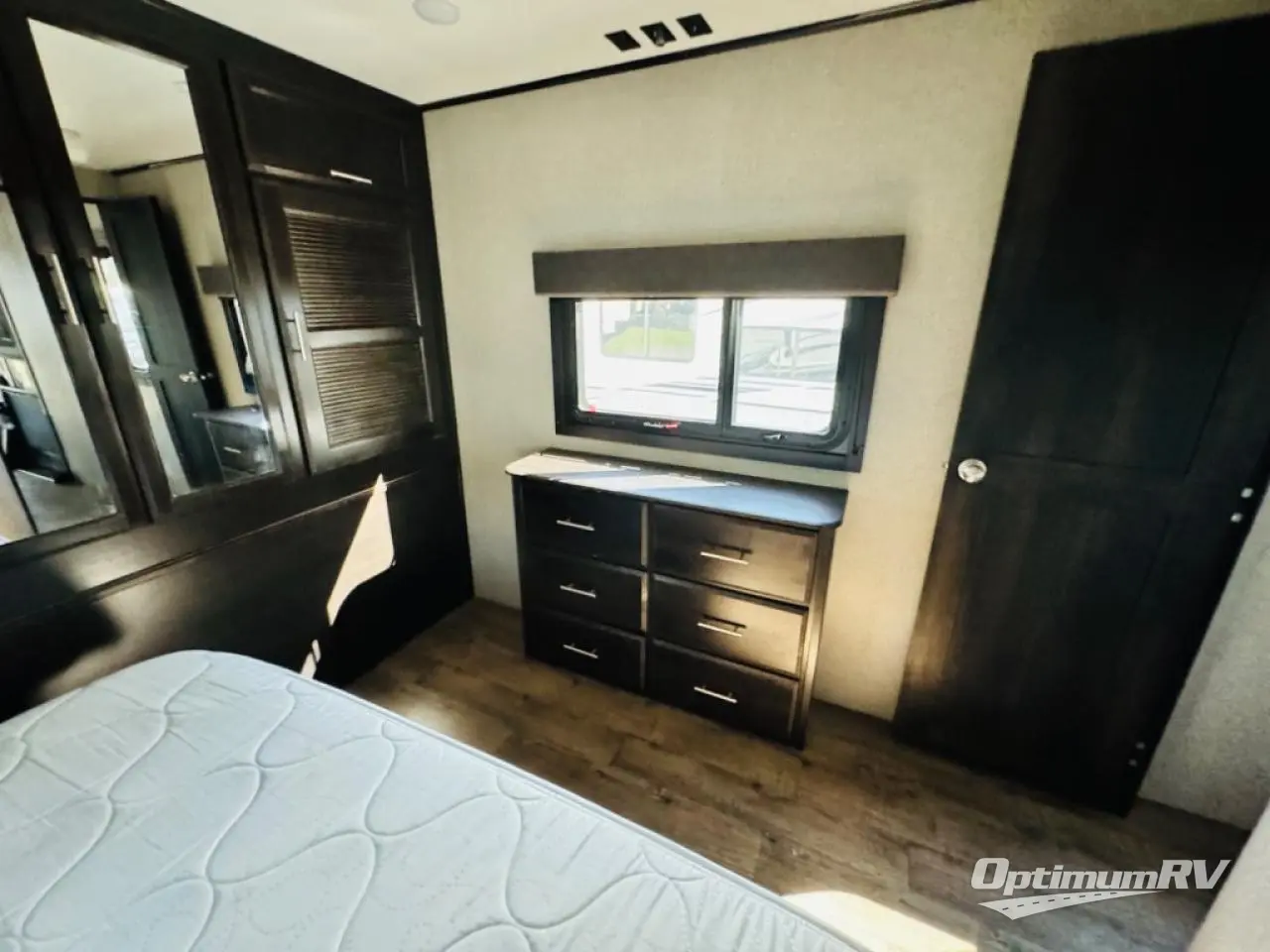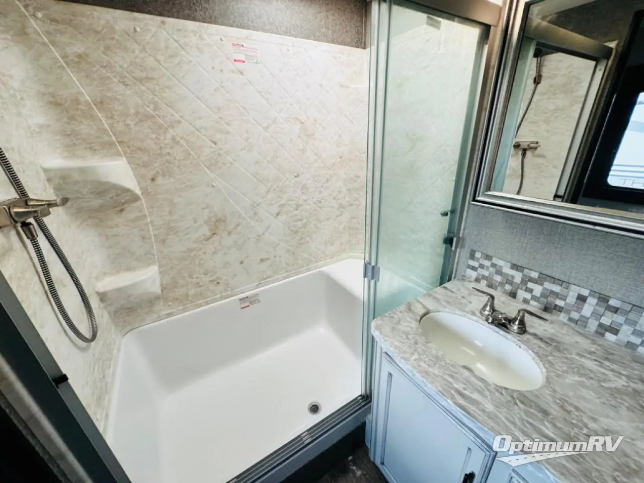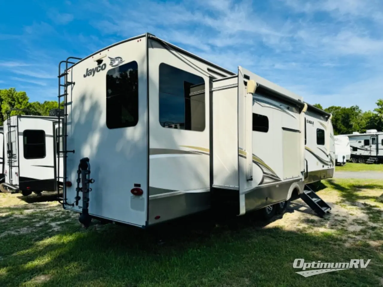 These famous Jayco Eagle fifth wheels and travel trailers come with a long and rich history of quality construction, modern styling, and innovative design! The 4-Star Handling Package comes standard on every model, and it includes reliable features, like 16" Goodyear Endurance tires, Dexter axles with Nev-R-Adjust brakes, E-Z Lube hubs, and MORryde CRE-3000 rubberized suspension. The MORryde StepAbove entrance steps with blue LED lights will provide a solid entry system so that you don't worry about falling over as you bring your luggage inside, and you will also rest assured knowing that the entire unit has been crafted with a StrongholdVBL aluminum-framed, vacuum-bonded gel-coated fiberglass, a Magnum Truss roof system, and a Climate Shield zero-degree tested weather protection.
