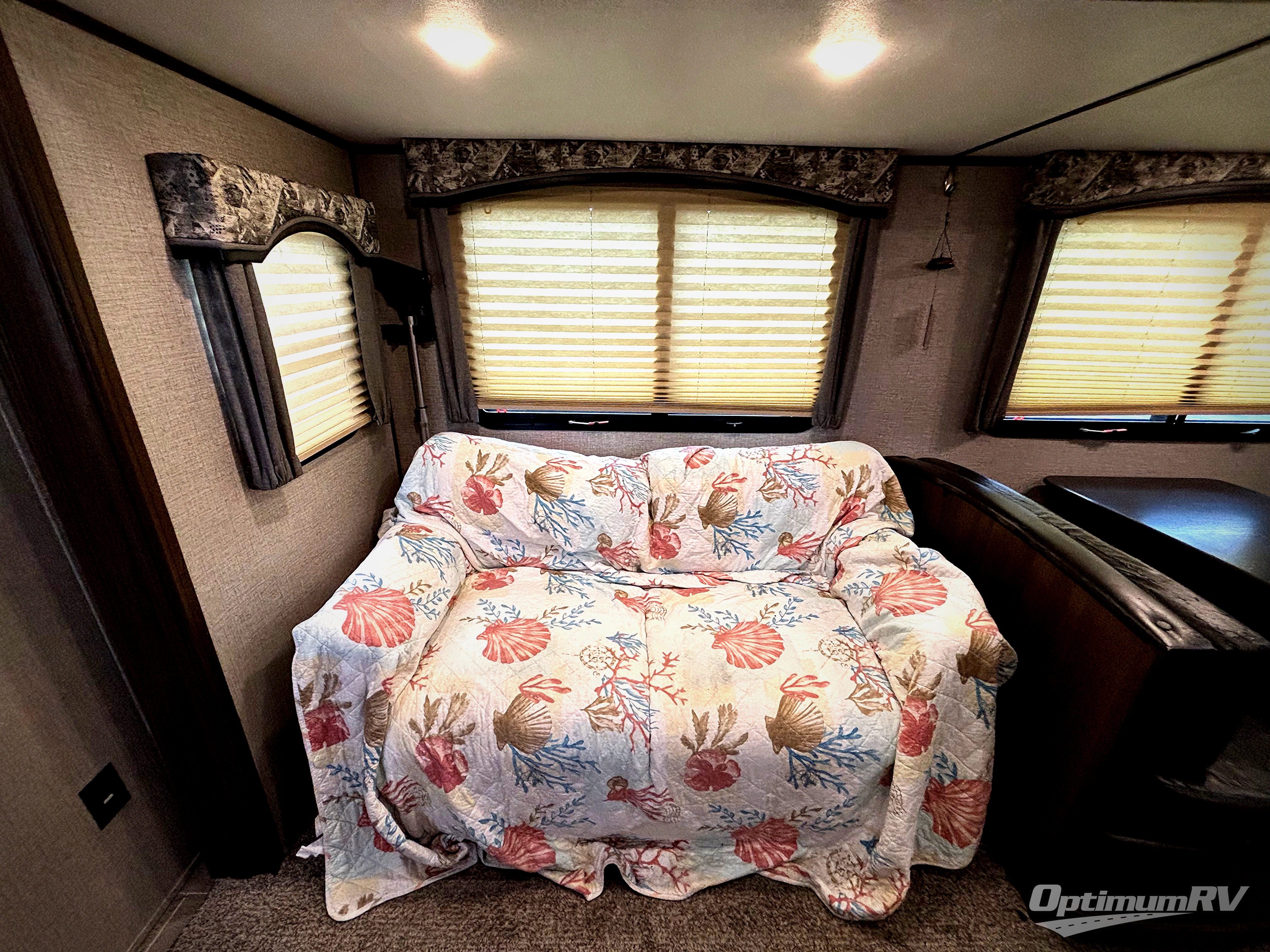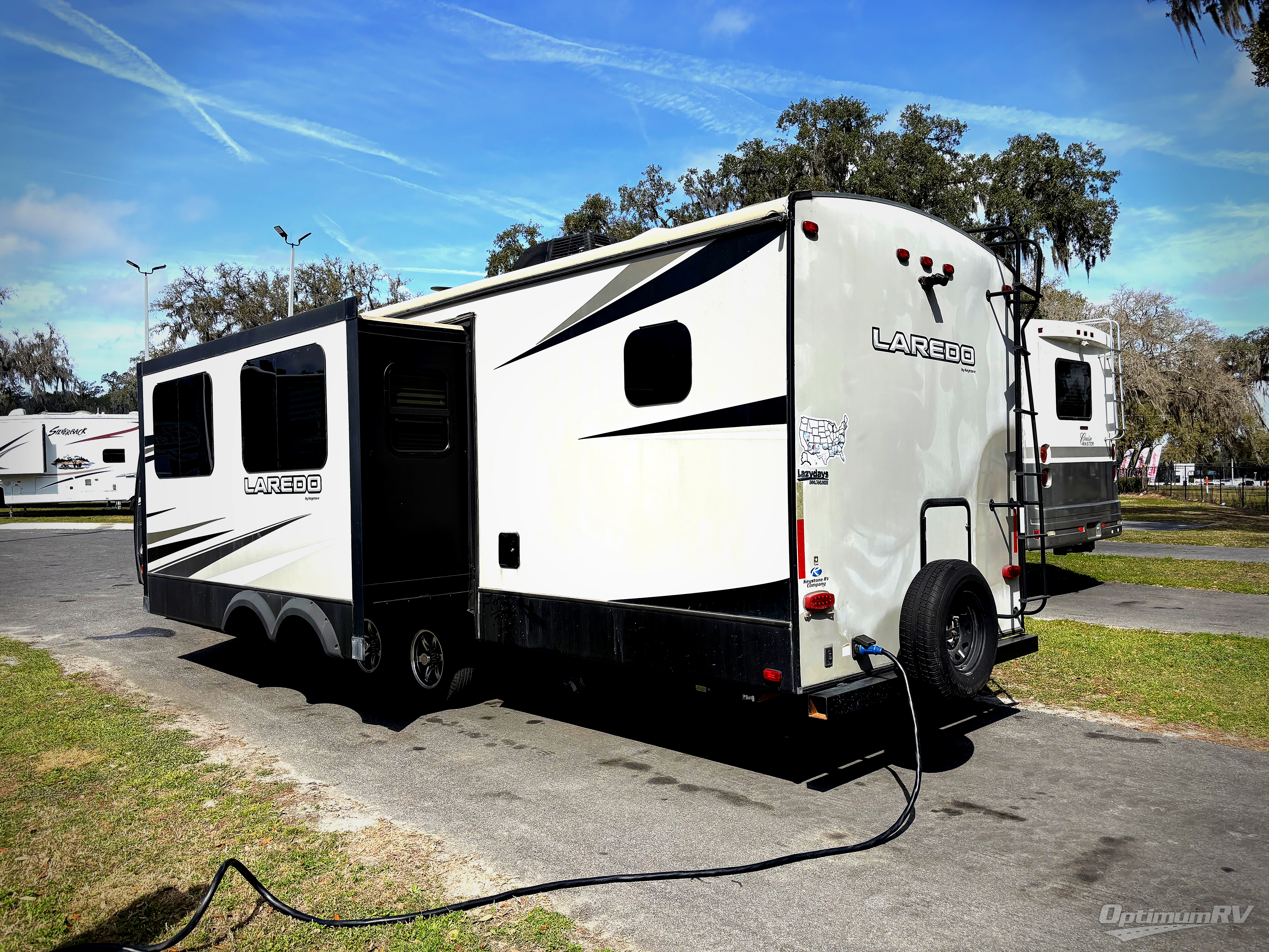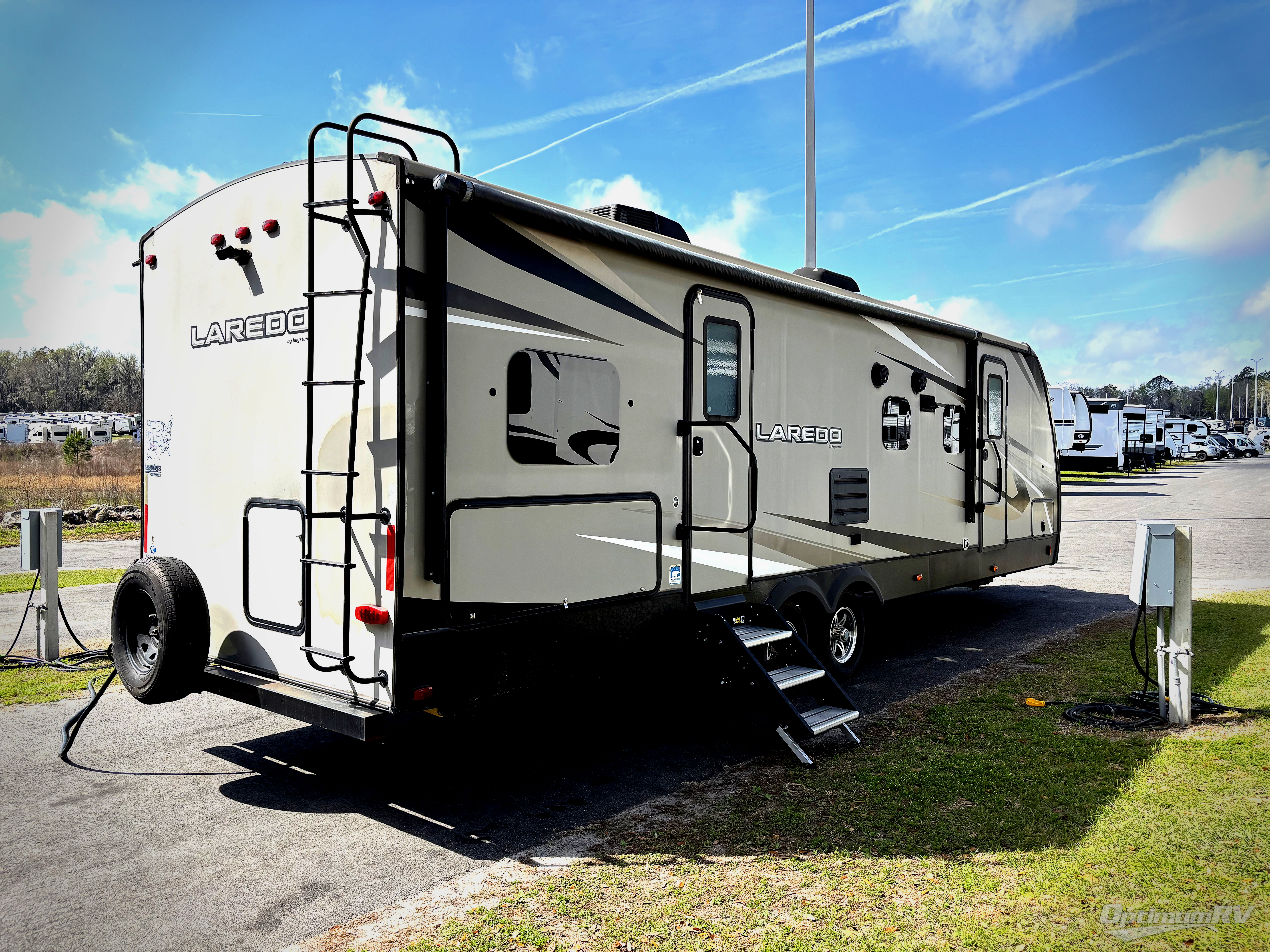 This Laredo travel trailer will be your favorite traveling companion! The large slide in the main living area gives you extra space so that you can freely work at the Furrion range with oven or sit down with friends at the booth dinette. This unit comes with an AM/FM/CD/DVD home theater system with Bluetooth so that you can listen to whatever music suits your mood, and the KeyTV multi-source controller system will make it easy to access your satellite subscription. Plus, the king-size bed in the front private bedroom will be such a valued escape at the end of a long day.