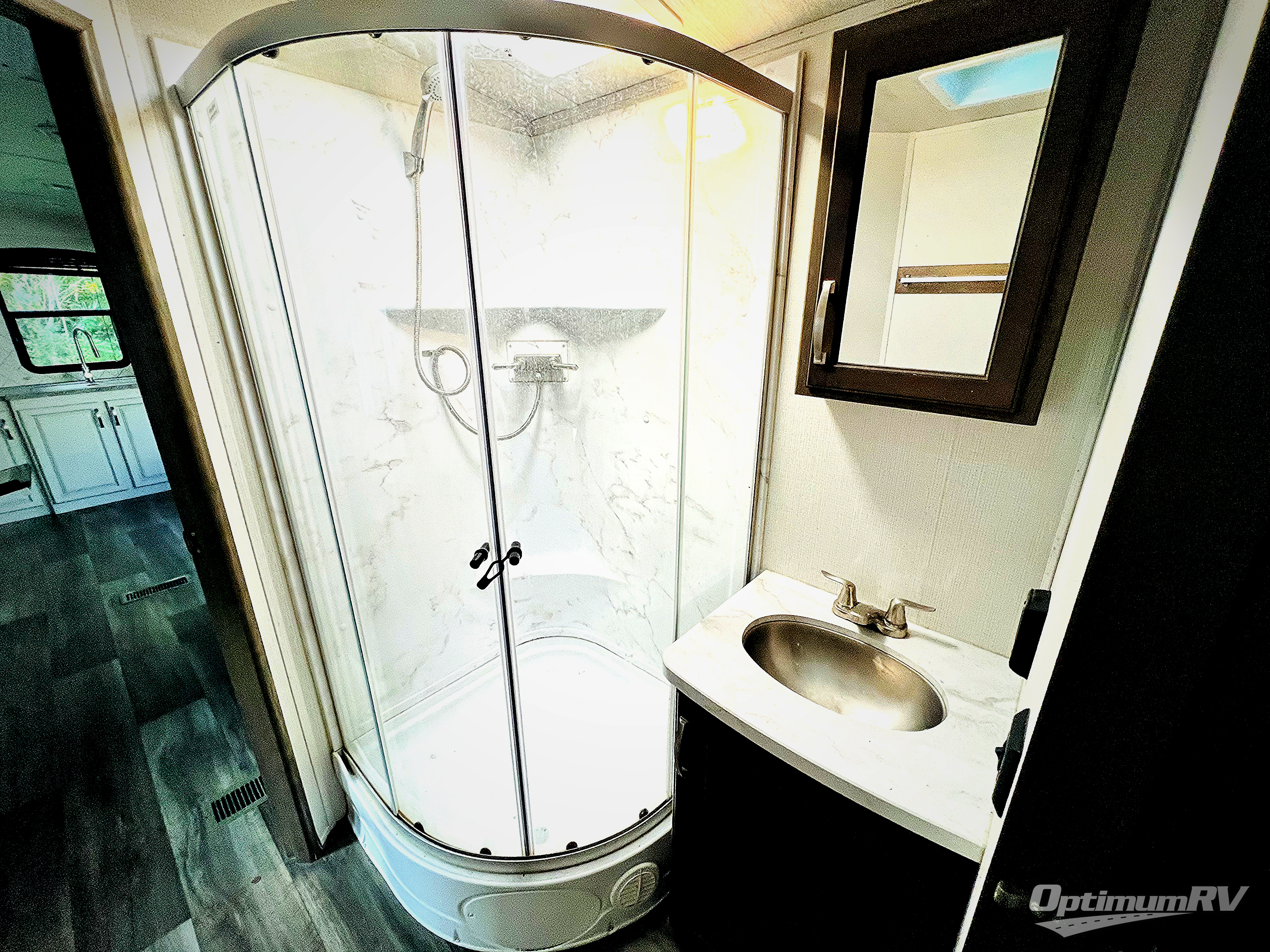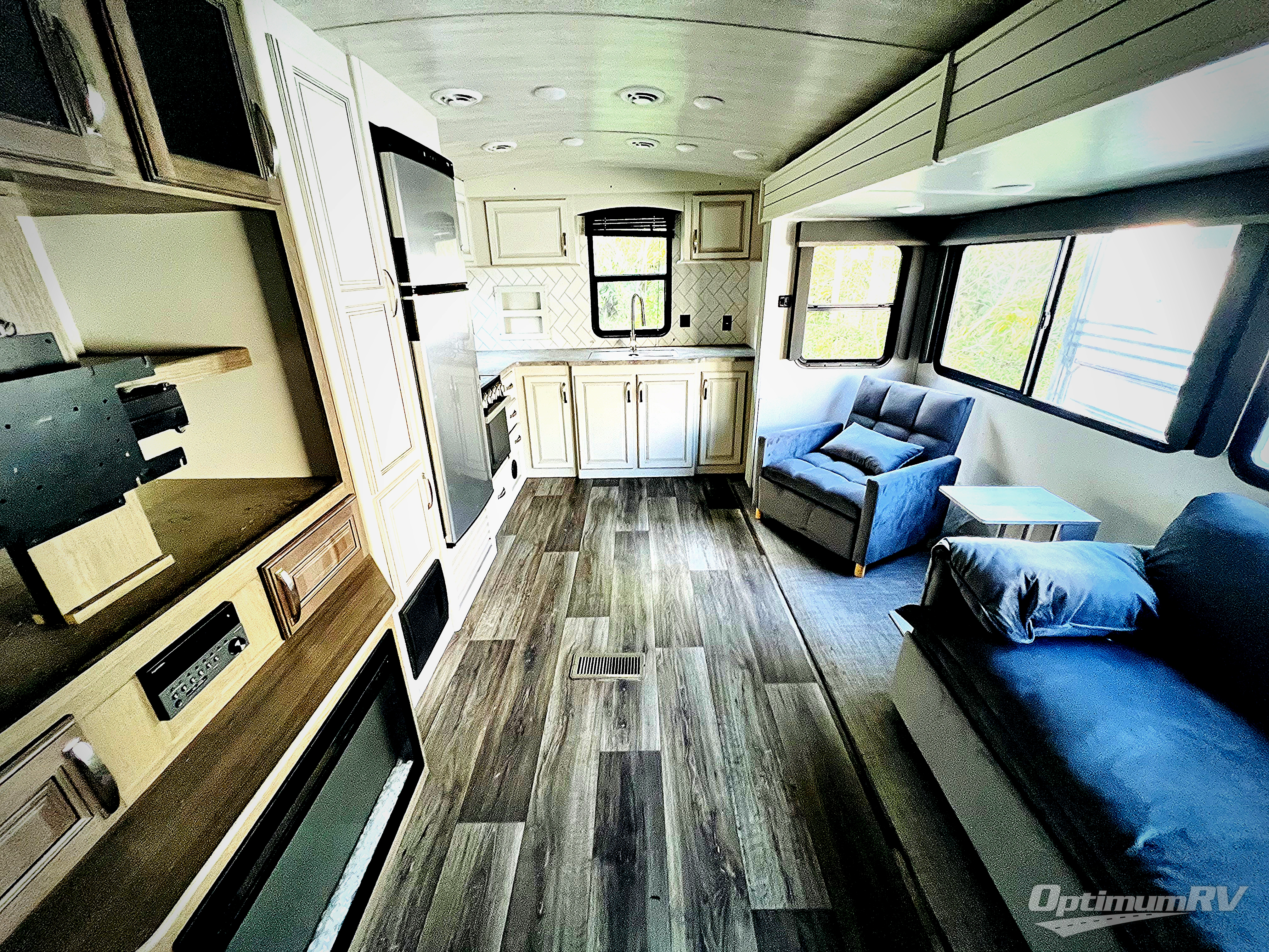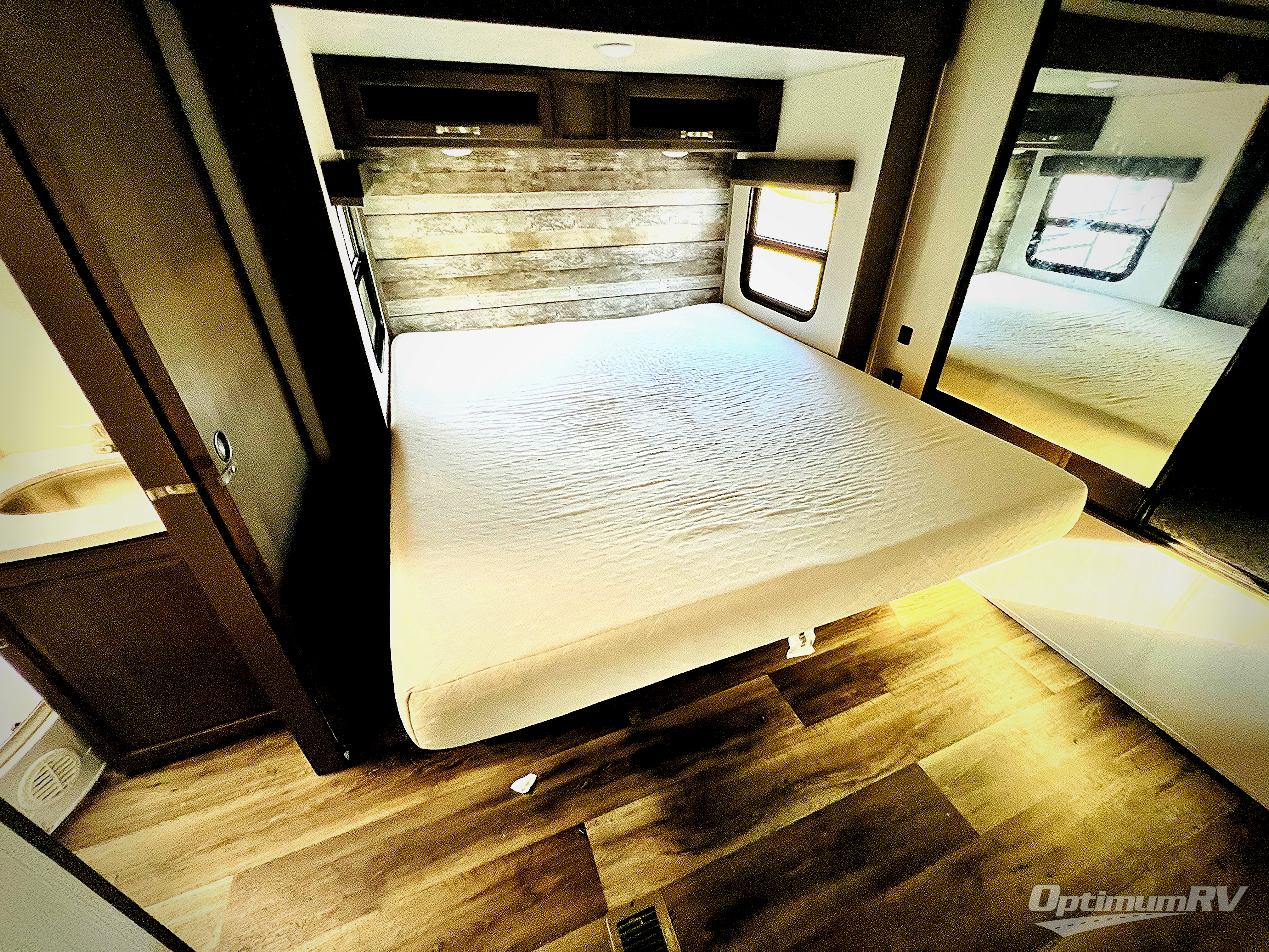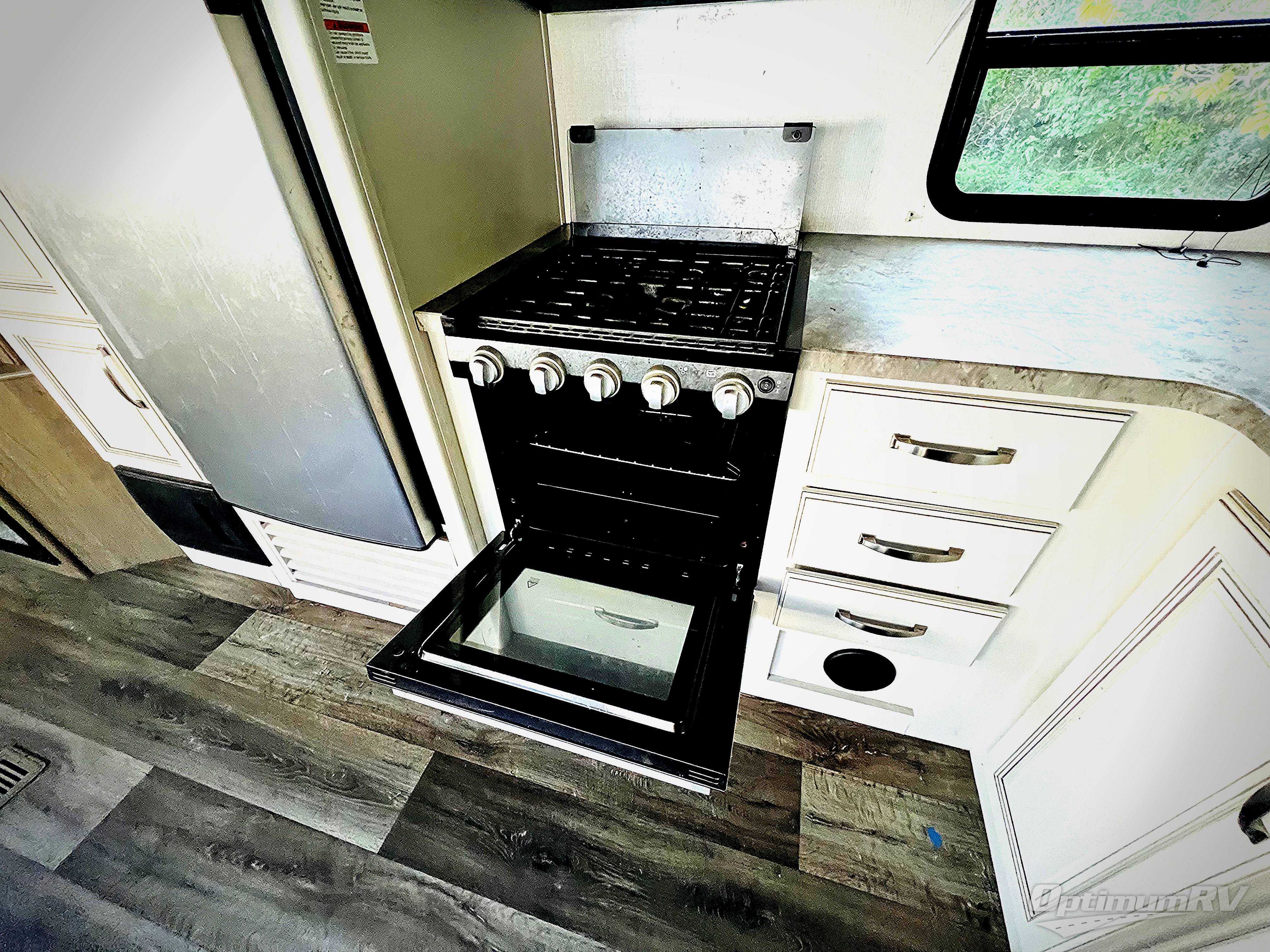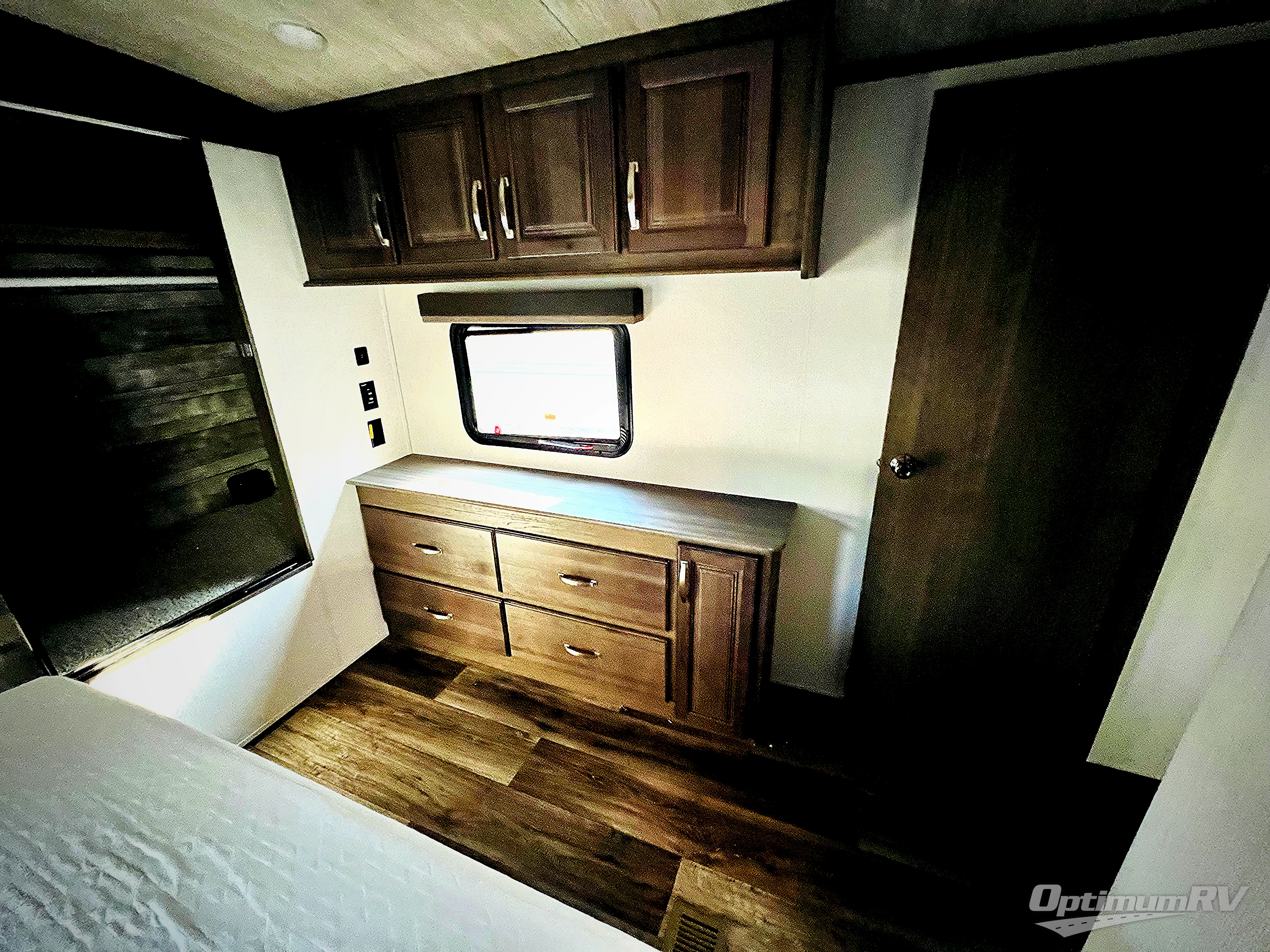 Imagine being able to stay inside on those chilly evenings to relax in a heated theater seat with massage setting while watching the big game on the 39" LED TV and staying cozy from the fireplace. You can invite other RVers over to relax on the tri-fold sofa or play a card game at the booth dinette or the free standing table and chairs if you chose that option. And the cook will love the large pantry, and all the kitchen appliances to make snacks and meals for everyone. Your family pet will surely enjoy having their own space to eat out of the pull-out pet dishes under the stainless steel refrigerator. The full bathroom is near the front master bedroom where you can enjoy your privacy at night on a queen bed. And you will not have to leave anything at home with all the storage found in the closets, and the slide out with a linen cabinet, a wardrobe and a dresser.