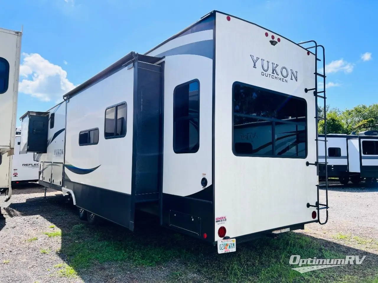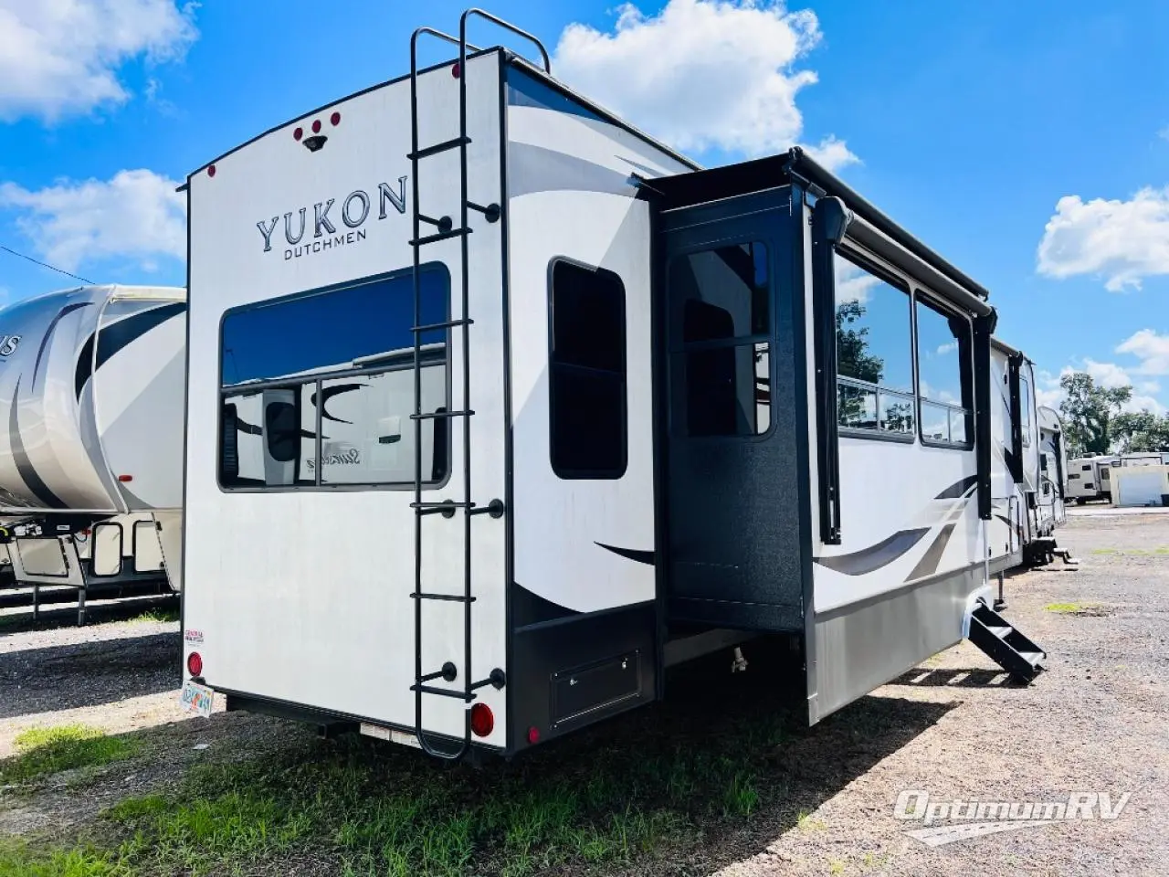 Discover residential camping at its finest with the Dutchmen Yukon fifth wheels! The entire Yukon is spectacular and accommodating and will make every journey feel like home. The upgraded RotaFlex pin box will make towing on tougher roads smooth as ever, and you'll enjoy hassle-free set up with the 6-point auto-leveling. Each Yukon features the All Weather Package that includes additional insulation with 12V tank pads, and the 100" wide body construction will provide your family will more space to walk around, relax, and store your belongings. Inside, you will enjoy the panoramic windows for beautiful outdoor views, the electric powered theater seating for your comfort, and the custom wardrobe with a large closet and drawers for all your items. The industry-leading 7' slide out ceiling height will give you plenty of headroom to stretch out in luxury, and the chef of your family will appreciate the largest counterspace in the industry. Your home away from home is a Yukon fifth wheel by Dutchmen. Choose your favorite layout today!