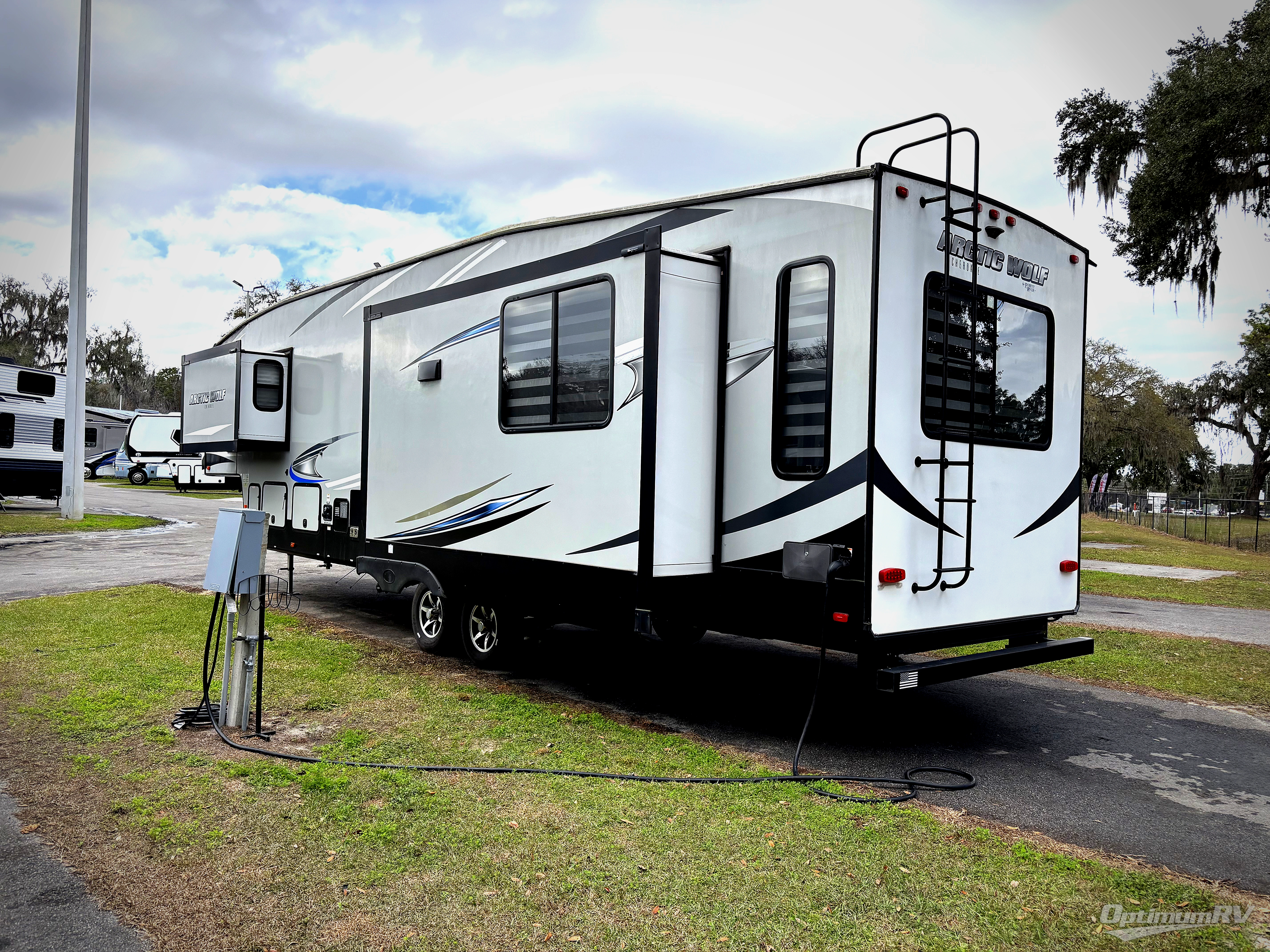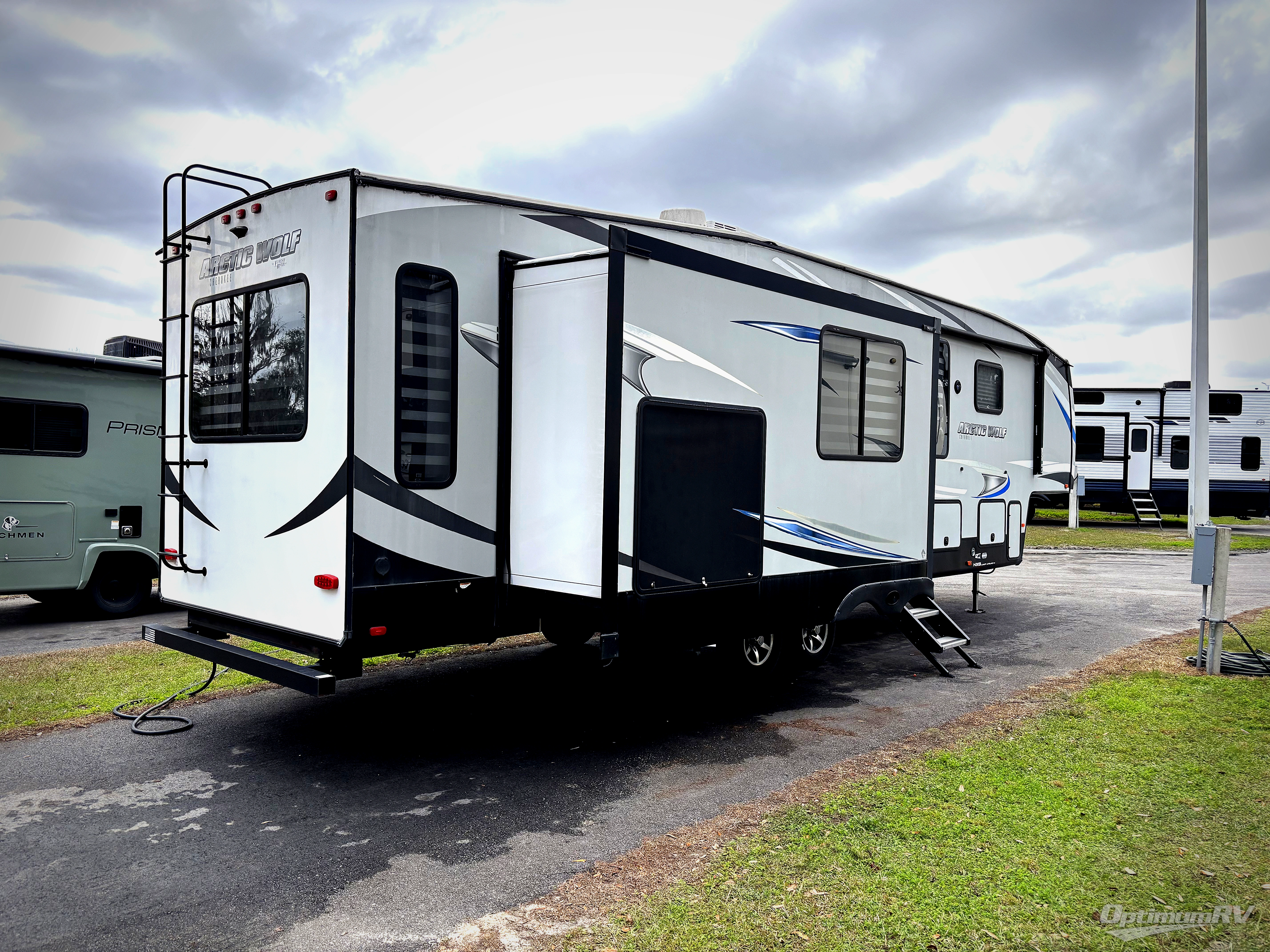 Find out what you've been missing with any one of these Forest River Cherokee Arctic Wolf Suite fifth wheels! Each model is constructed with 5/8" tongue and groove plywood floor decking, 1x engineered wood "SuperTruss" roof structure, and a "ToughBend" rigid skirt metal design for a durable fifth wheel made to last. The large exterior folding entry assist grab handle at all entries makes entering easier than ever, and the motion sensor lights in the pass-through storage will allow you to unpack quickly. These fifth wheels include a dual zone Bluetooth stereo optimized for USB flash, drives, iPODs, and other MP3 players so you can listen to your favorite tunes, and there is outside TV prep in the pass-through if you enjoy watching movies outdoors.
