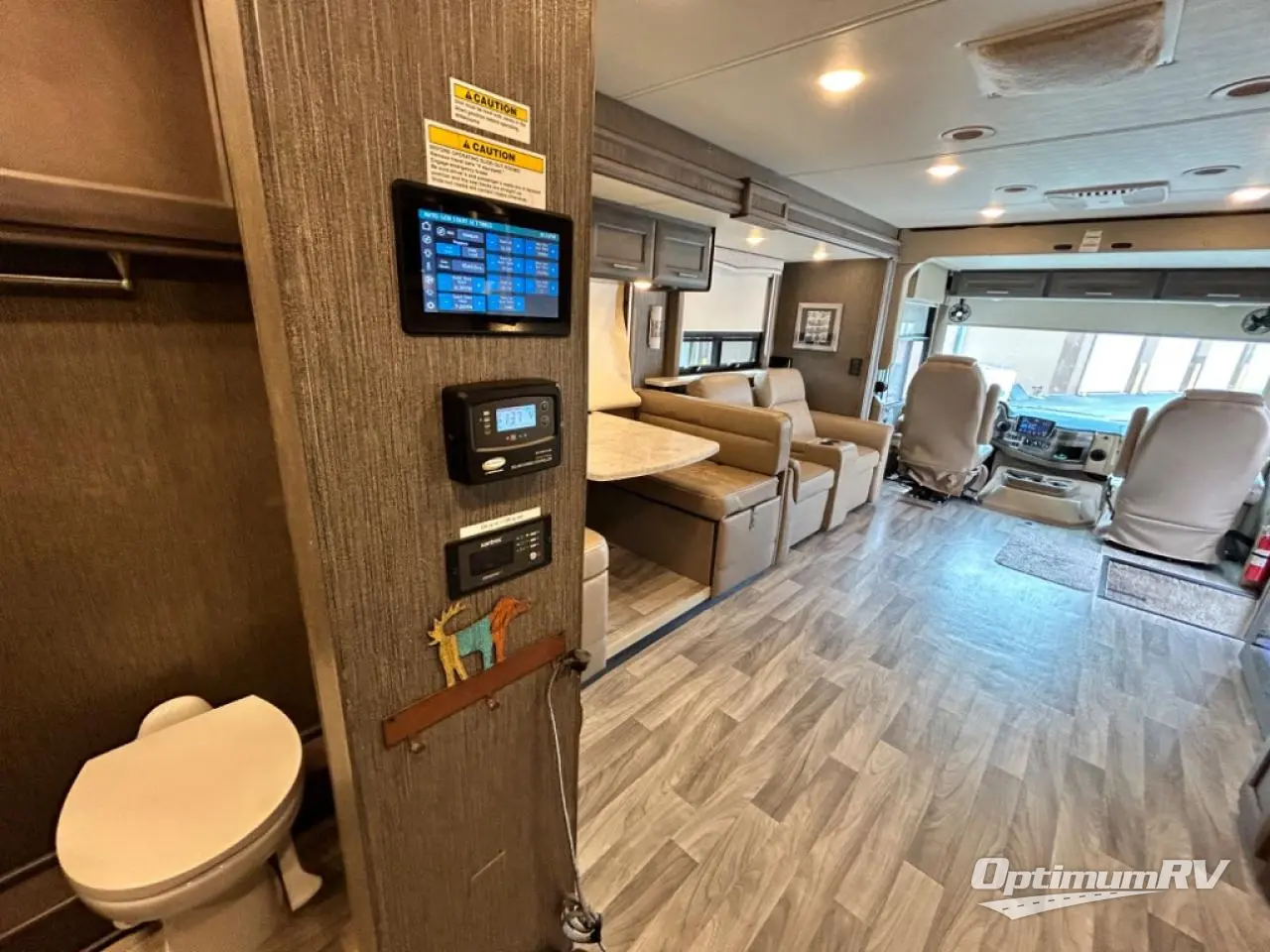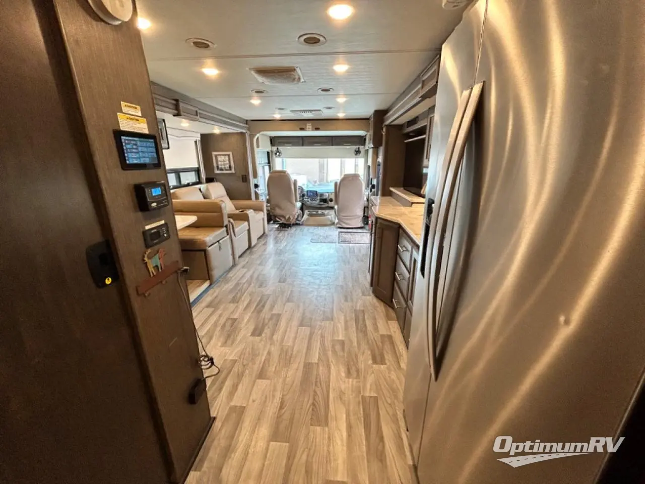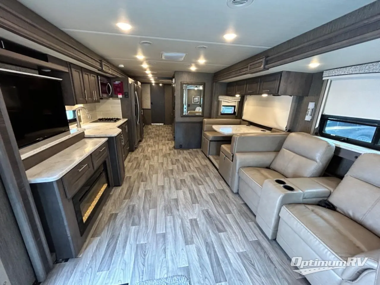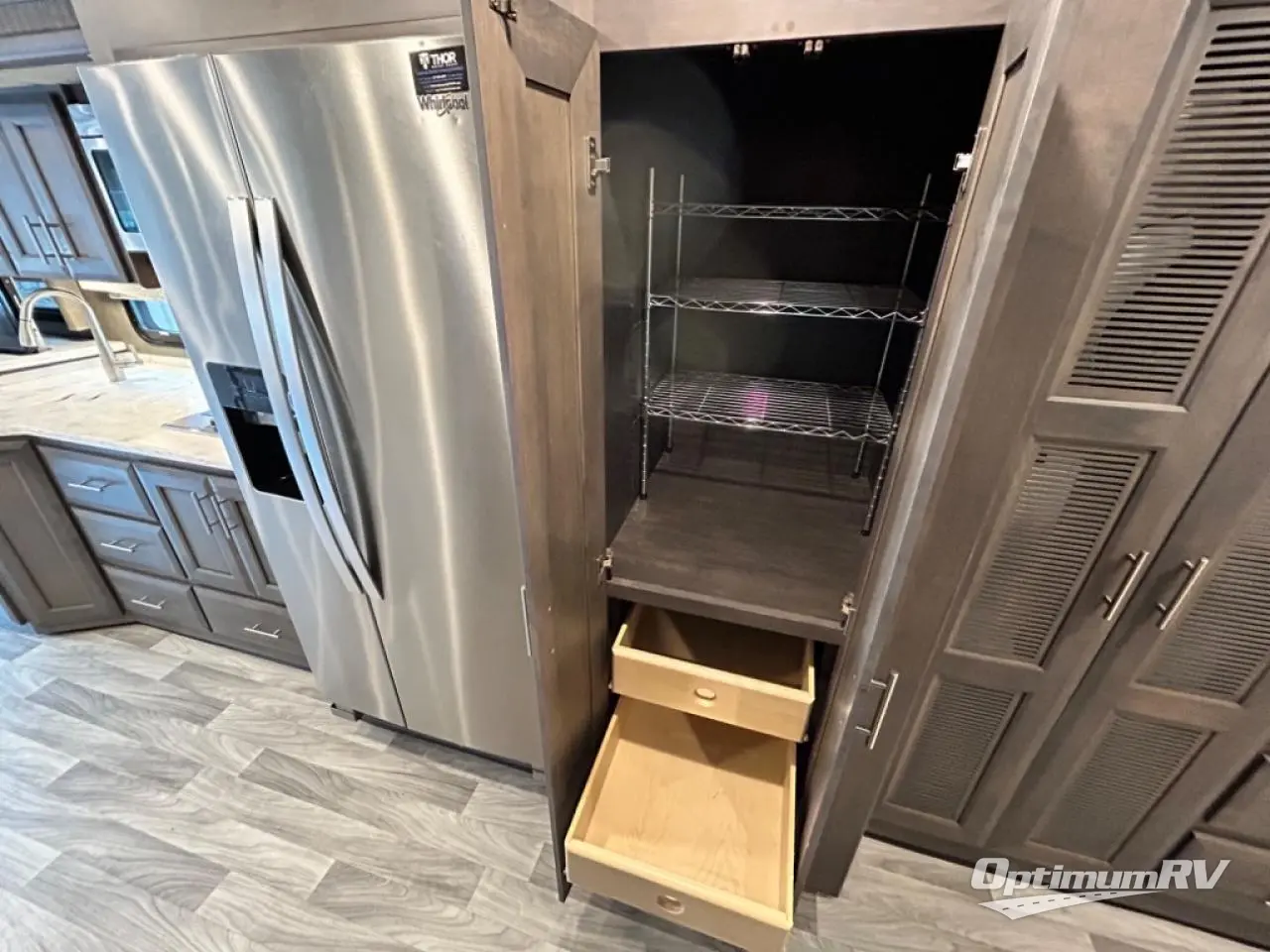 Search for that perfect mountaintop view or lakeside retreat with your powerful and luxurious Thor Motor Coach Challenger Class A gas motorhome! The Challenger is pet friendly with its Pet-Link multi-purpose tie-down, and it is also equipped with a 100W solar charging system that can be used to distance yourself from crowds and surround yourself with nature. You're going to absolutely love the exterior entertainment center because you can use it to play a movie while you sit back in your camp chairs and take in the night sky. Having Wi-Fi while on the road gives you the ultimate freedom, and the Winegard ConnecT Wi-Fi extender + 4G makes that possible. Some other top-notch amenities are the tankless water heater, whole-coach water filtration system, Onan RV QG 5,500 gas generator, and sound bar in the living room.