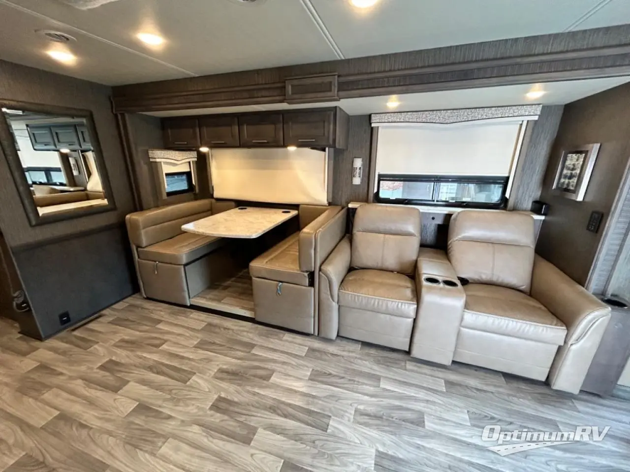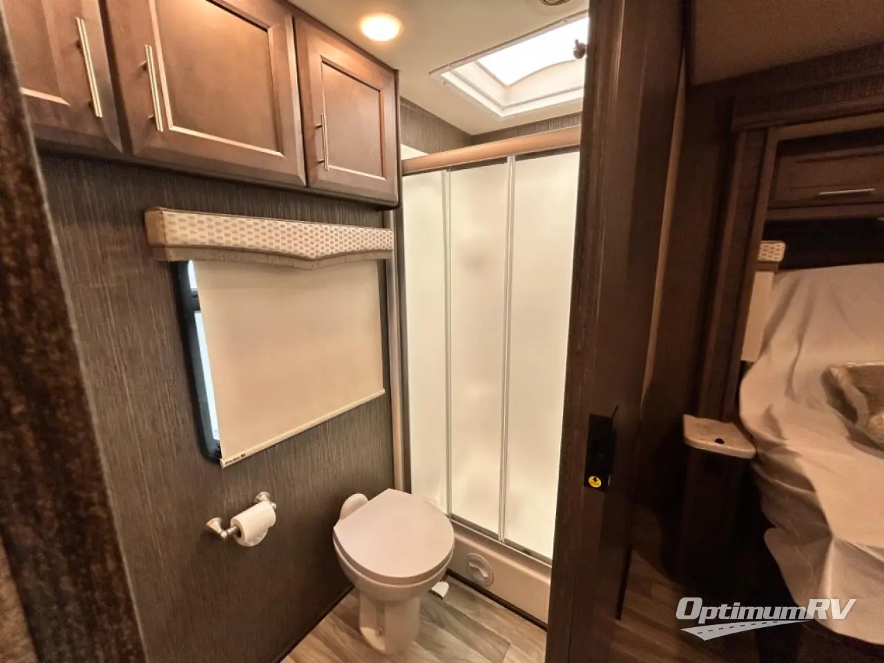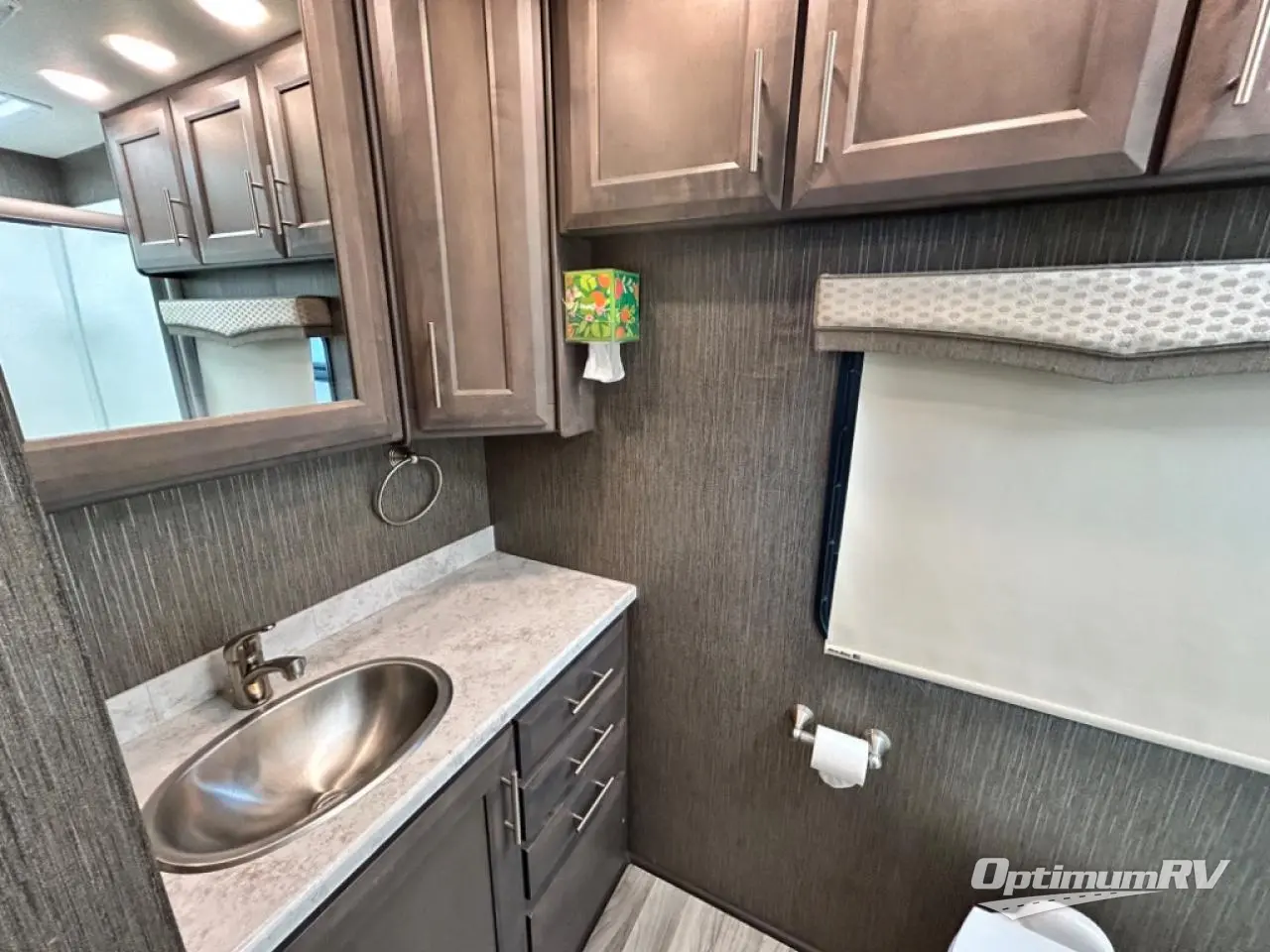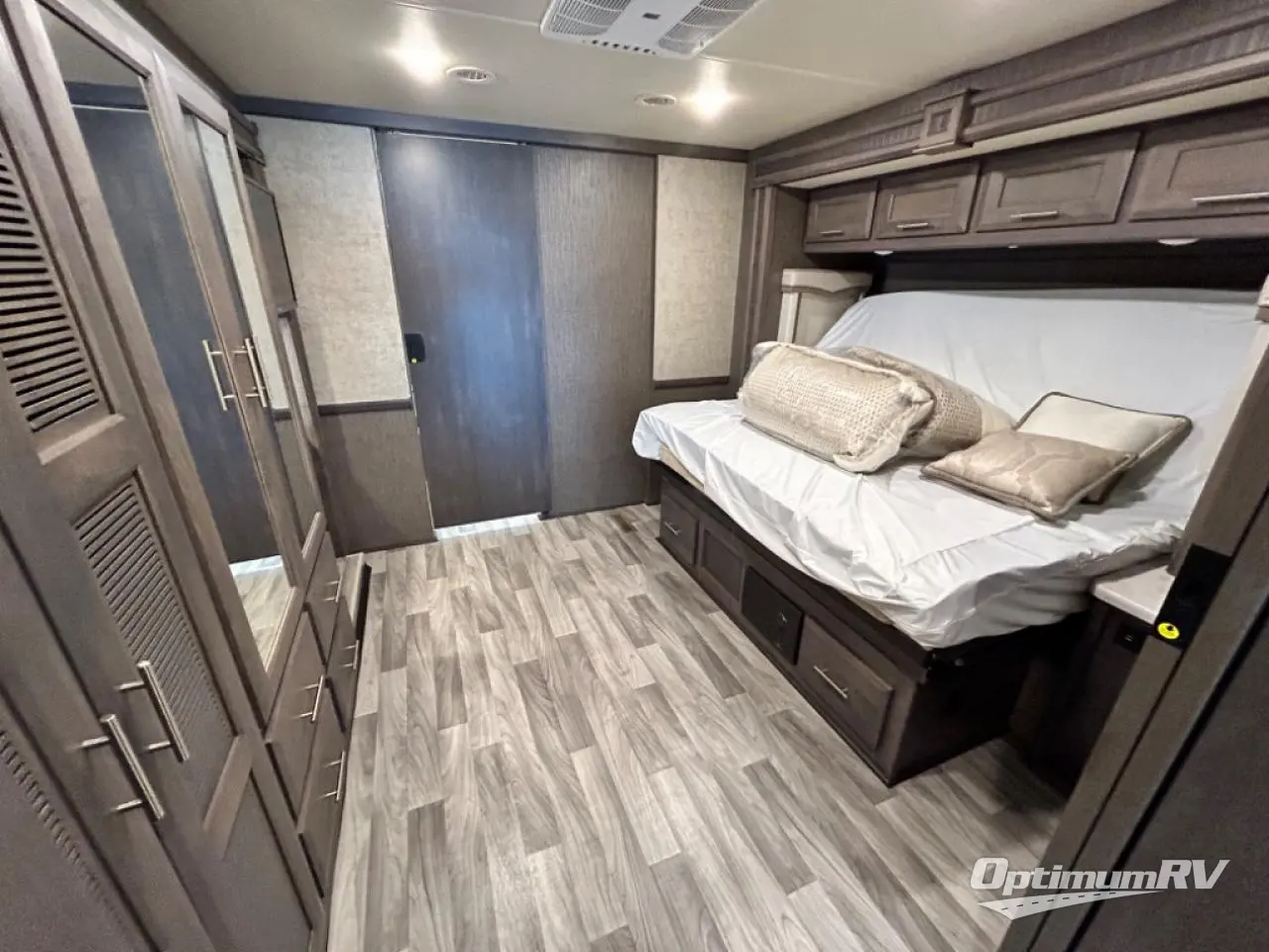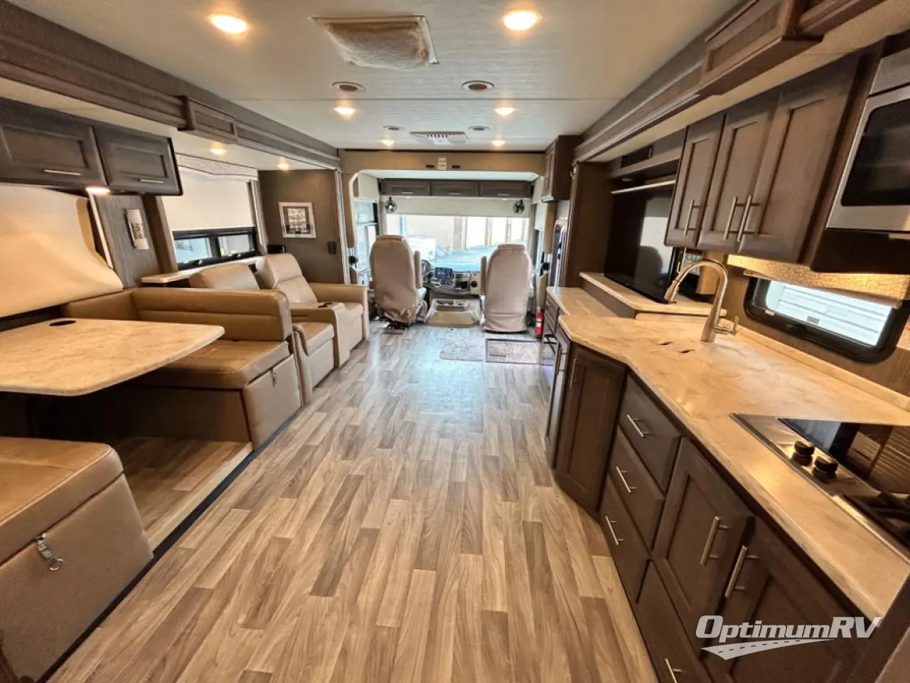 Search for that perfect mountaintop view or lakeside retreat with your powerful and luxurious Thor Motor Coach Challenger Class A gas motorhome! The Challenger is pet friendly with its Pet-Link multi-purpose tie-down, and it is also equipped with a 100W solar charging system that can be used to distance yourself from crowds and surround yourself with nature. You're going to absolutely love the exterior entertainment center because you can use it to play a movie while you sit back in your camp chairs and take in the night sky. Having Wi-Fi while on the road gives you the ultimate freedom, and the Winegard ConnecT Wi-Fi extender + 4G makes that possible. Some other top-notch amenities are the tankless water heater, whole-coach water filtration system, Onan RV QG 5,500 gas generator, and sound bar in the living room.