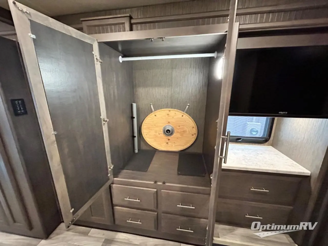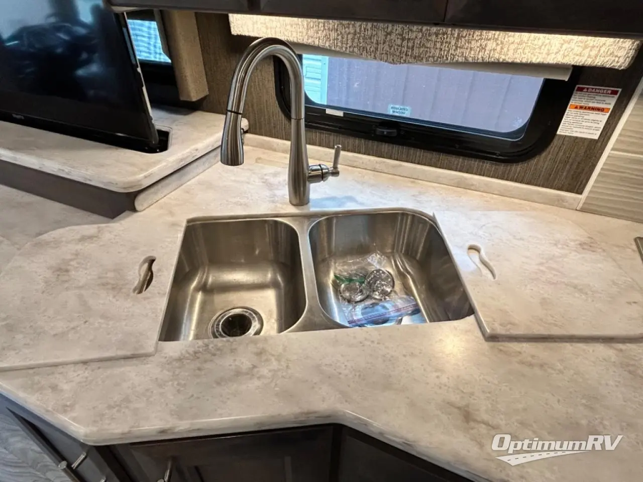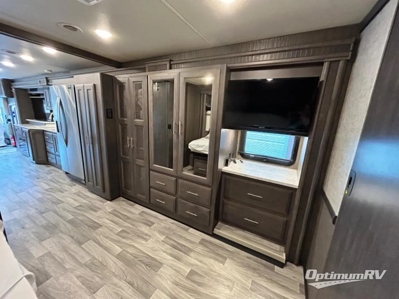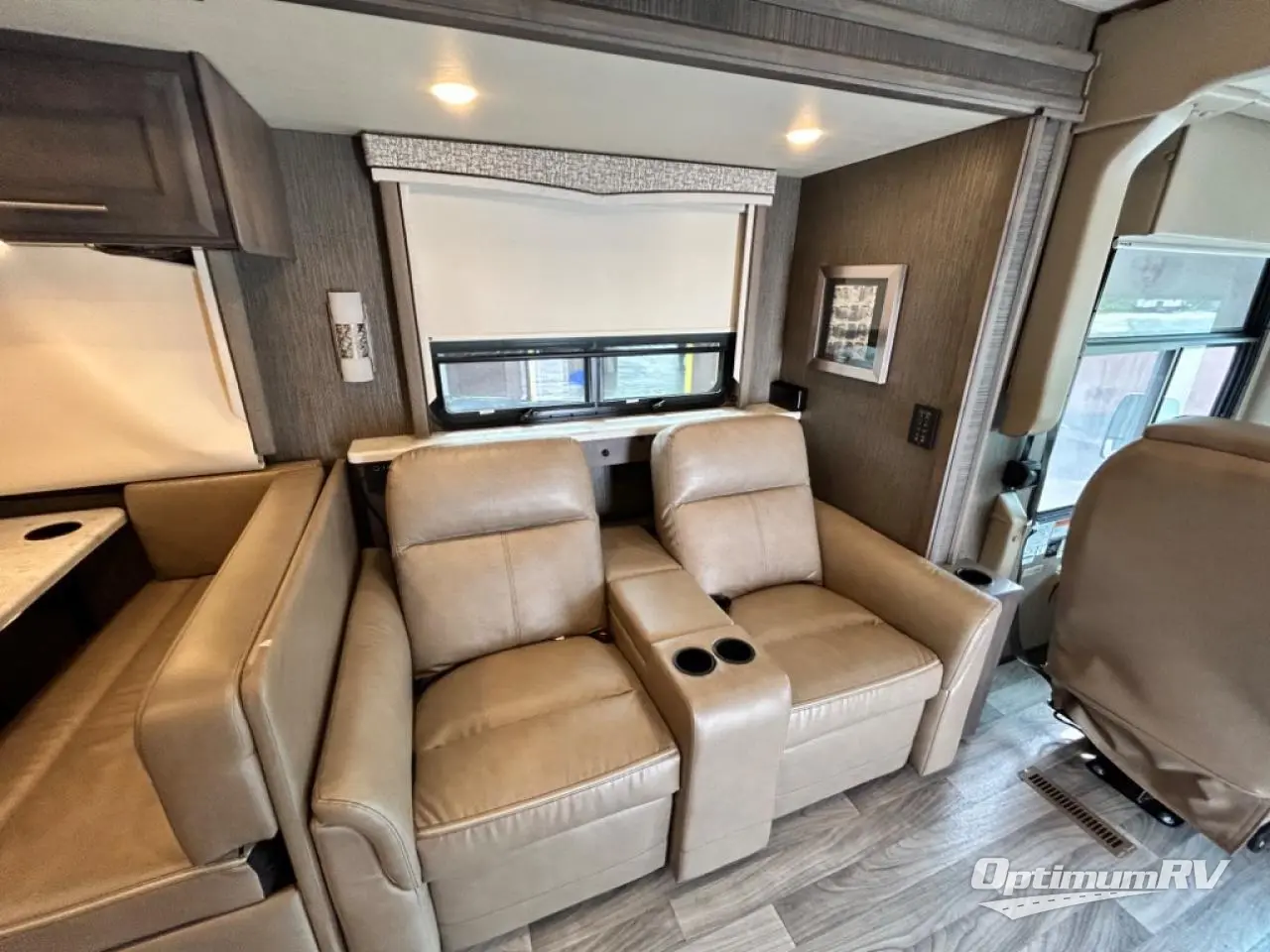 Search for that perfect mountaintop view or lakeside retreat with your powerful and luxurious Thor Motor Coach Challenger Class A gas motorhome! The Challenger is pet friendly with its Pet-Link multi-purpose tie-down, and it is also equipped with a 100W solar charging system that can be used to distance yourself from crowds and surround yourself with nature. You're going to absolutely love the exterior entertainment center because you can use it to play a movie while you sit back in your camp chairs and take in the night sky. Having Wi-Fi while on the road gives you the ultimate freedom, and the Winegard ConnecT Wi-Fi extender + 4G makes that possible. Some other top-notch amenities are the tankless water heater, whole-coach water filtration system, Onan RV QG 5,500 gas generator, and sound bar in the living room.